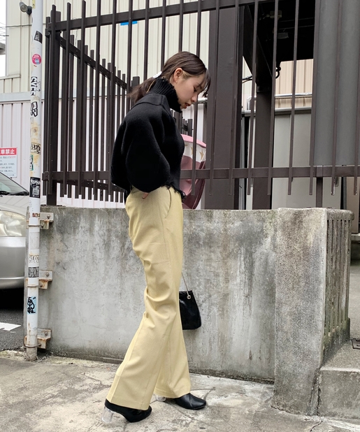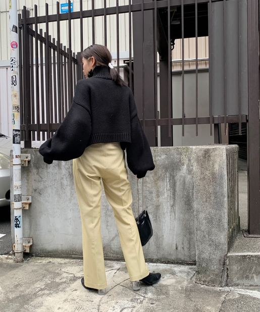 ・しっかりとした肉厚さが◎。ハイネックも倒れることなく、立体的に維持されたままでオシャレを楽しめます。