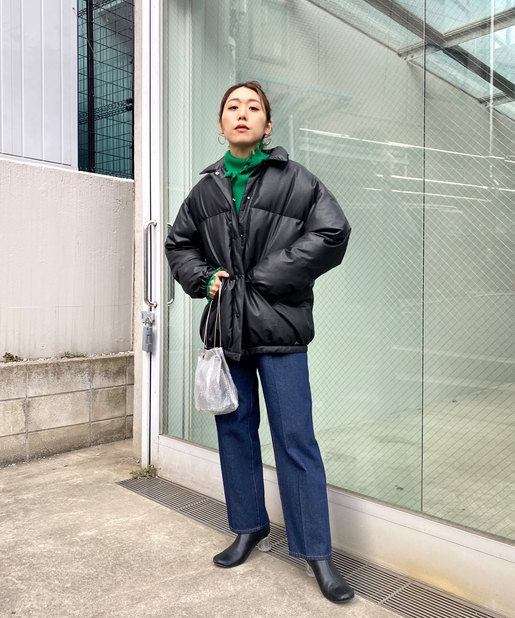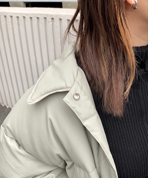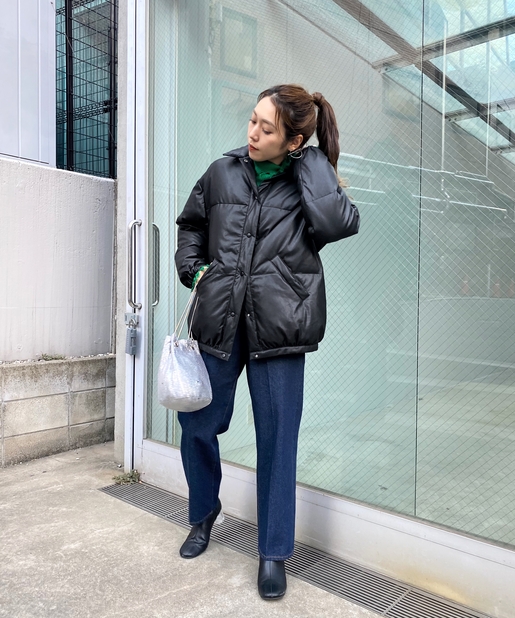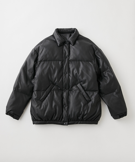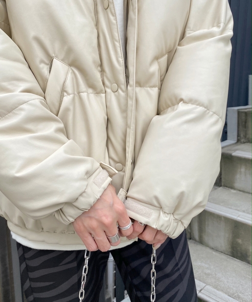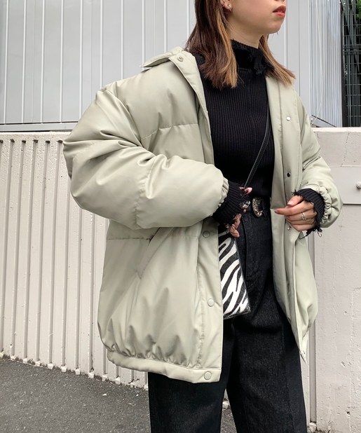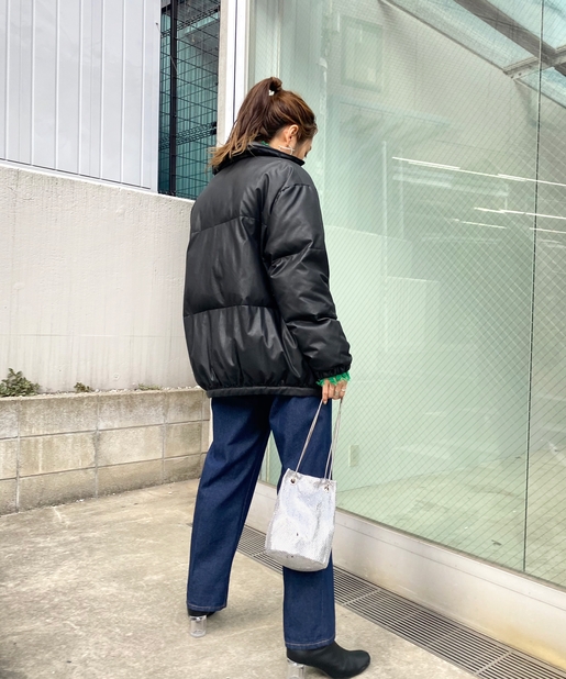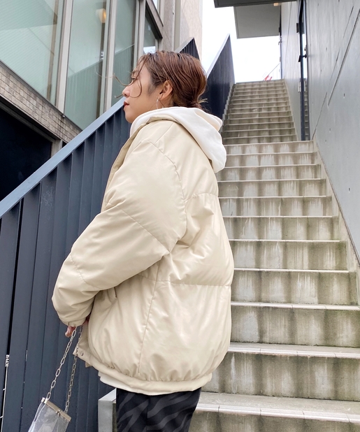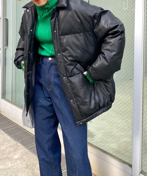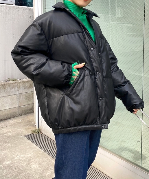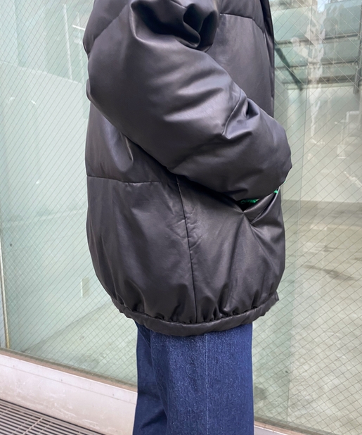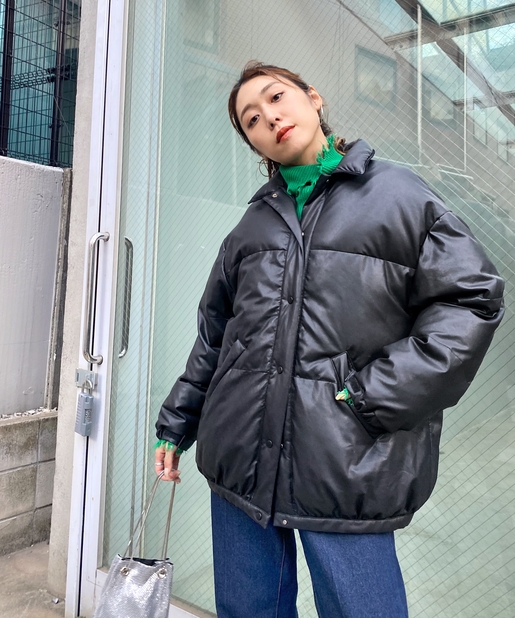 シルエットはストリート、素材感はモード!欲張りコーデが出来ちゃう、フェイクレザー×ダウン風コーチジャケット