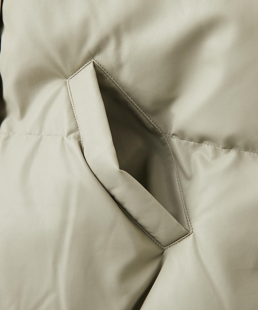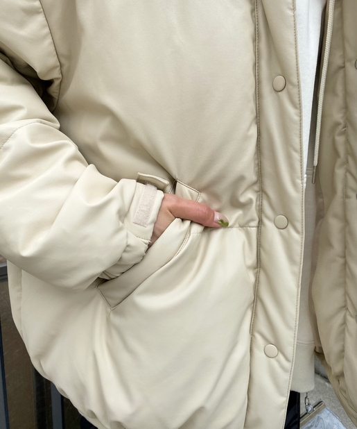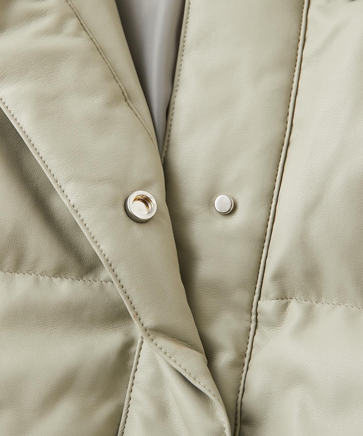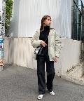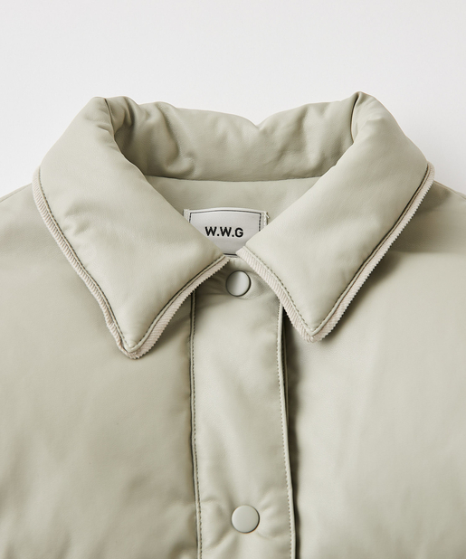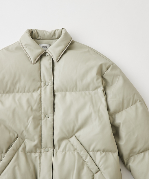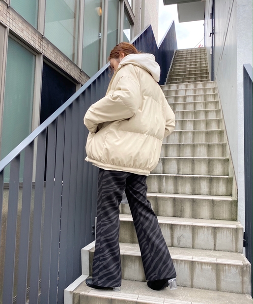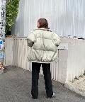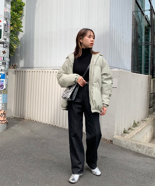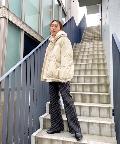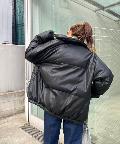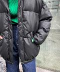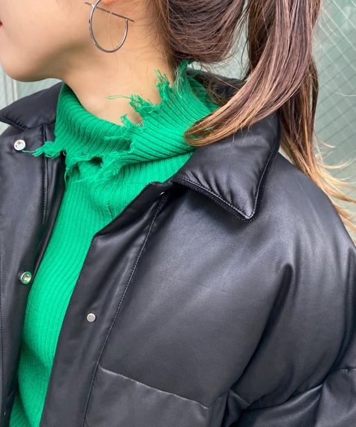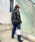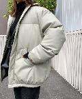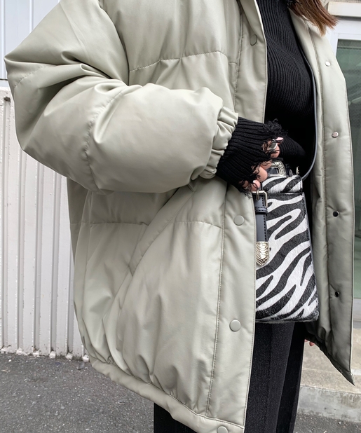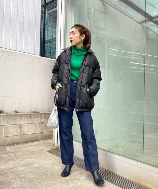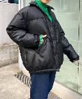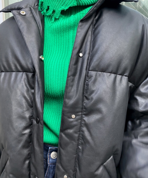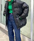 シルエットはストリート、素材感はモード!欲張りコーデが出来ちゃう、フェイクレザー×ダウン風コーチジャケット