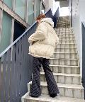 ・中綿はポリエステル100%なので、ダウンと違い、中から抜け出すことがありません。