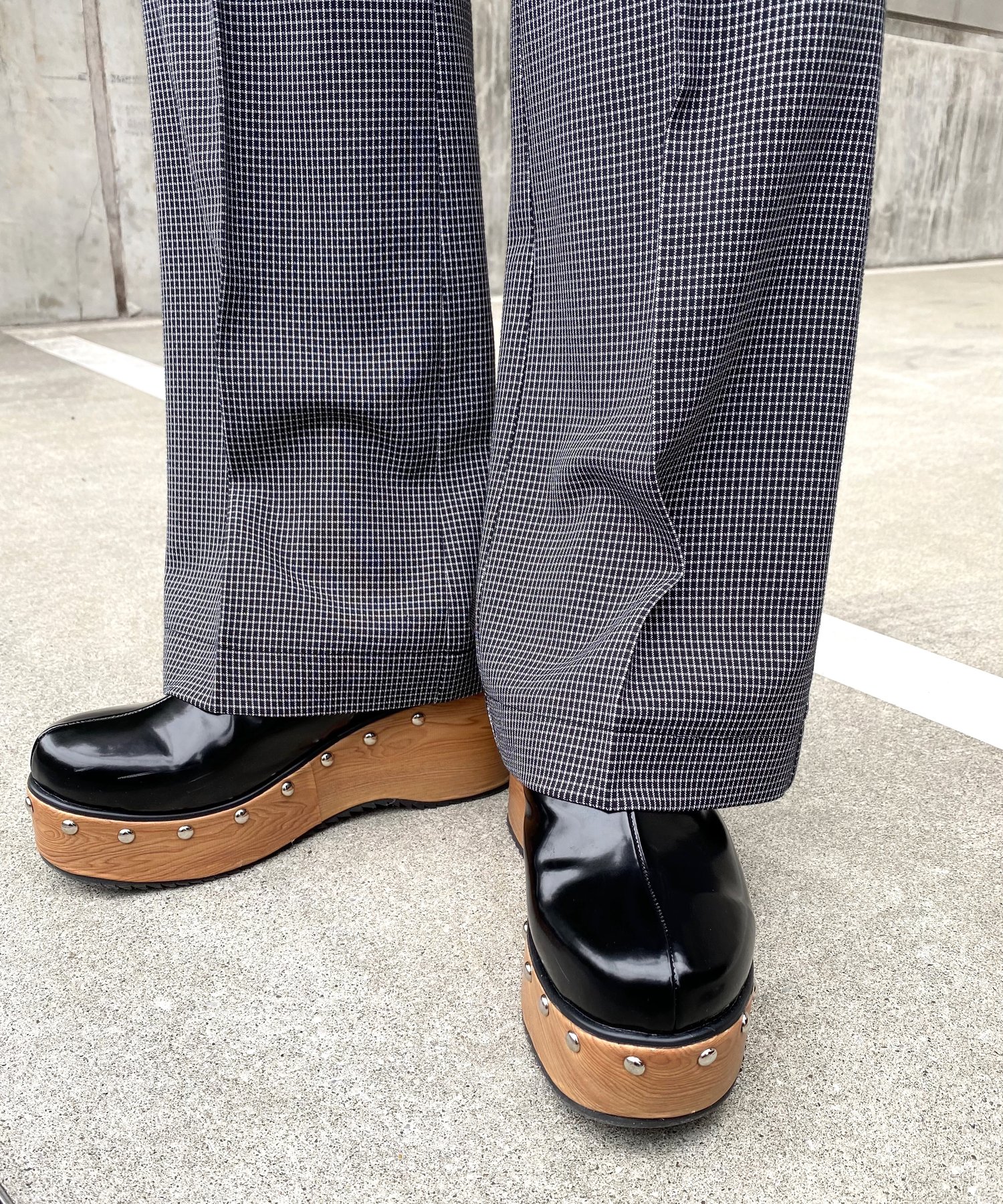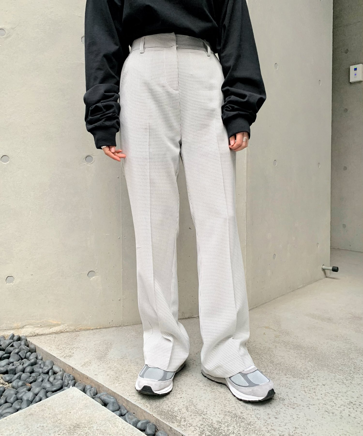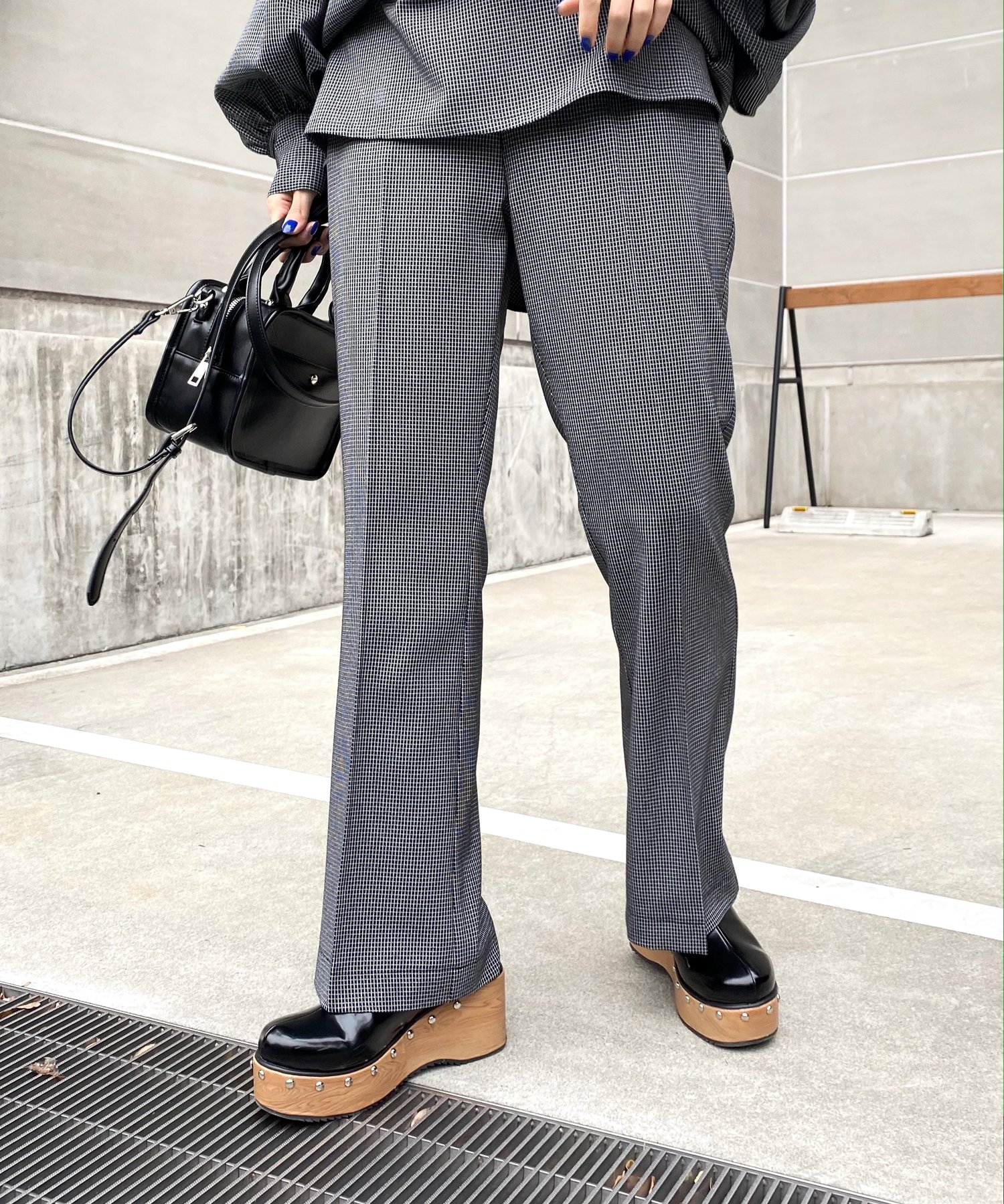 チェックフレアープレスパンツ