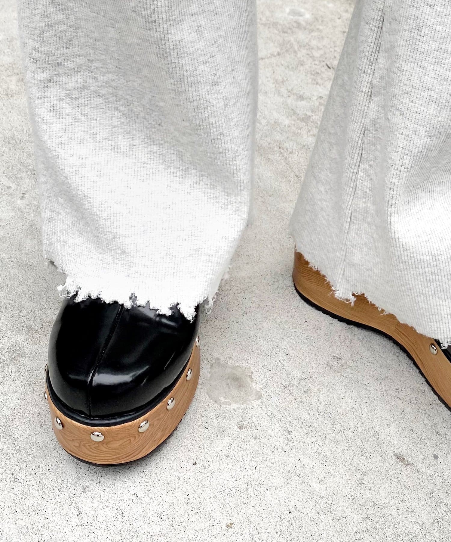 ・リブの凹凸がストライプのように見え、裾のダメージ加工と相まって、シンプルながらもさりげないデザインに。