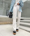 伸縮性があるのにスッキリシルエットで穿ける!ストレスフリーなリブパンツ