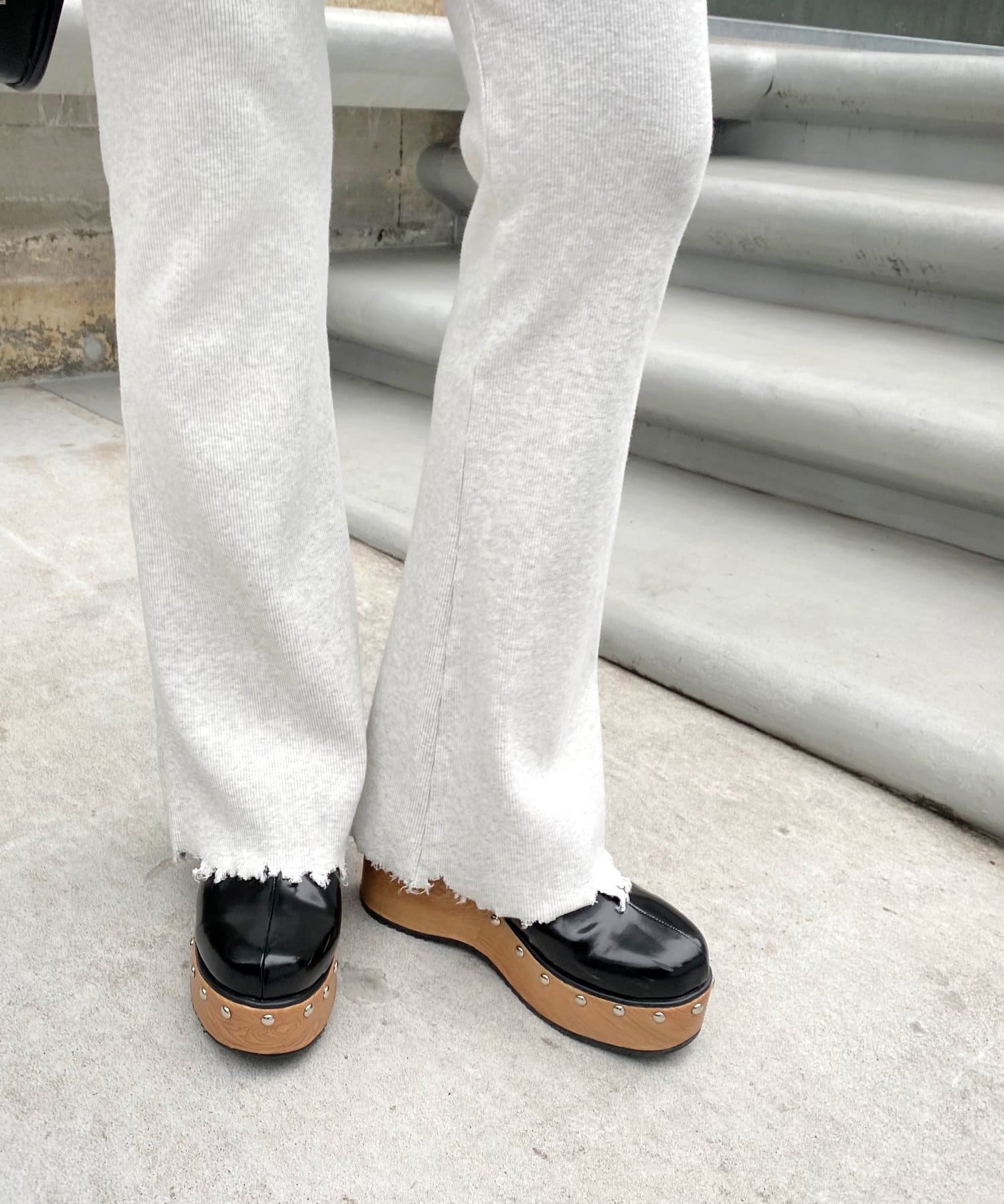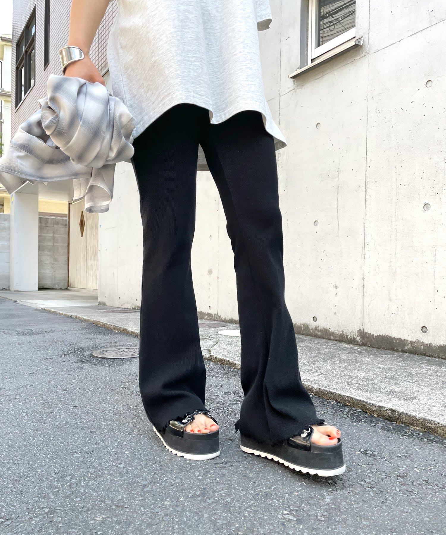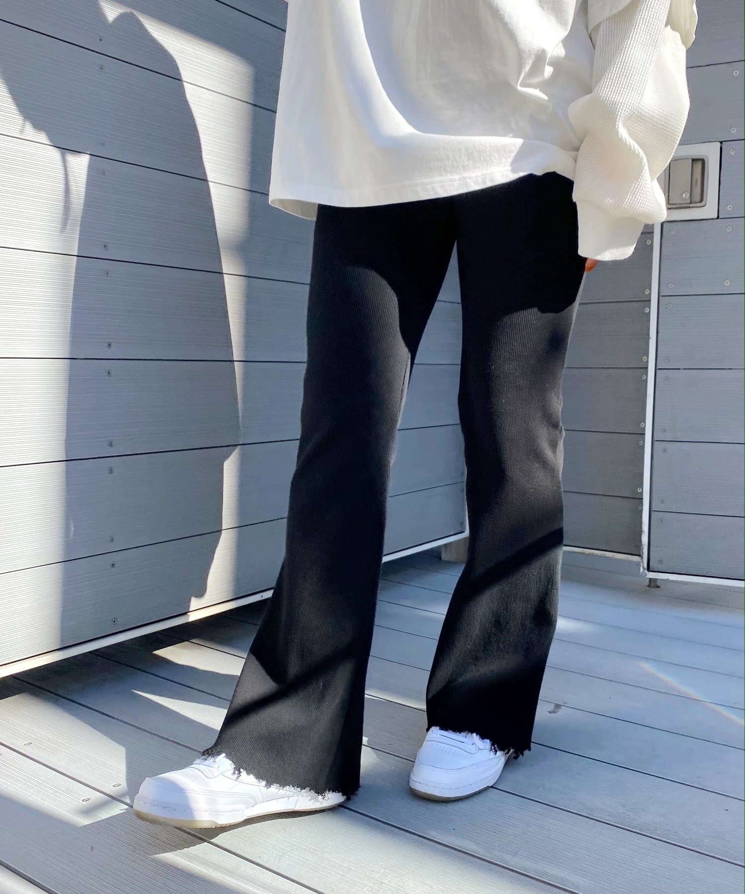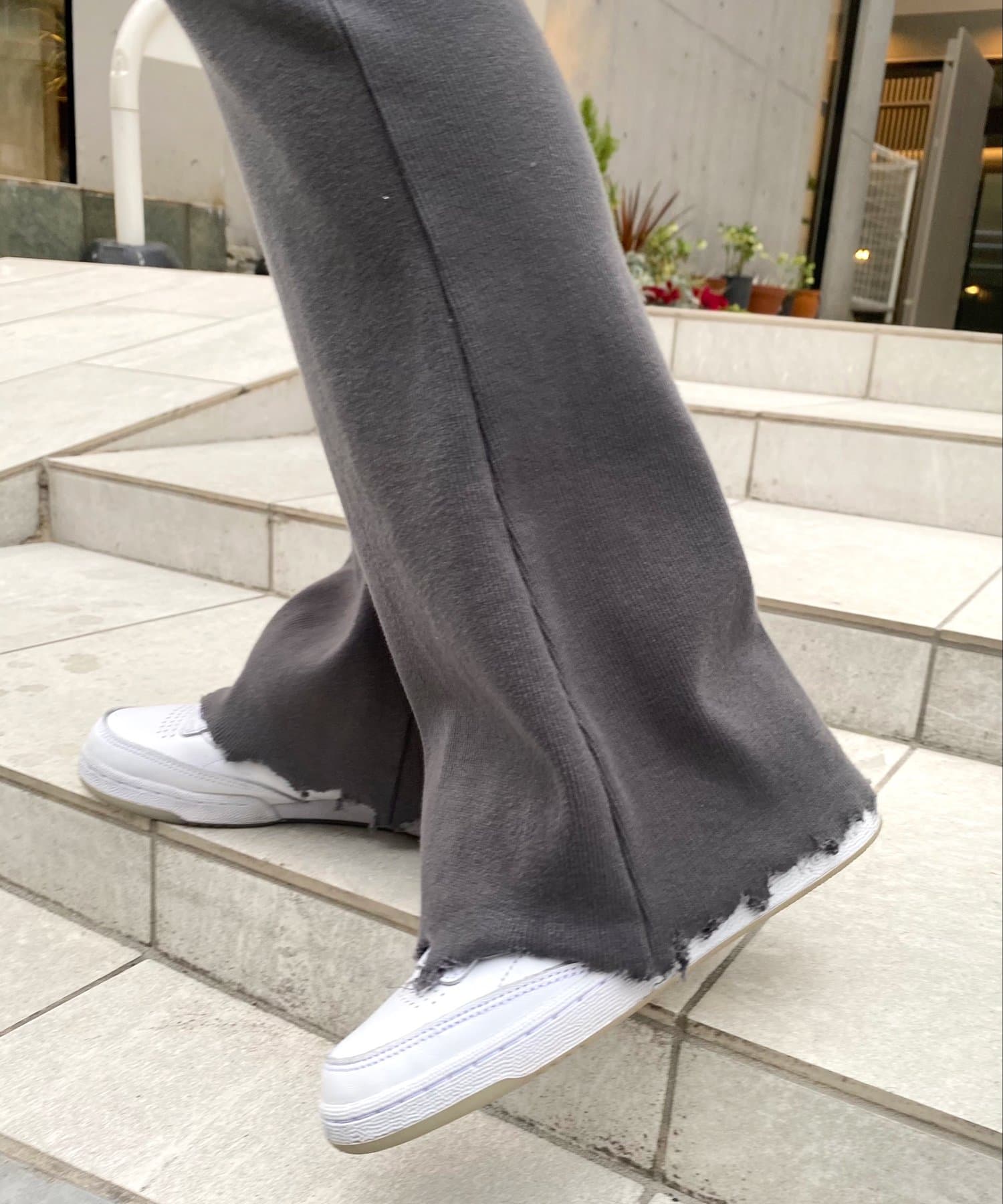 ・リブの凹凸がストライプのように見え、裾のダメージ加工と相まって、シンプルながらもさりげないデザインに。
