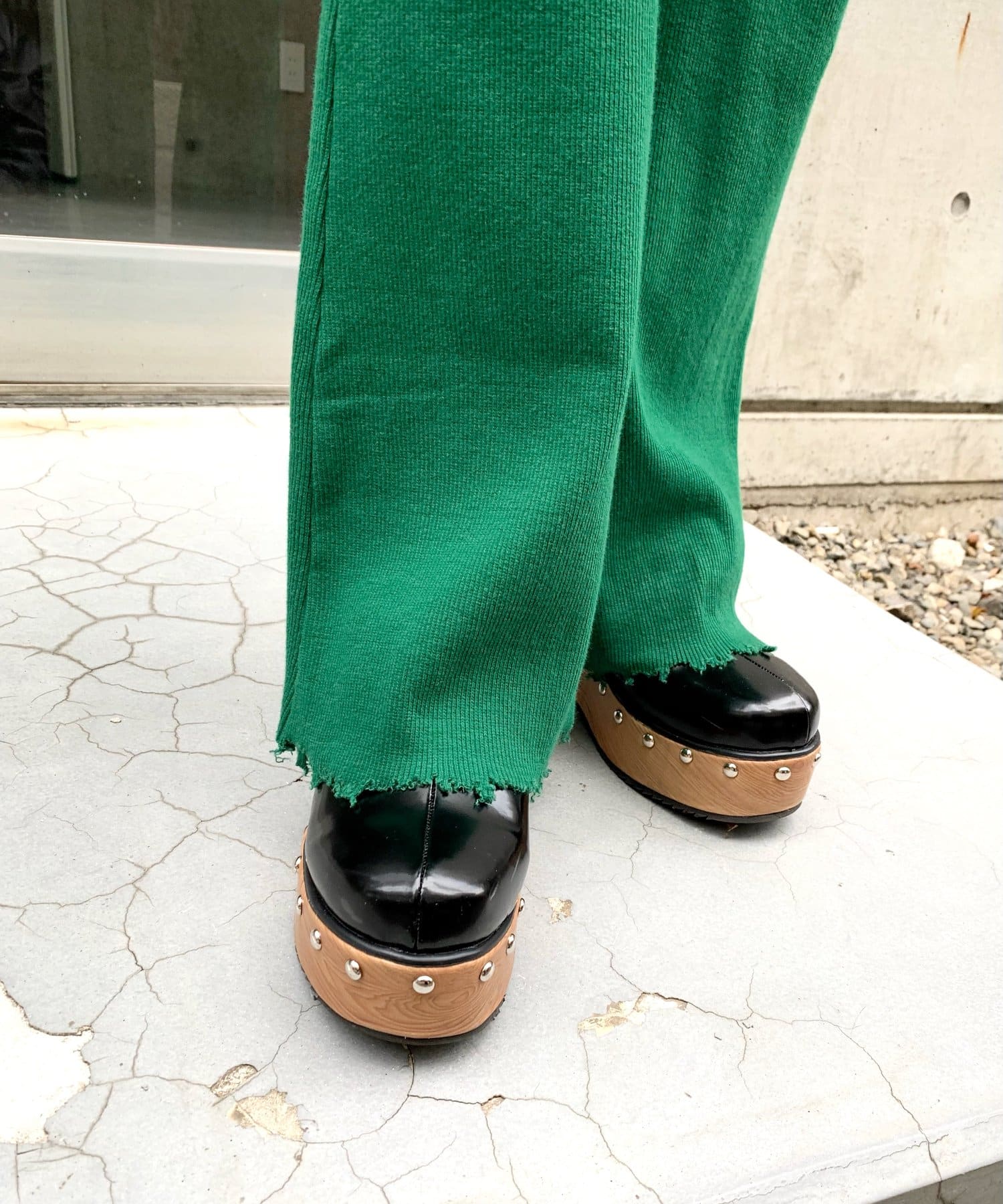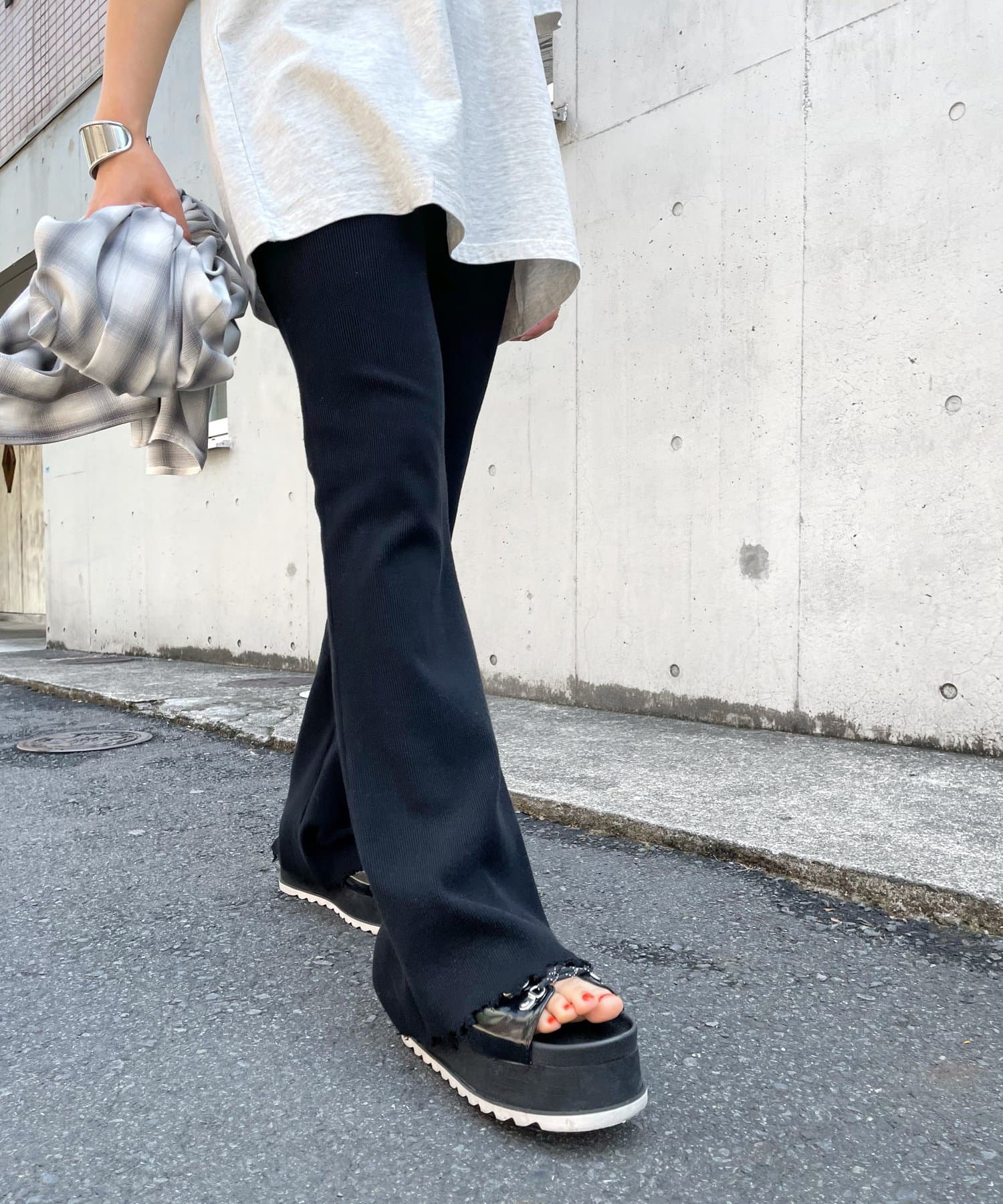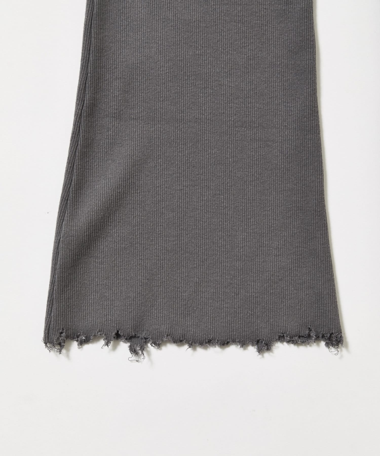 ・リブの凹凸がストライプのように見え、裾のダメージ加工と相まって、シンプルながらもさりげないデザインに。