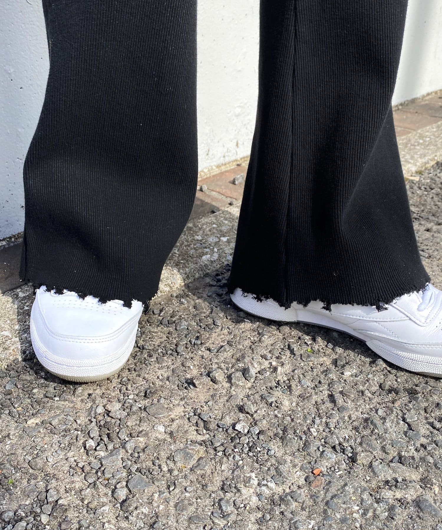 伸縮性があるのにスッキリシルエットで穿ける!ストレスフリーなリブパンツ