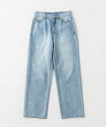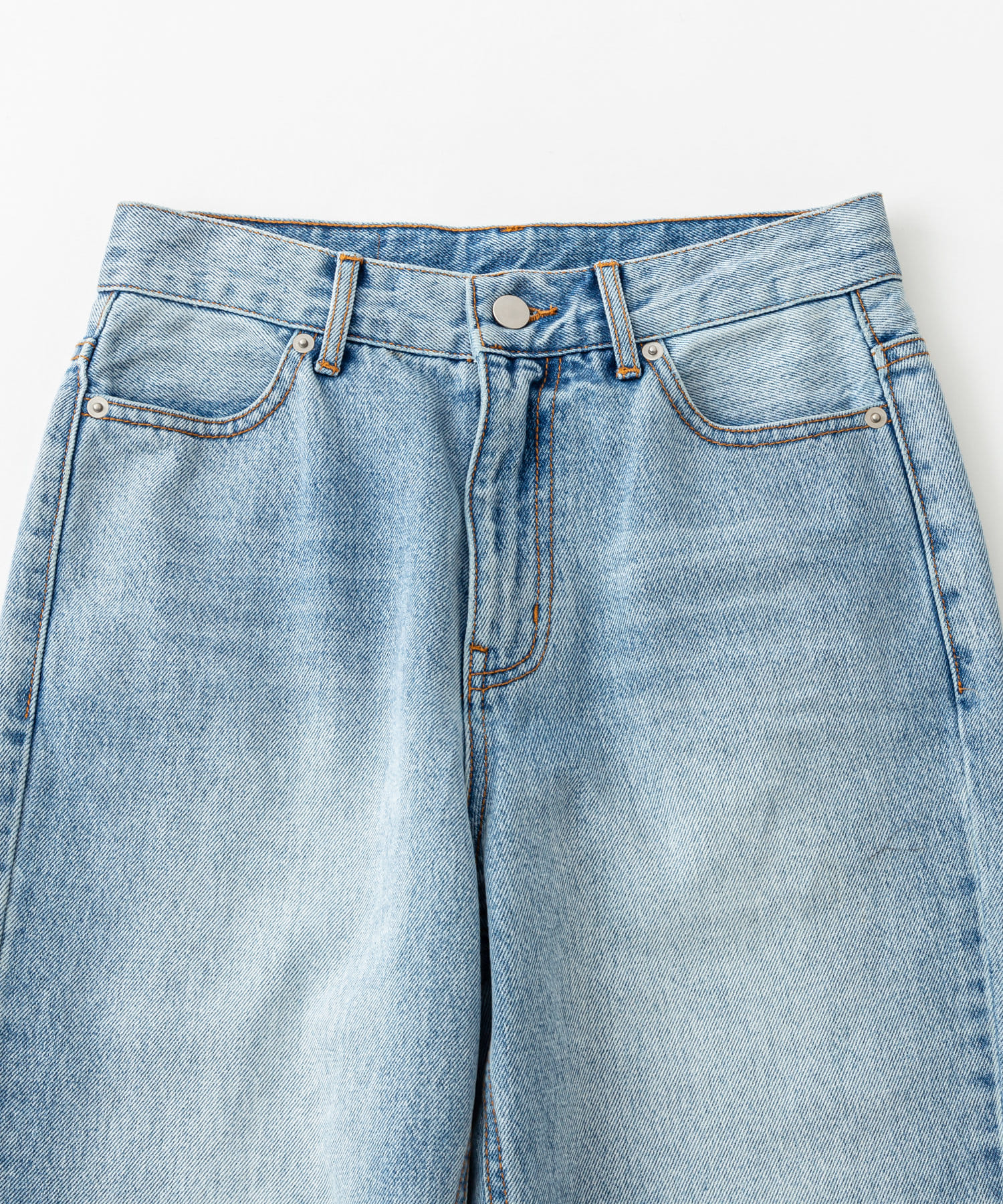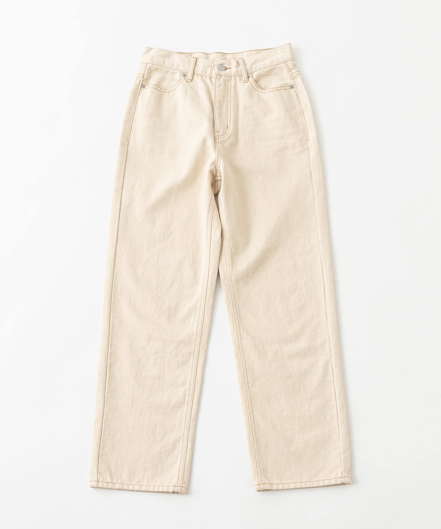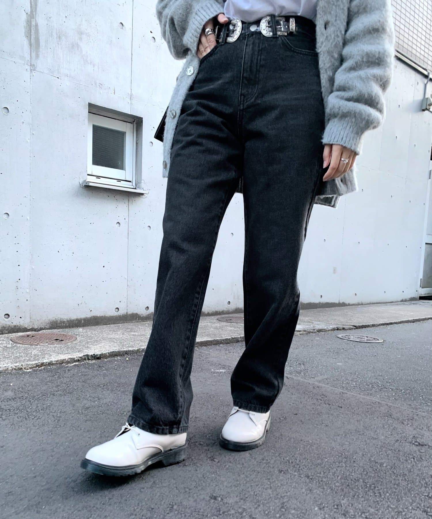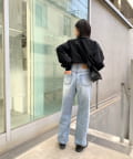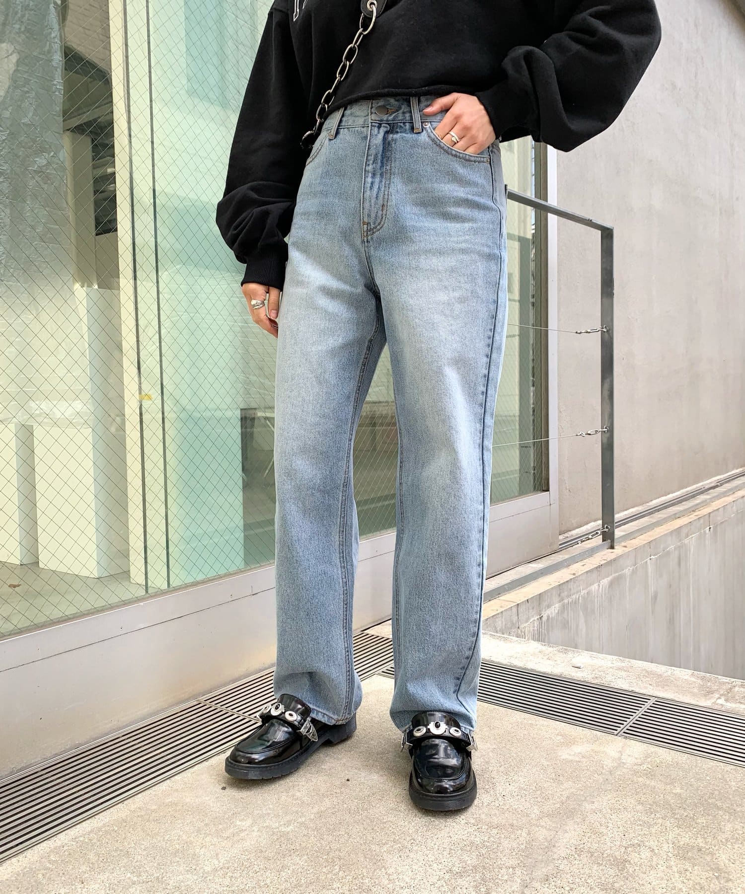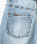 バックの紙ネームパッチがアクセントに。美脚が叶うストレートなシンプルデニム