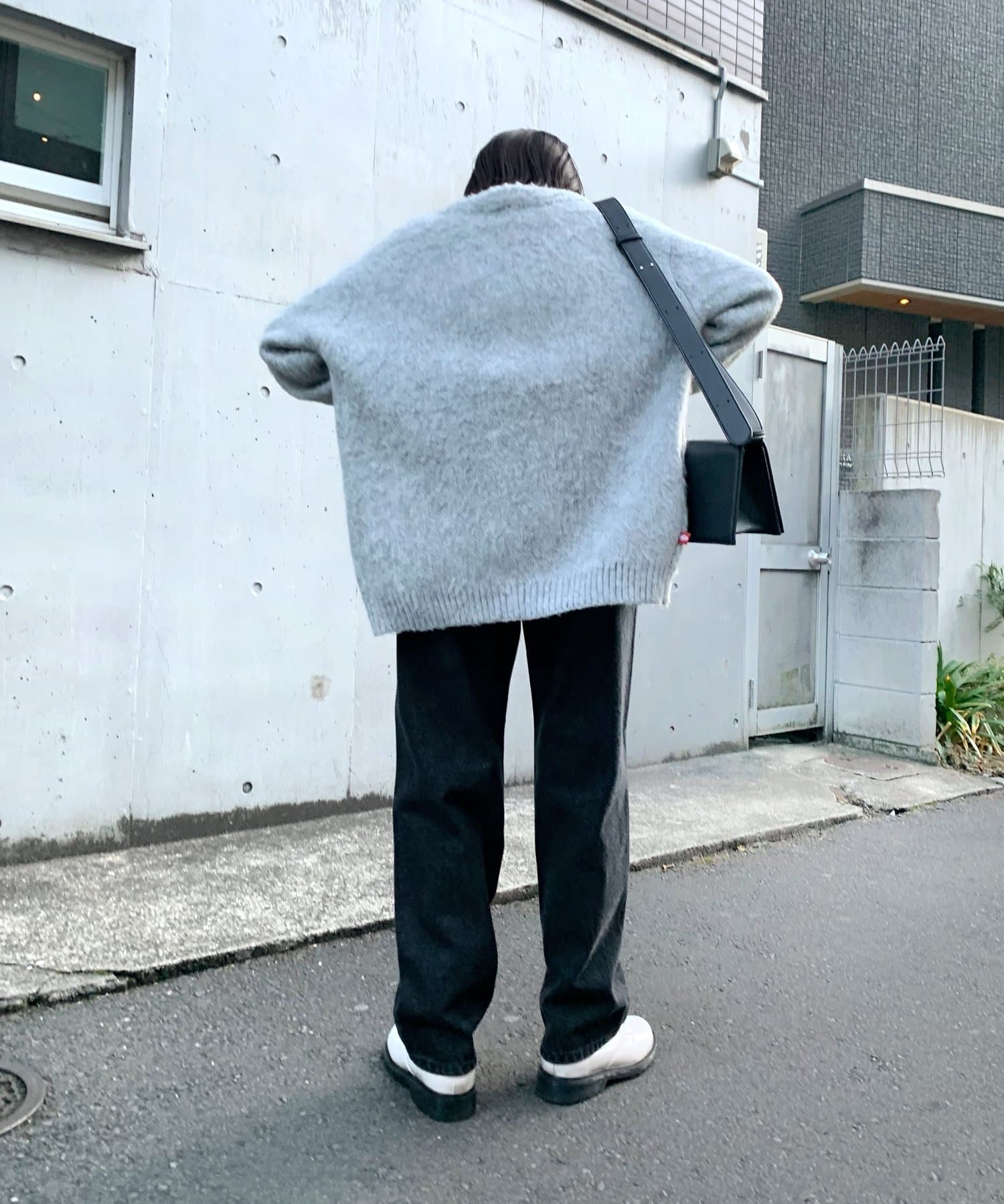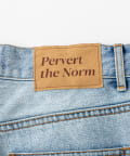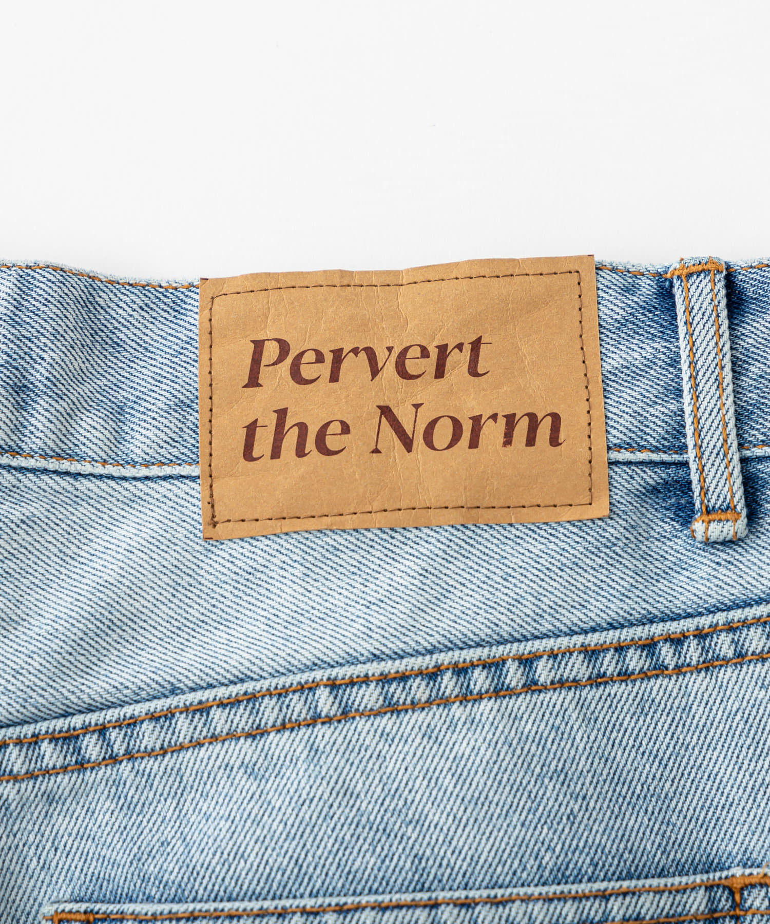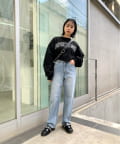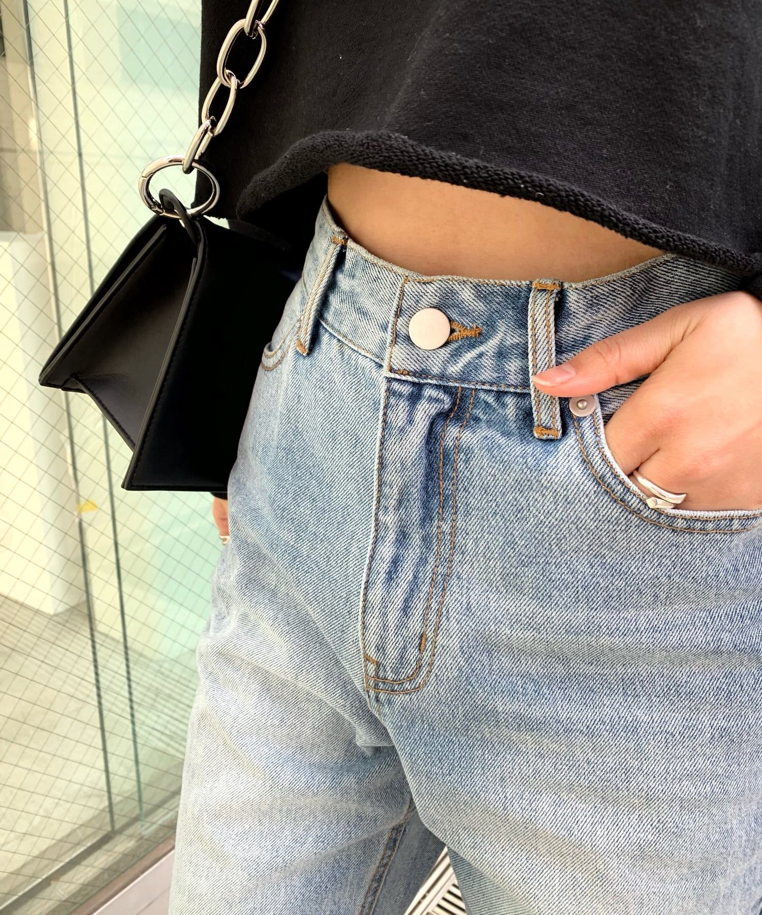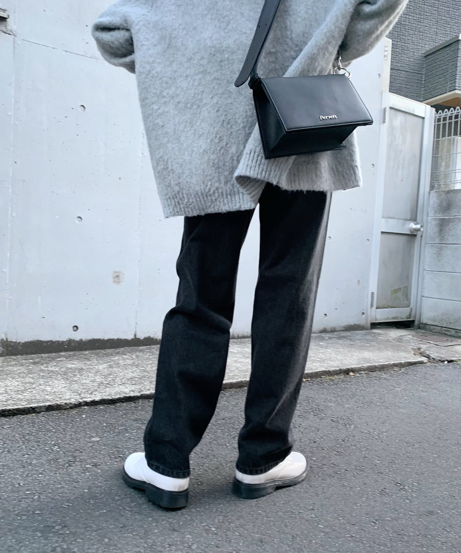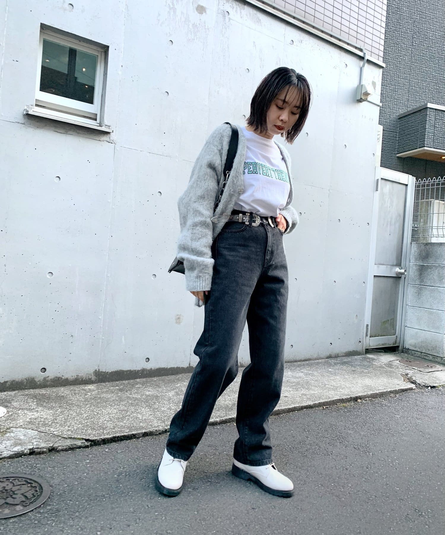 バックの紙ネームパッチがアクセントに。美脚が叶うストレートなシンプルデニム