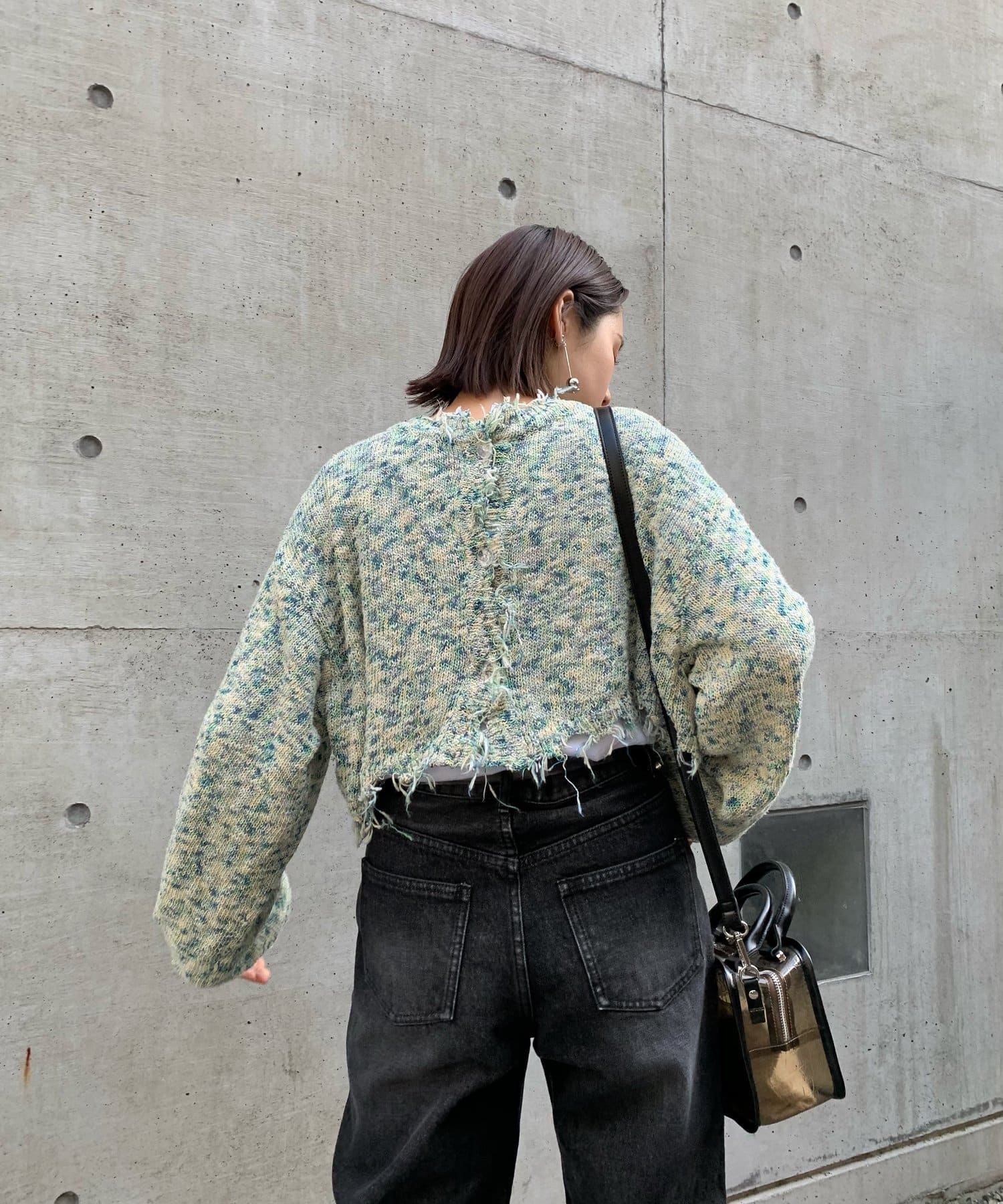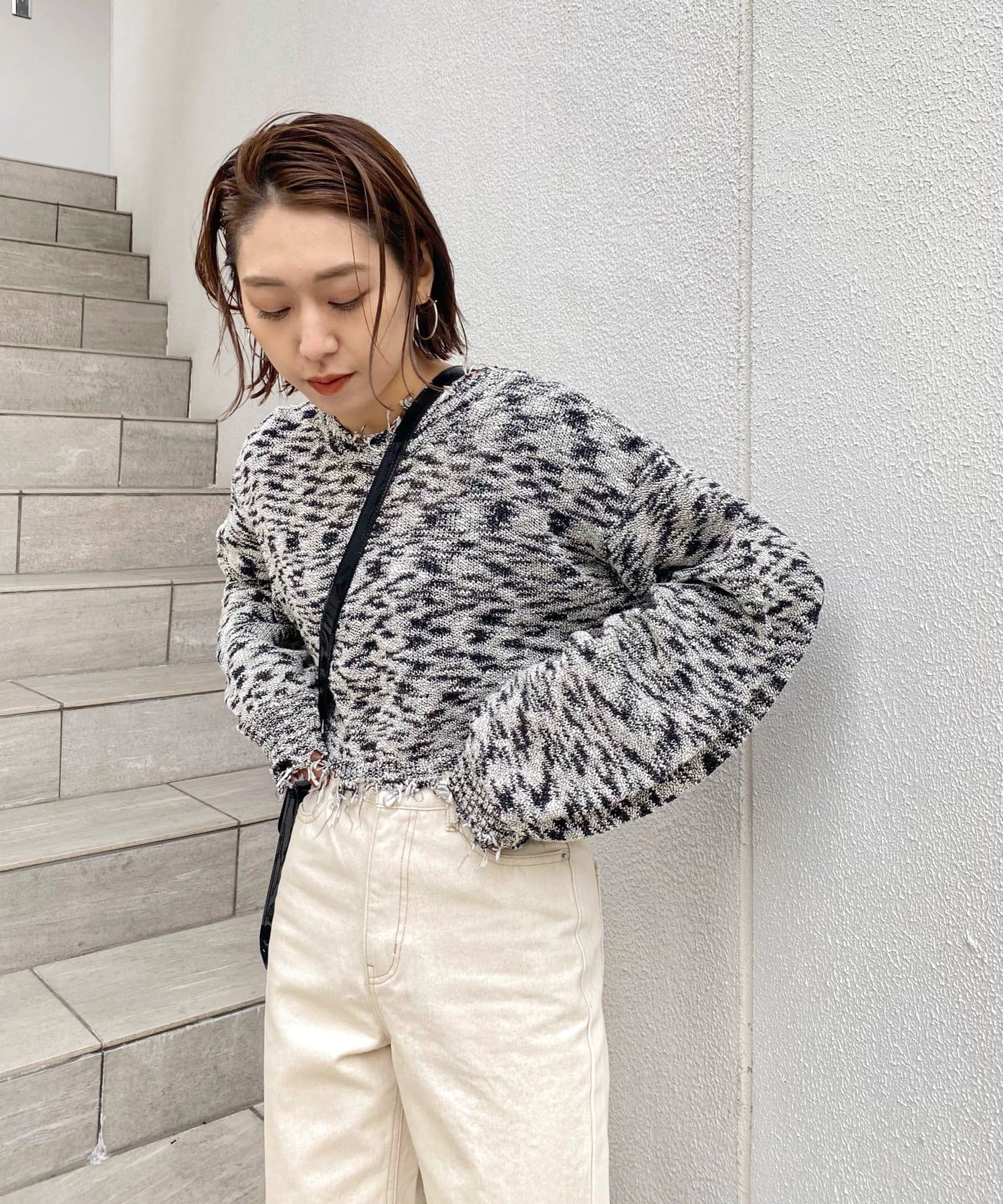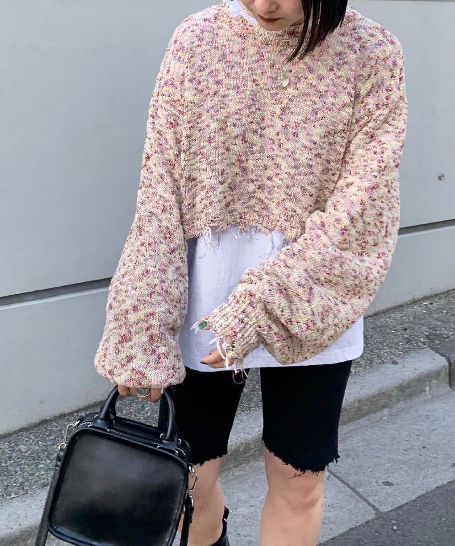 まばらなカラーと風合いを楽しんで!ショート丈のファンシーヤーンニット