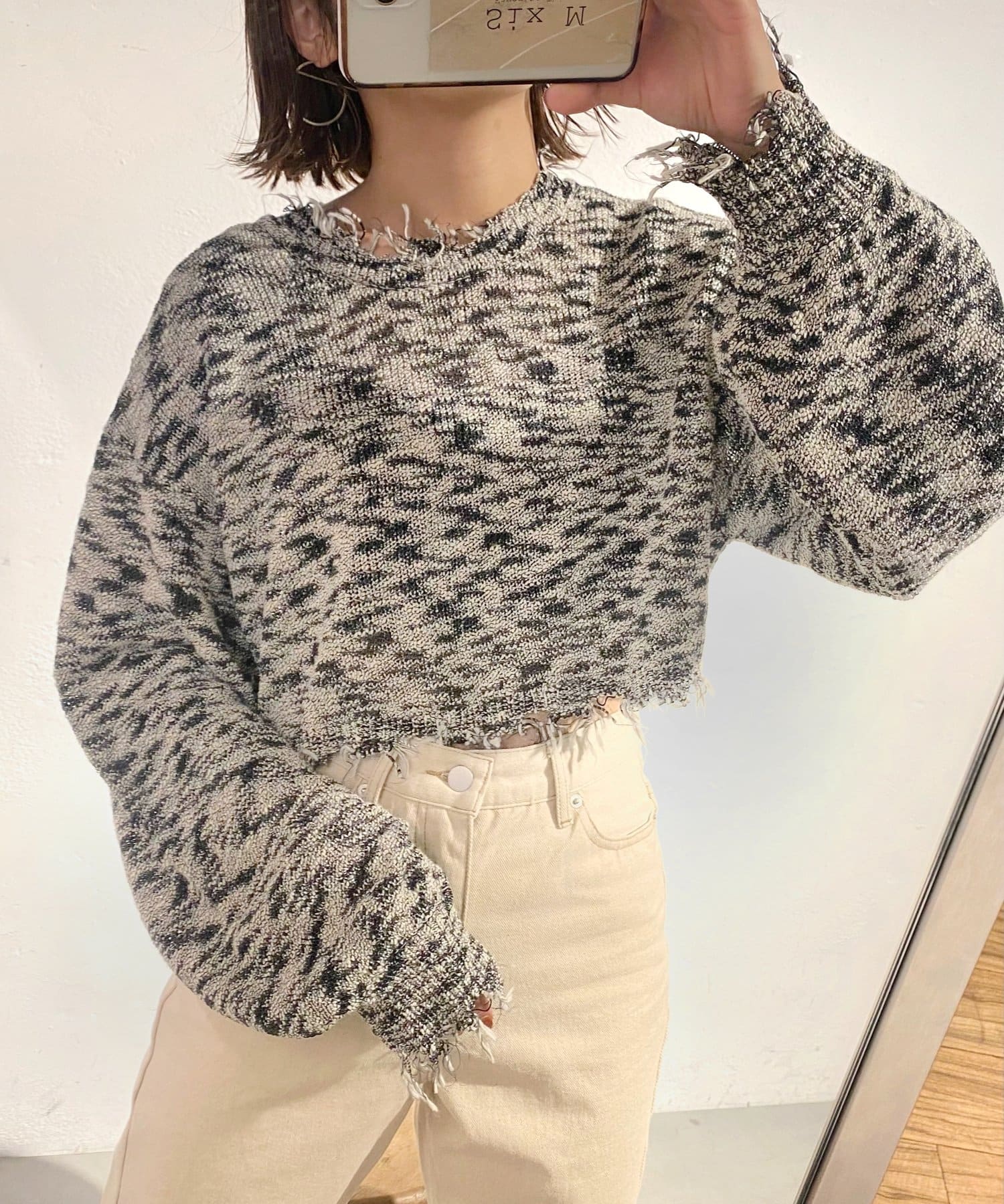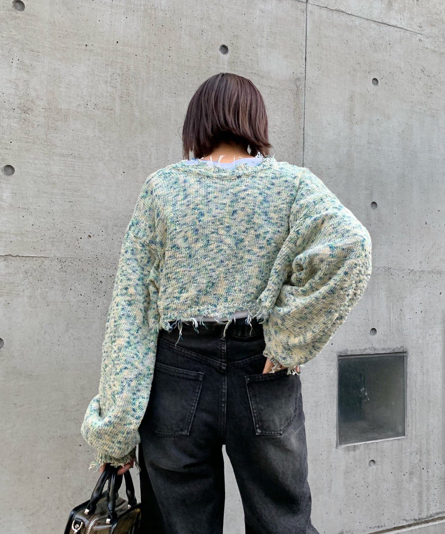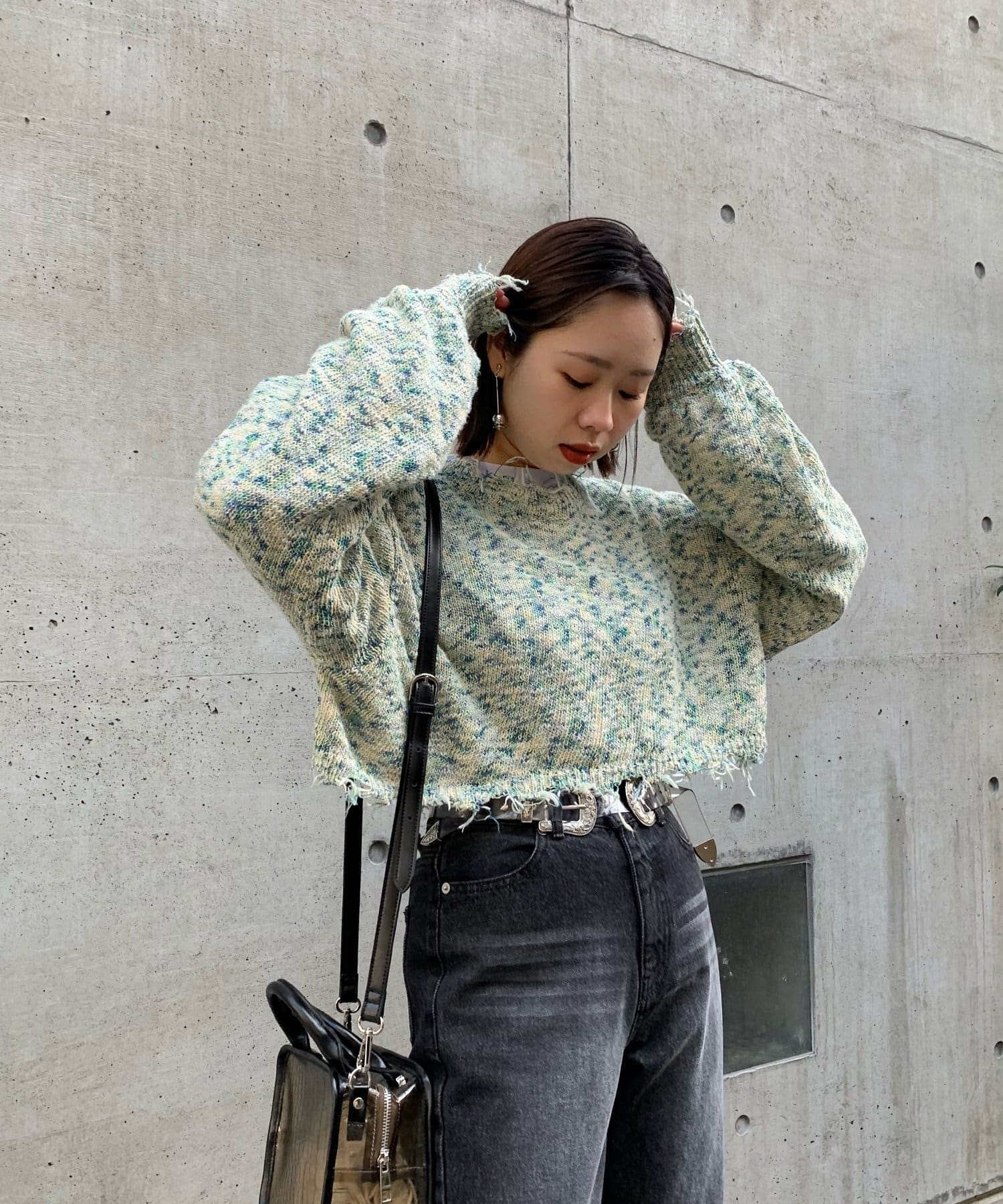 まばらなカラーと風合いを楽しんで!ショート丈のファンシーヤーンニット