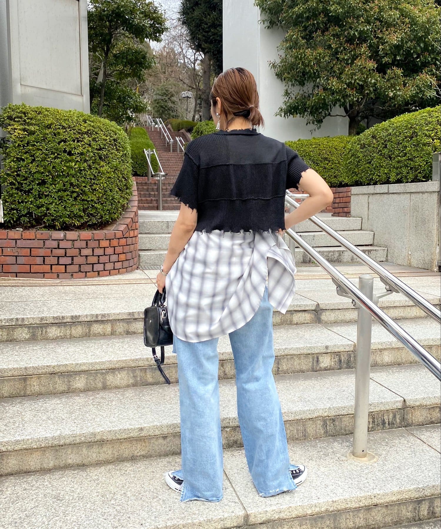 ・麻とコットンを使用した春仕様の軽い生地感で、短丈なので、スッキリとしたスタイリングに。