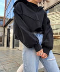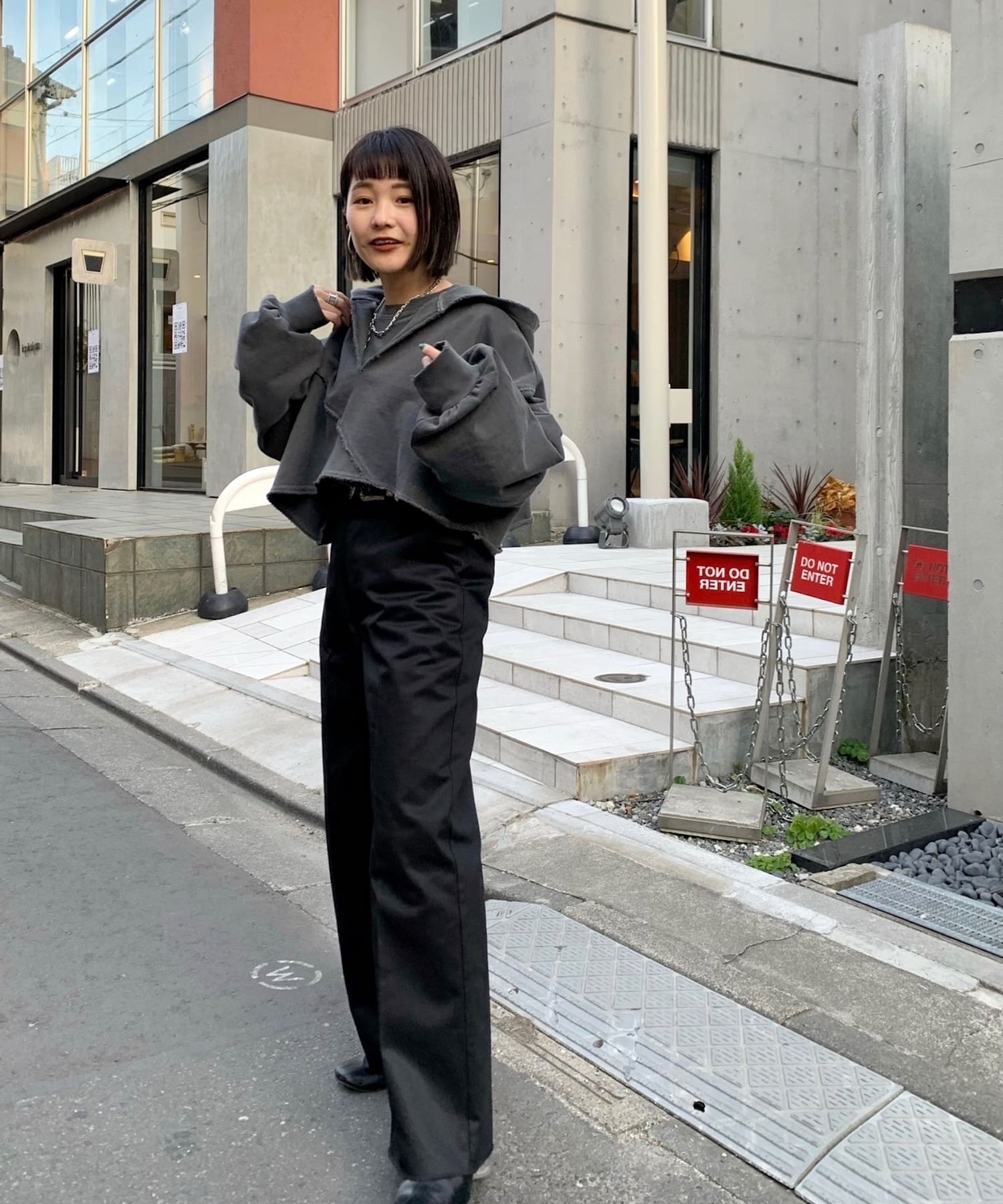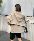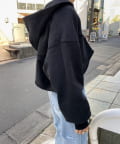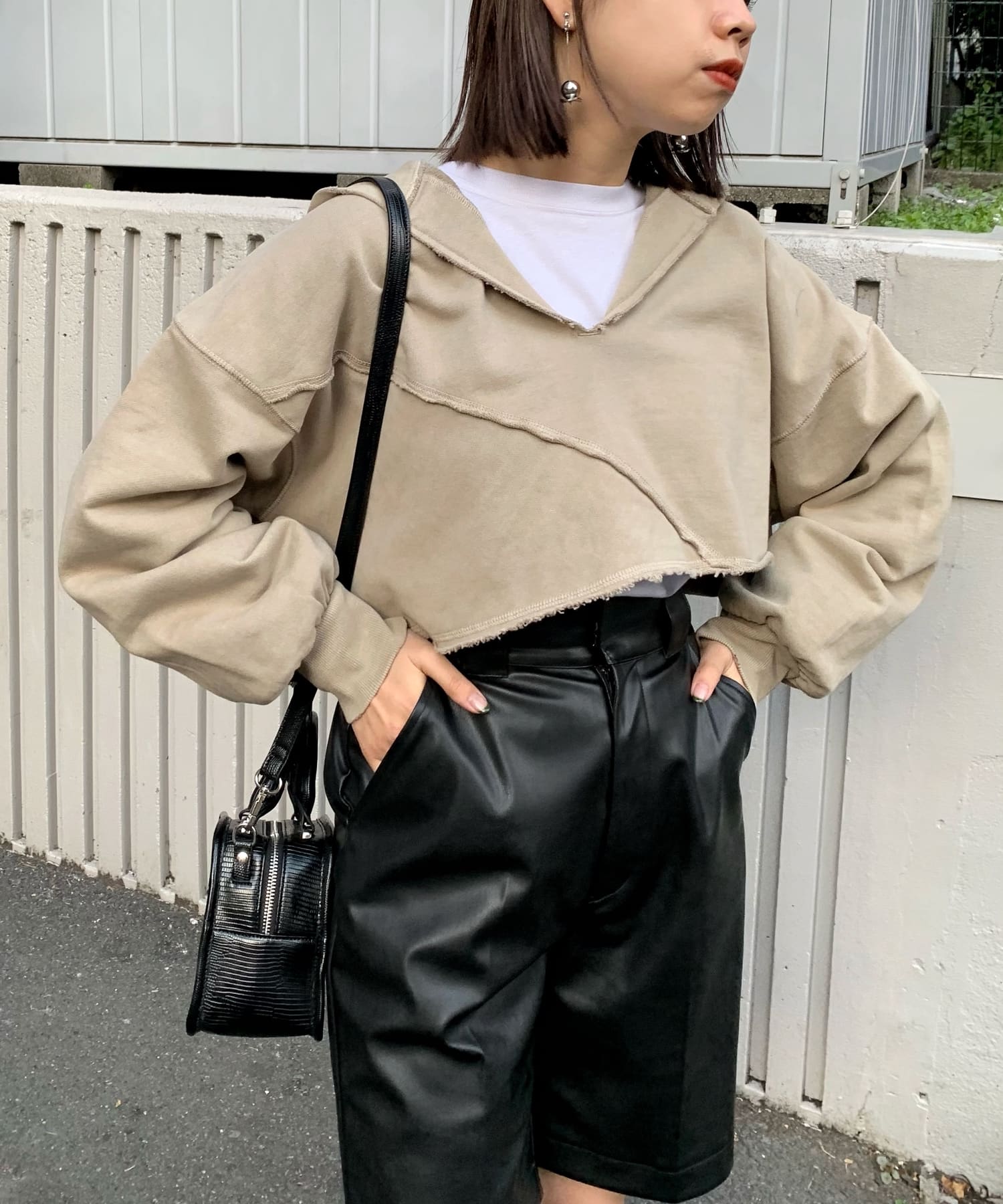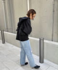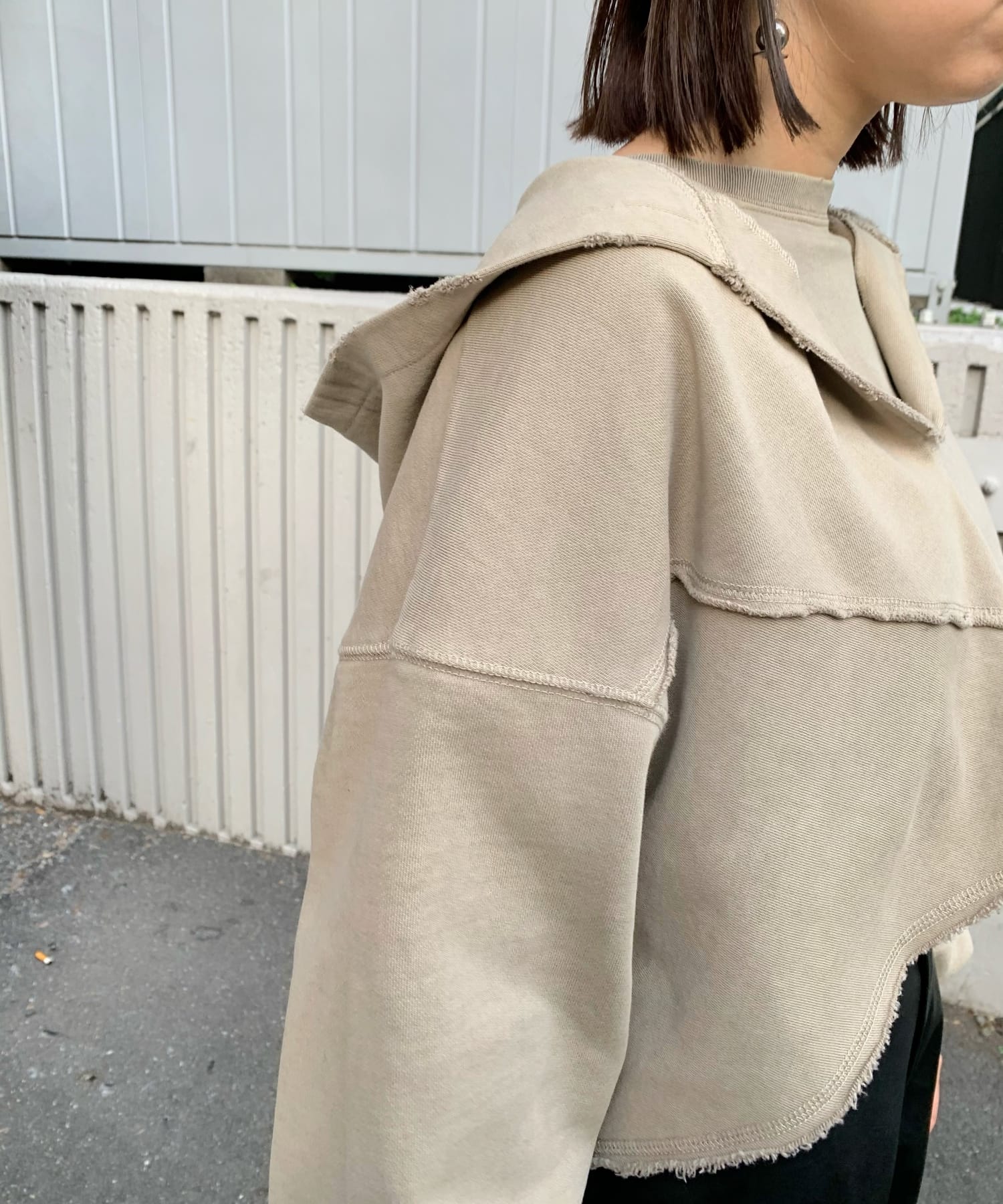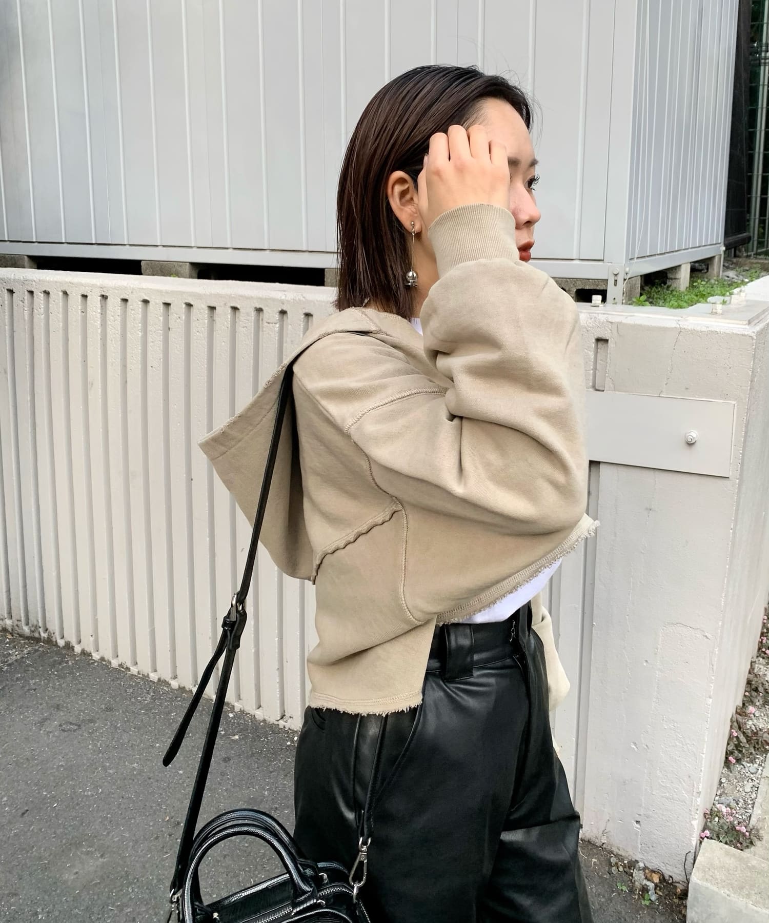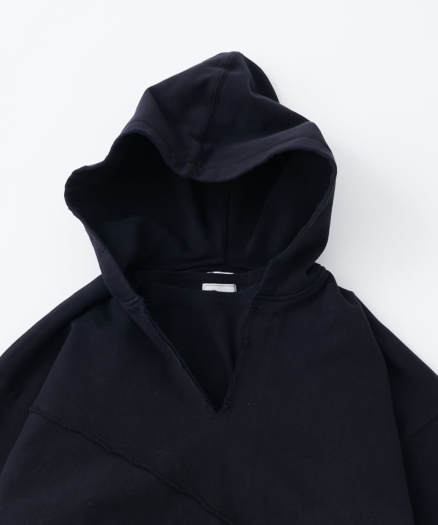 ・パーカーの襟元はざっくりV字ネック。シャープでクリーンな印象を与えます。