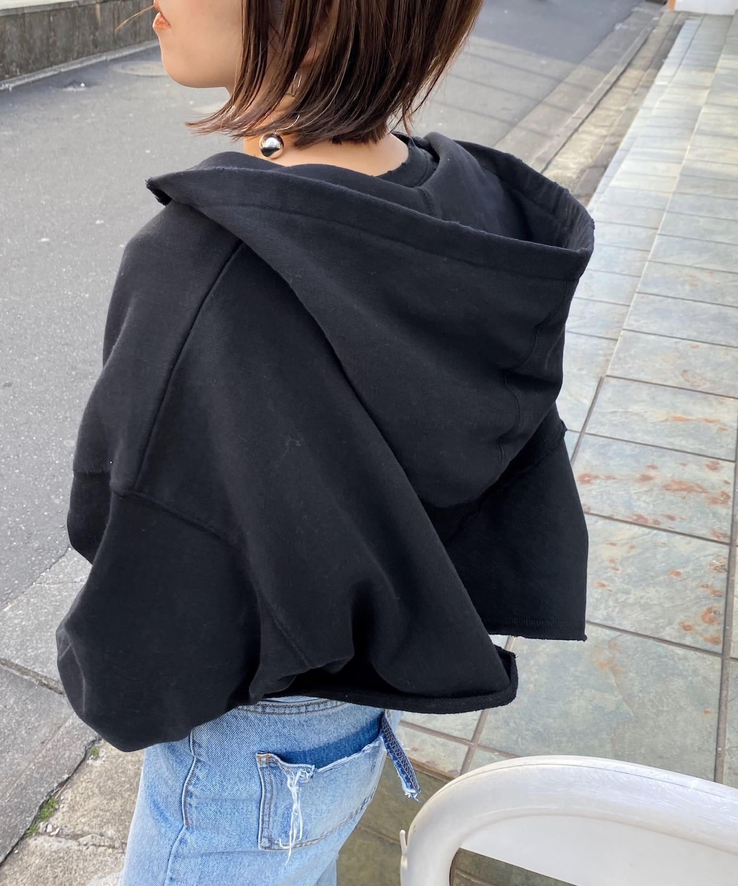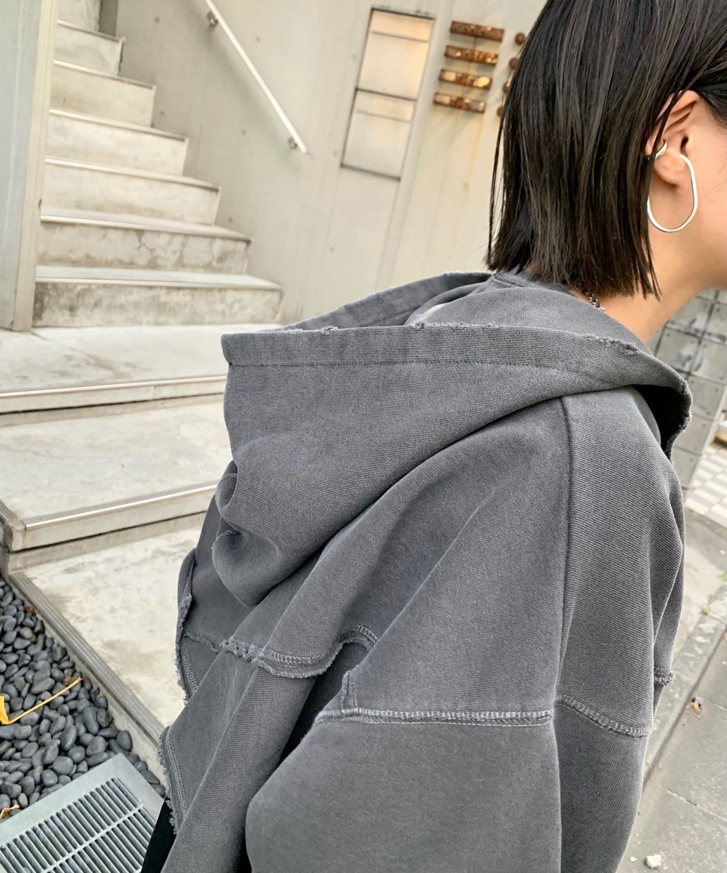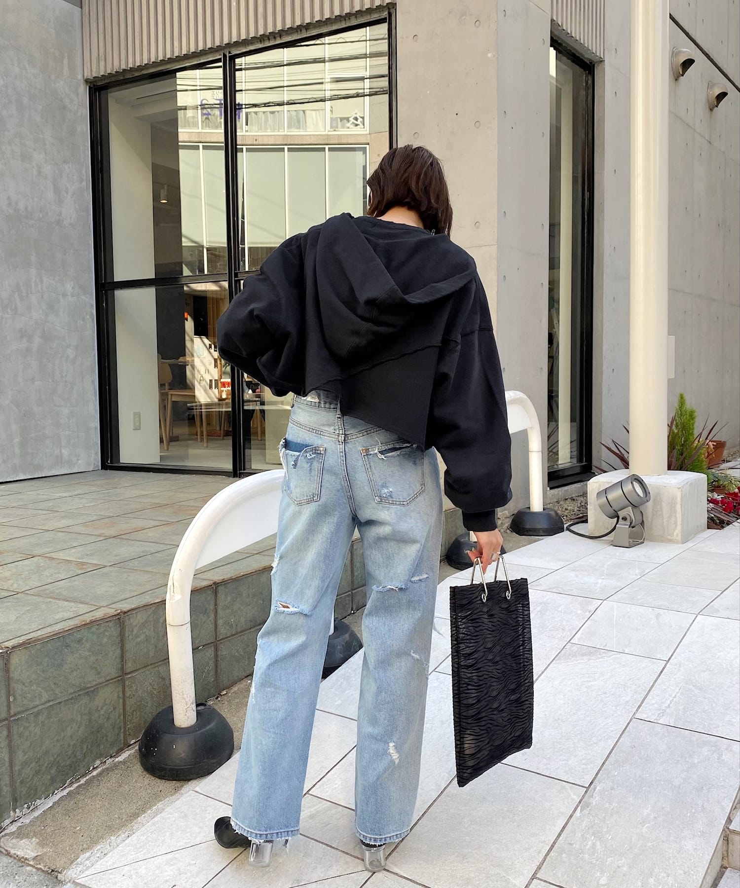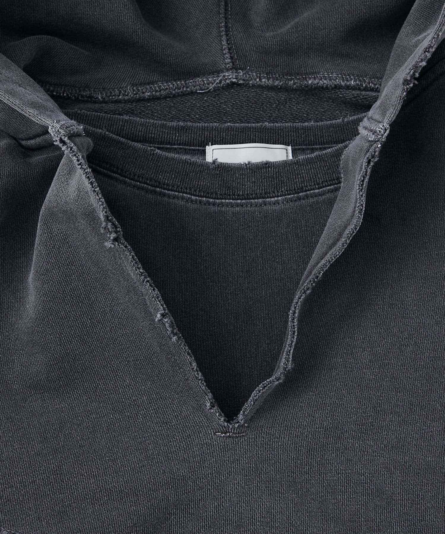 ・フードや袖口などのダメージ加工はランダムに仕上げており、シンプルなデザインの中にもアクセントに。