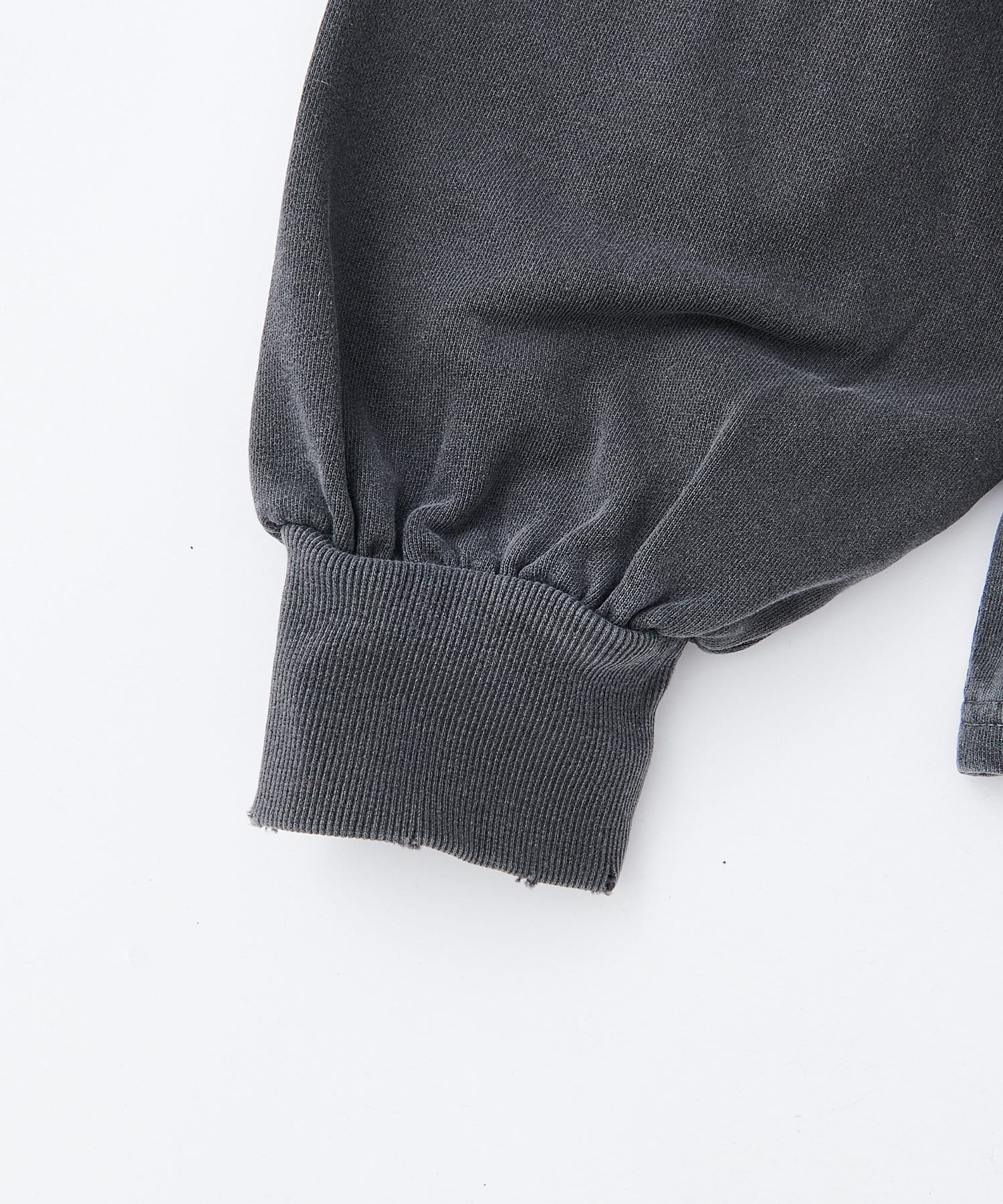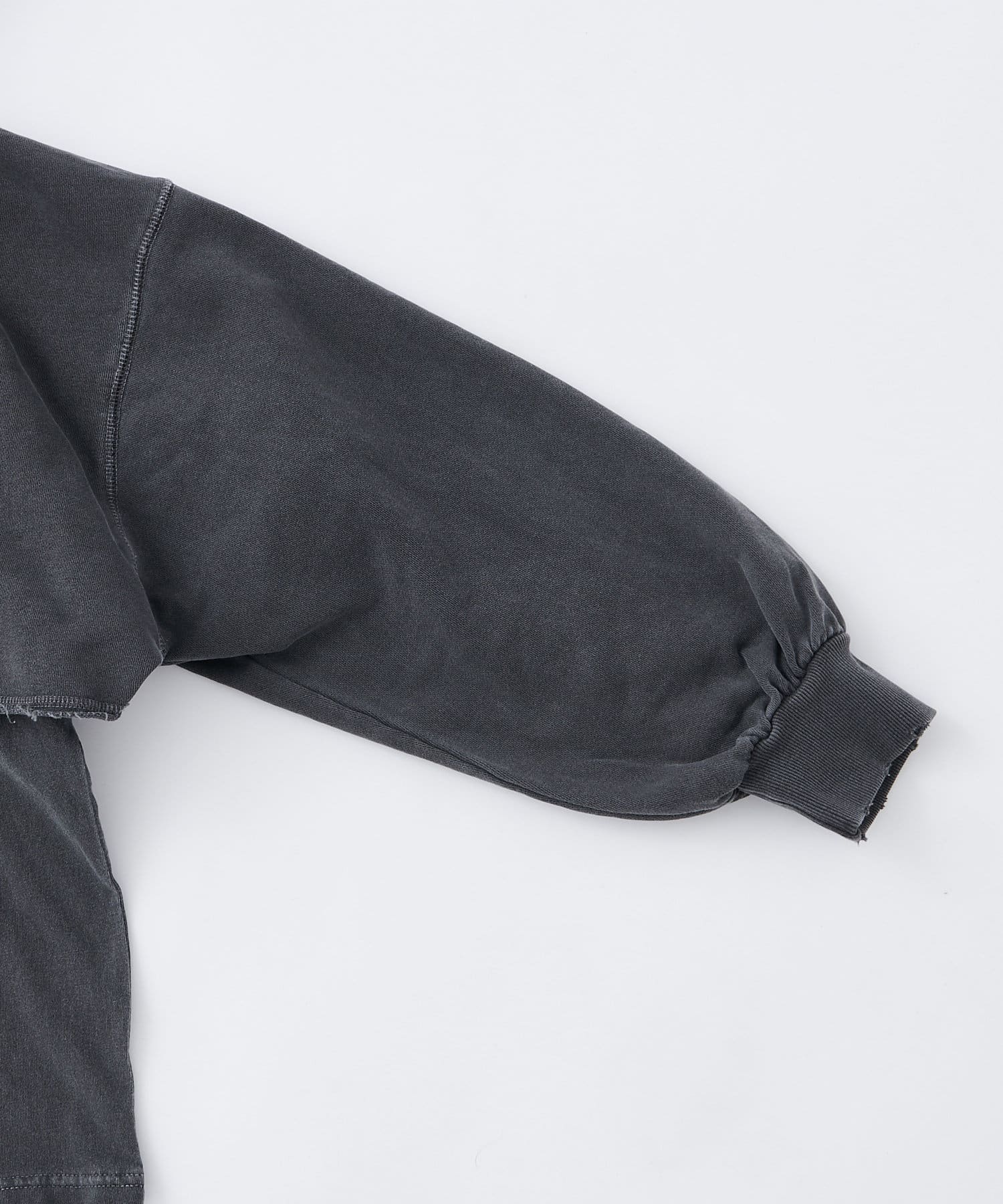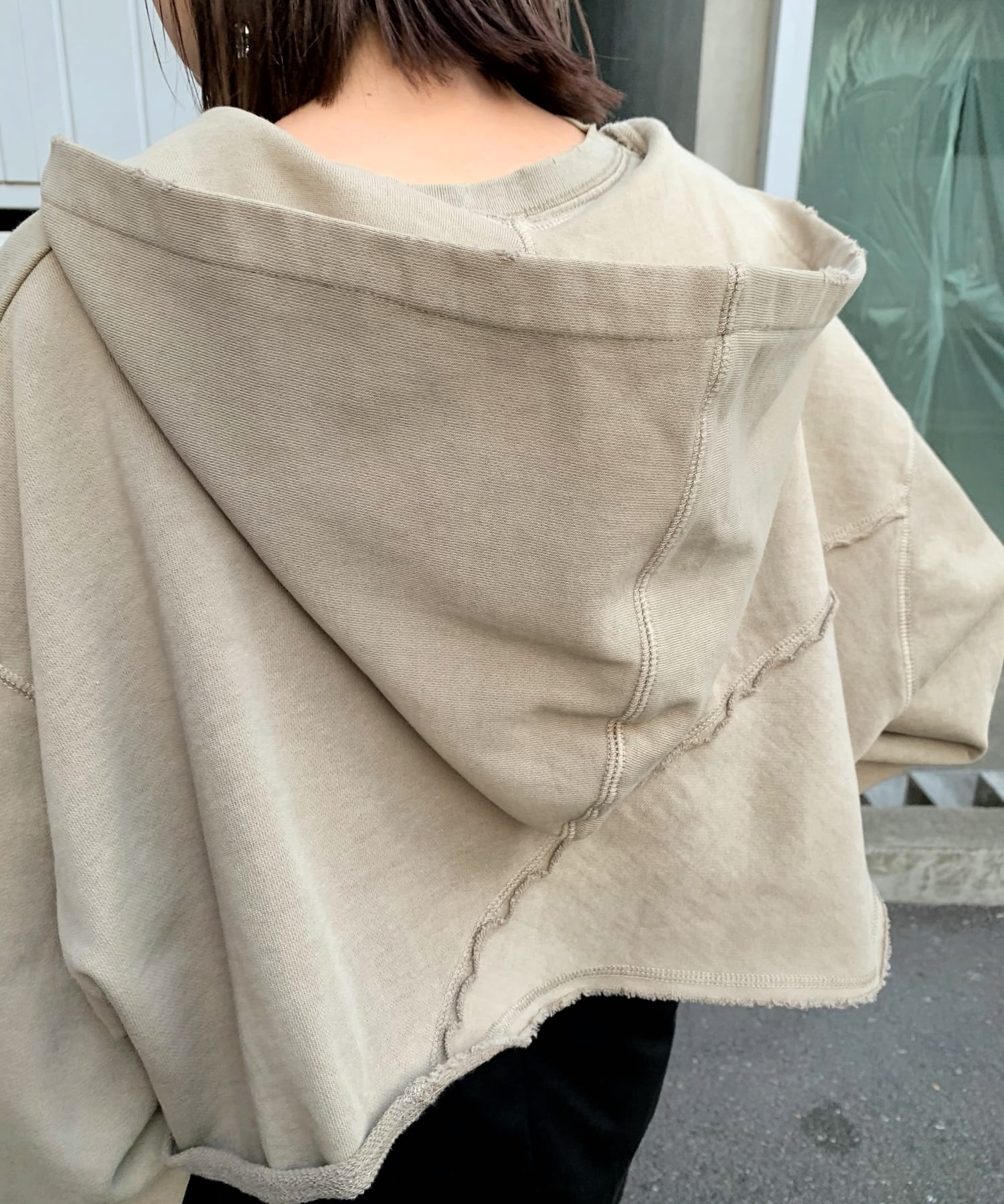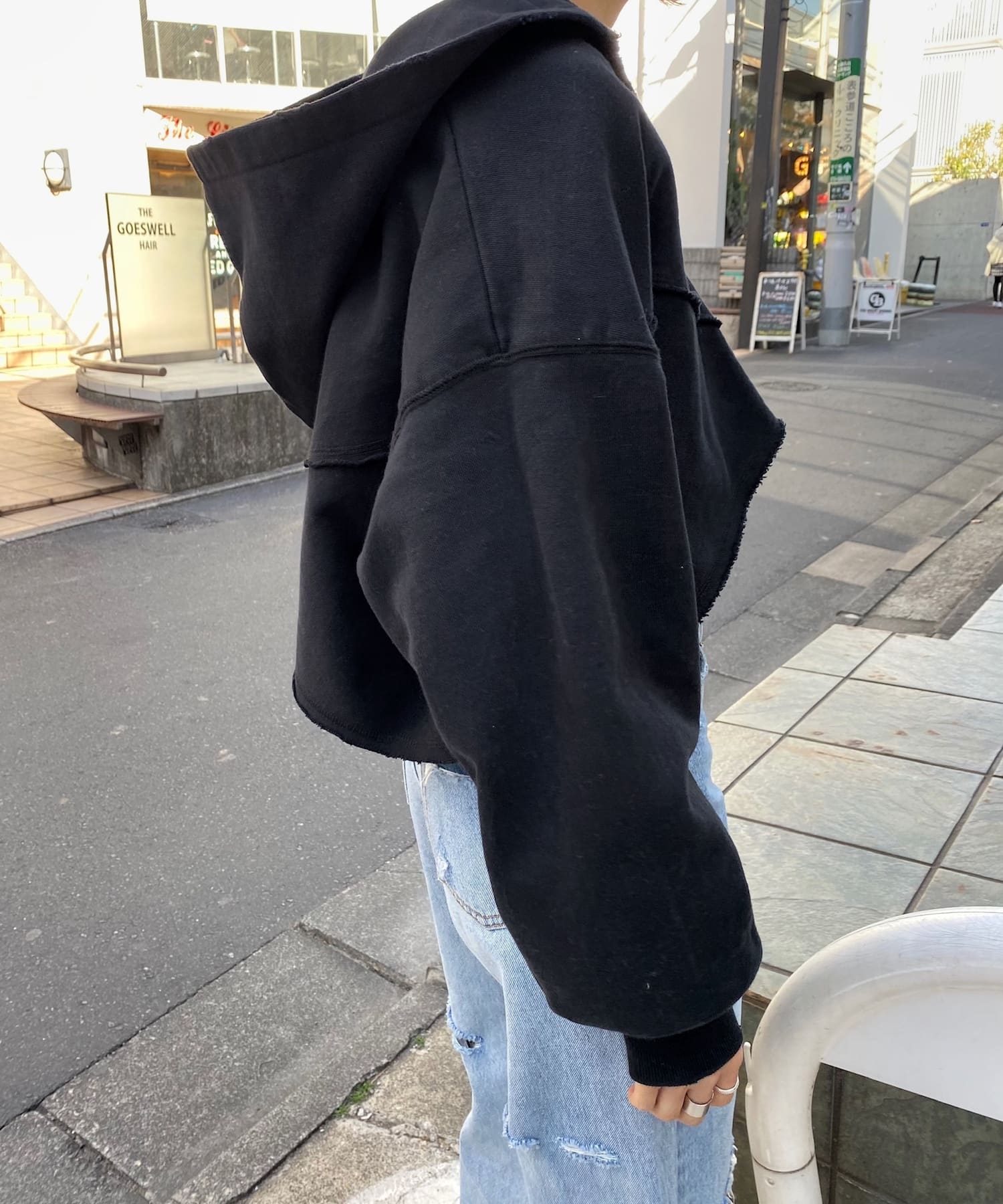 ・フードや袖口などのダメージ加工はランダムに仕上げており、シンプルなデザインの中にもアクセントに。