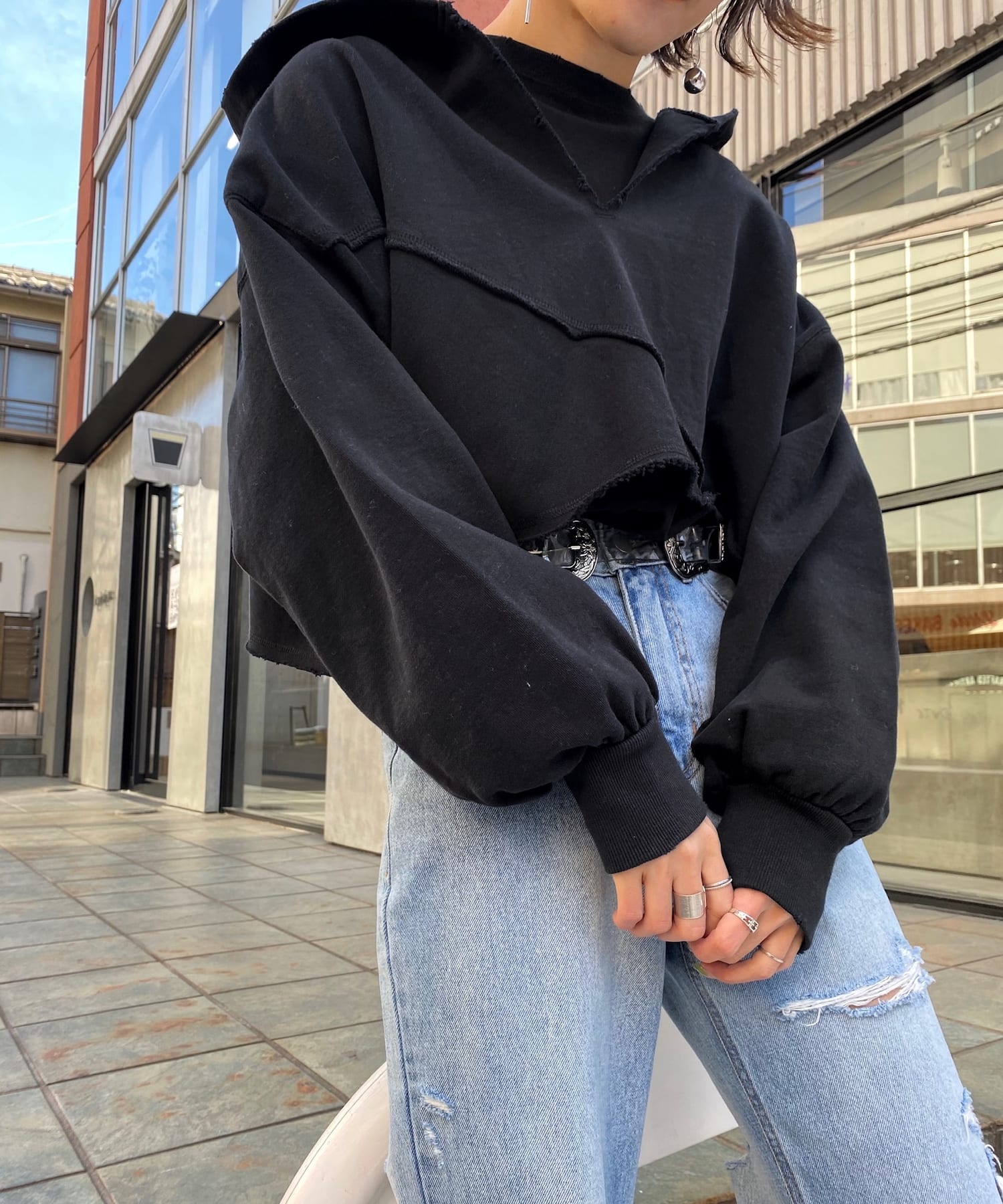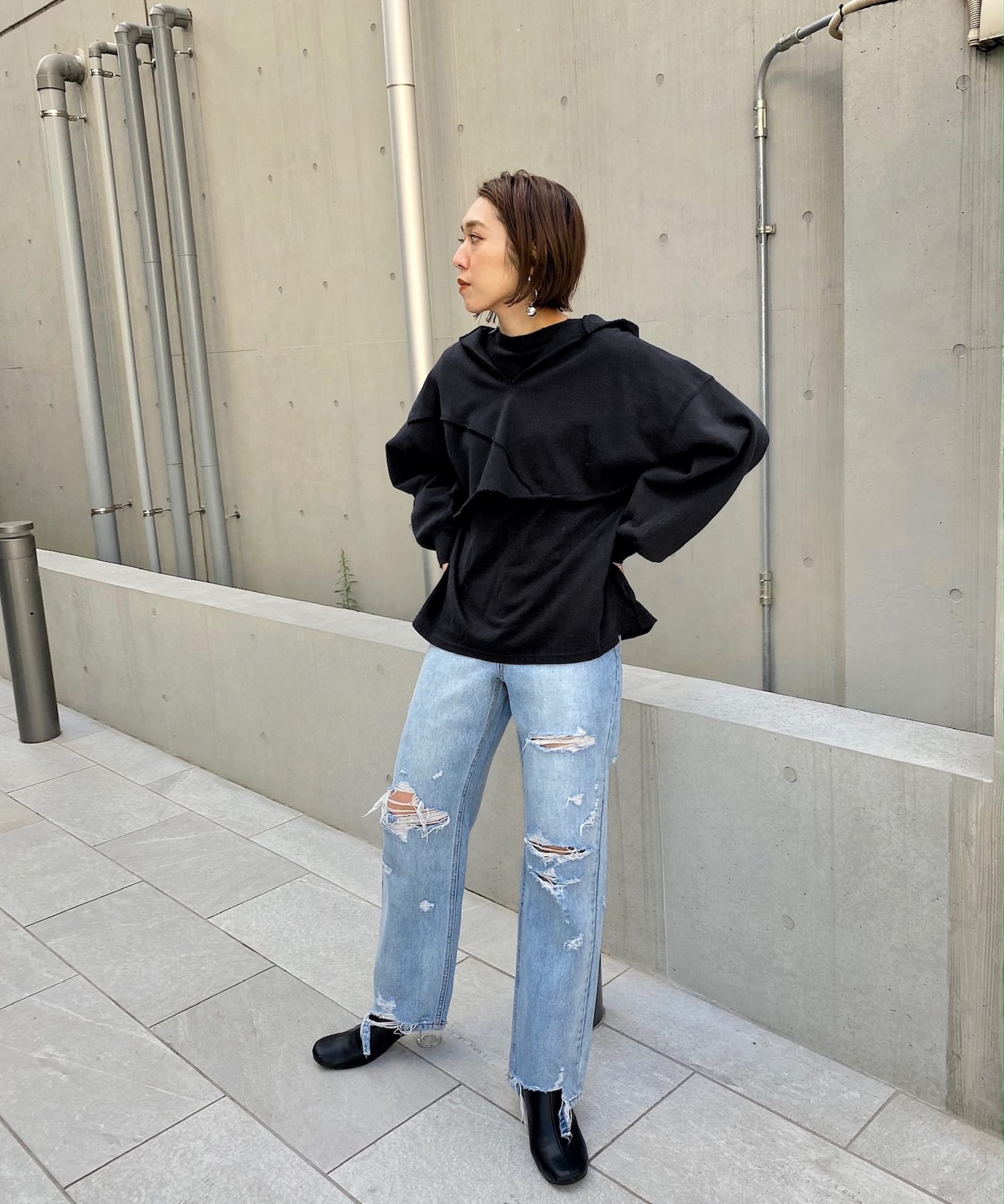 セットでも別々使いでも◎!レイヤードスタイルが簡単に叶うダメージパーカー