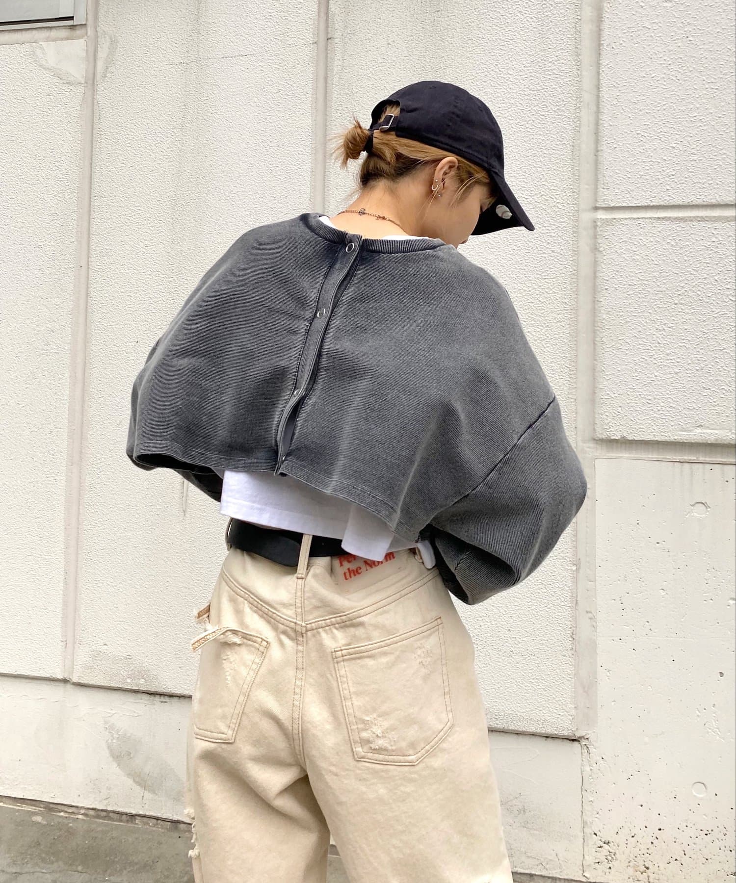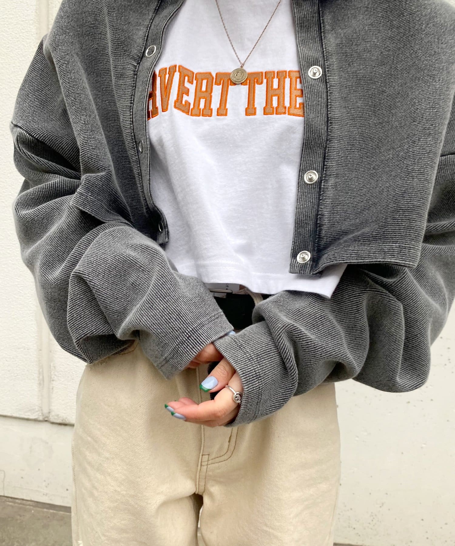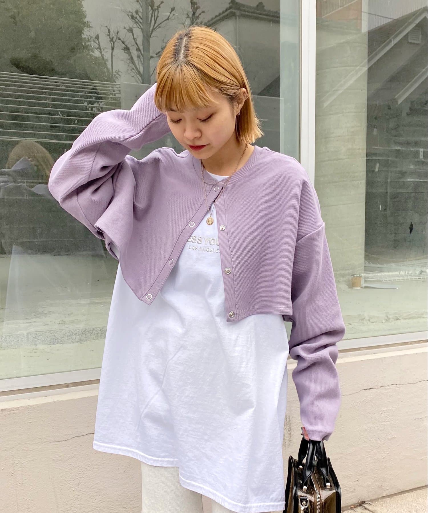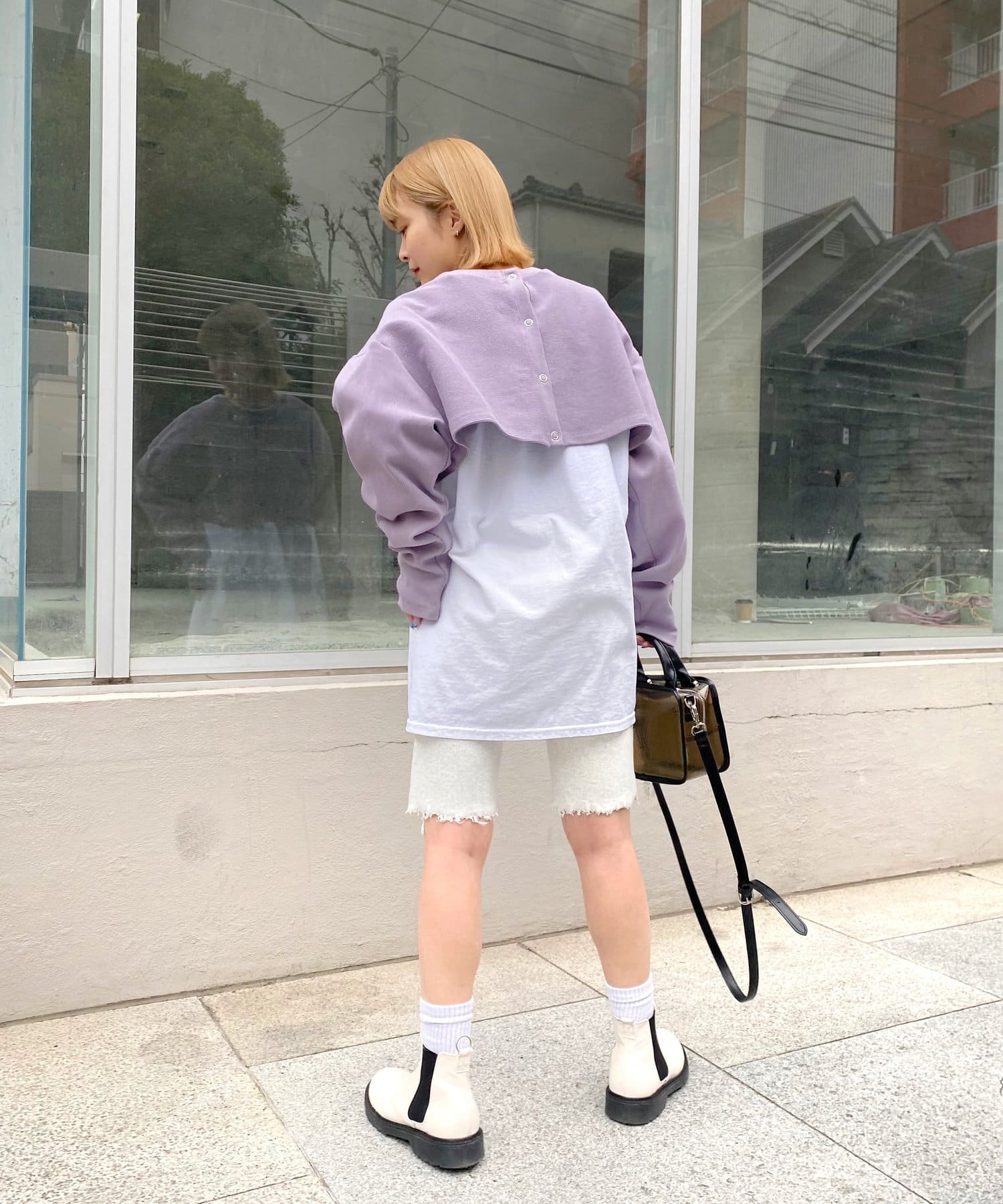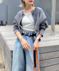 ・短丈なので、レイヤードスタイルにも◎。シャツやロンT、Tシャツなど好きな組み合わせで是非。