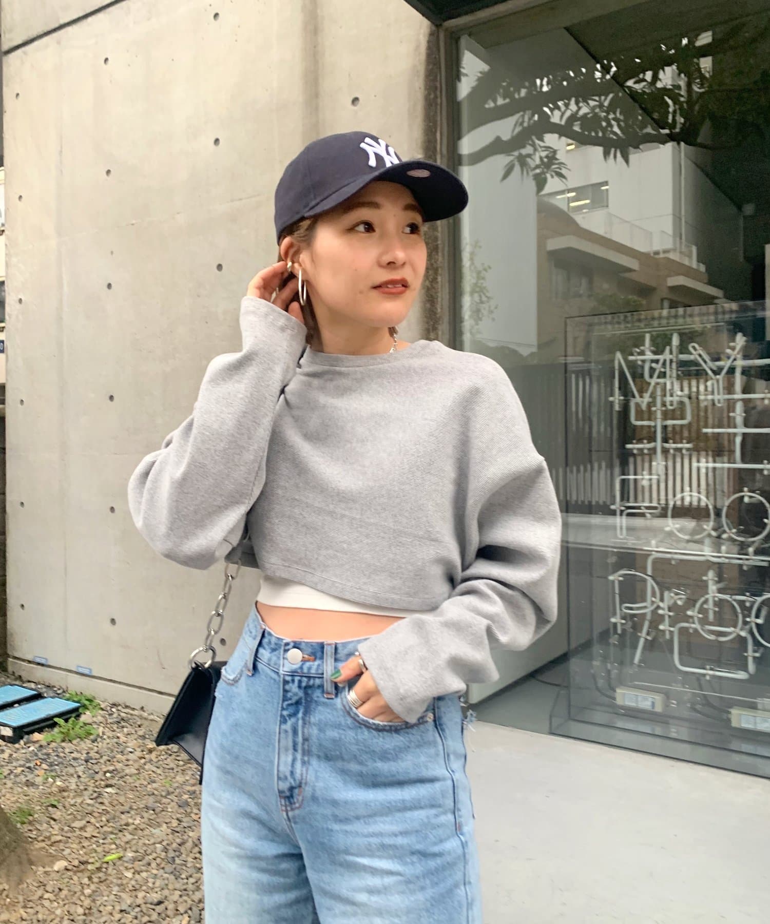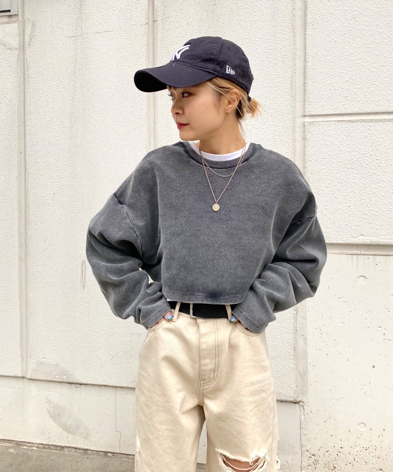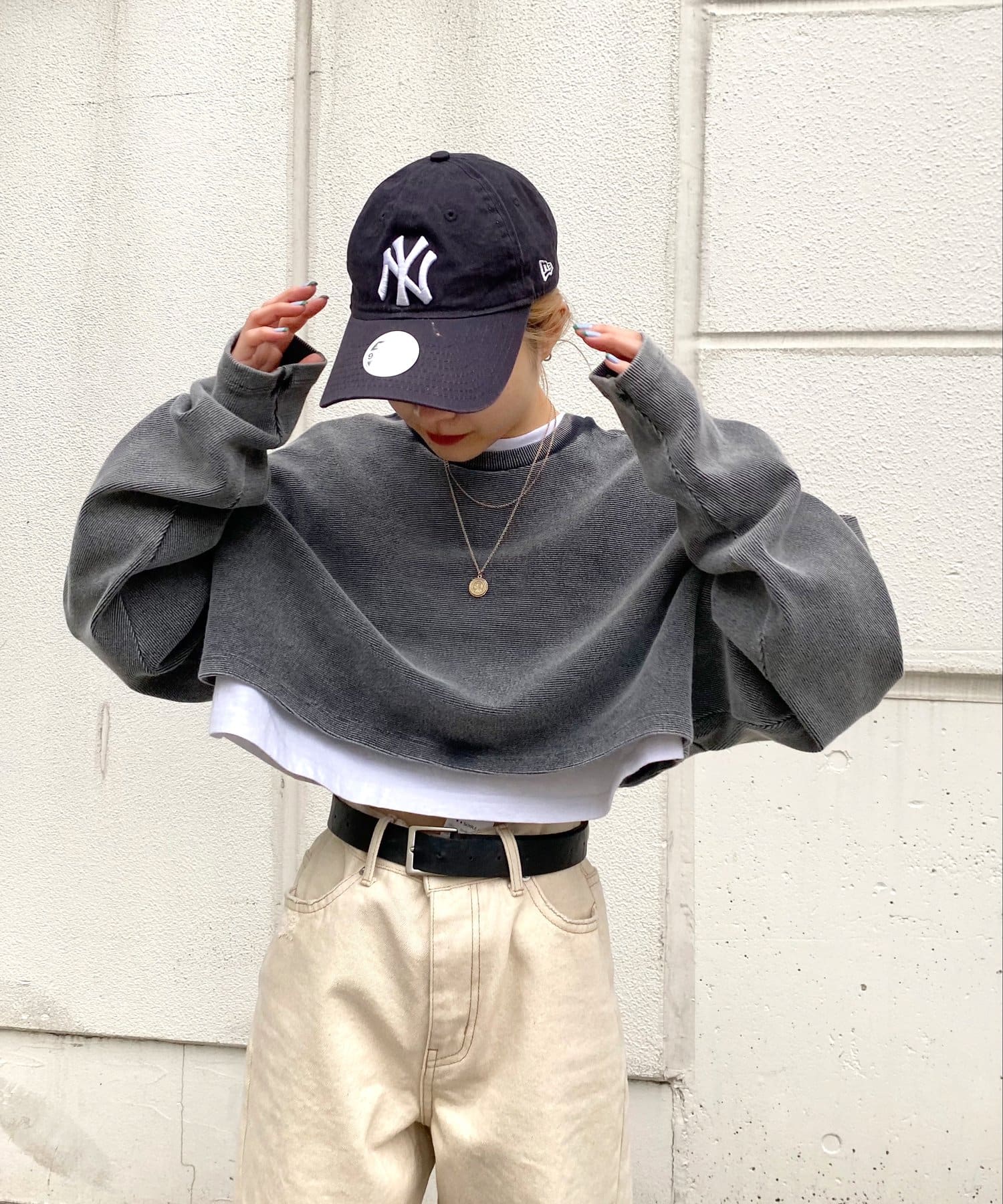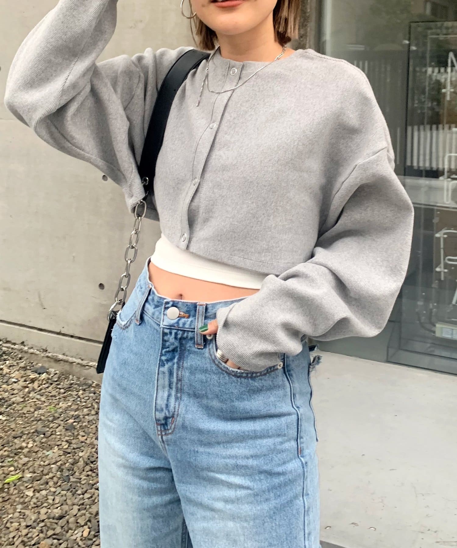 ・短丈なので、レイヤードスタイルにも◎。シャツやロンT、Tシャツなど好きな組み合わせで是非。