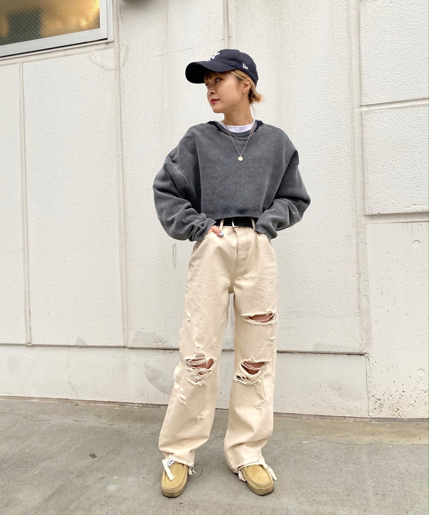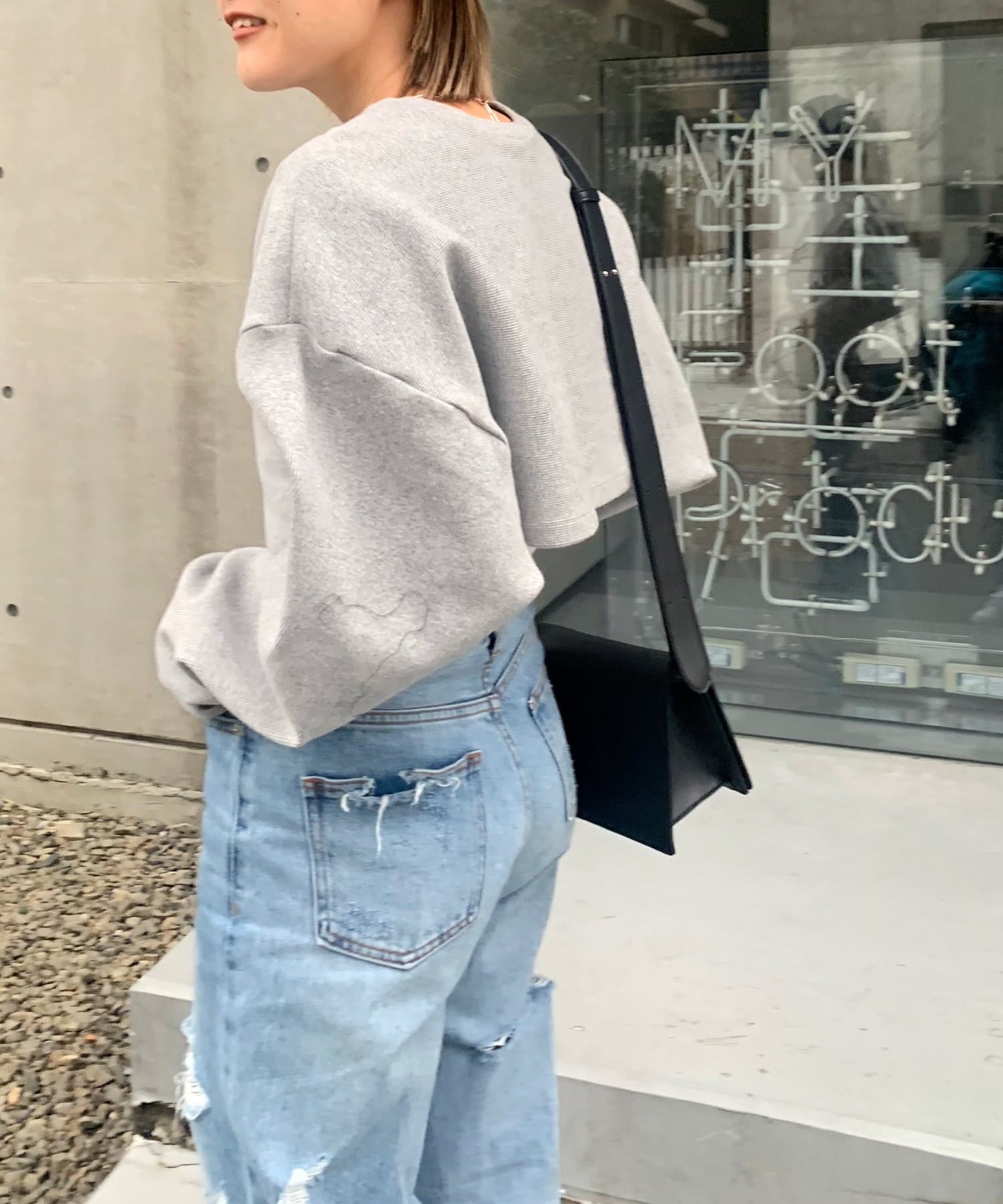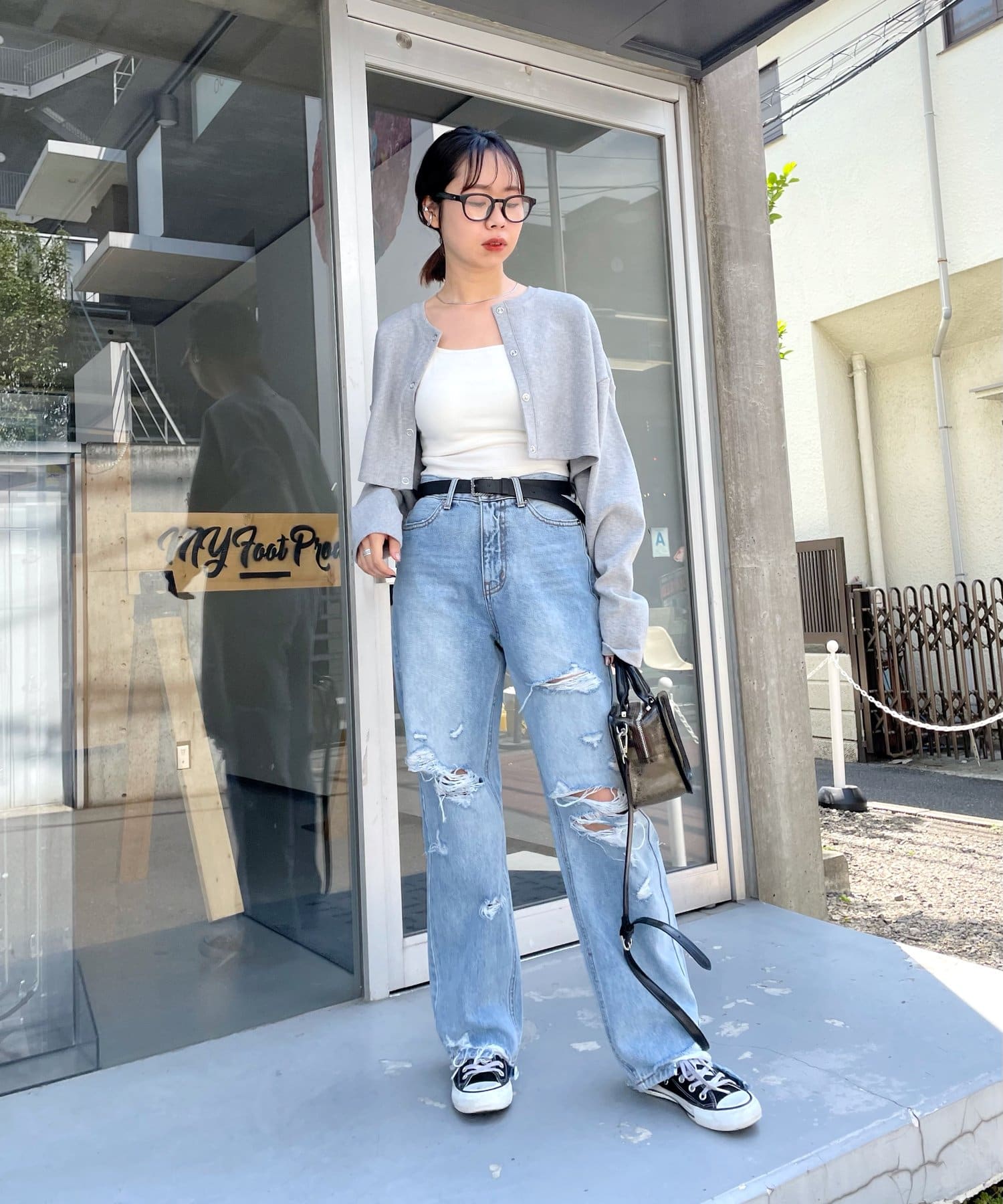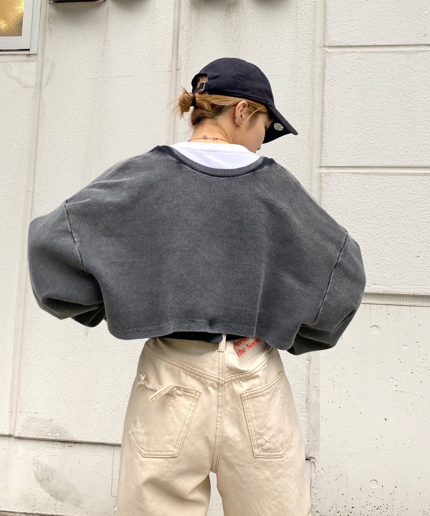 ・短丈なので、レイヤードスタイルにも◎。シャツやロンT、Tシャツなど好きな組み合わせで是非。