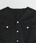 ・ノーカラーの為、スッキリした首回り。襟のあるシャツやタートルネックトップスとの合わせにも。