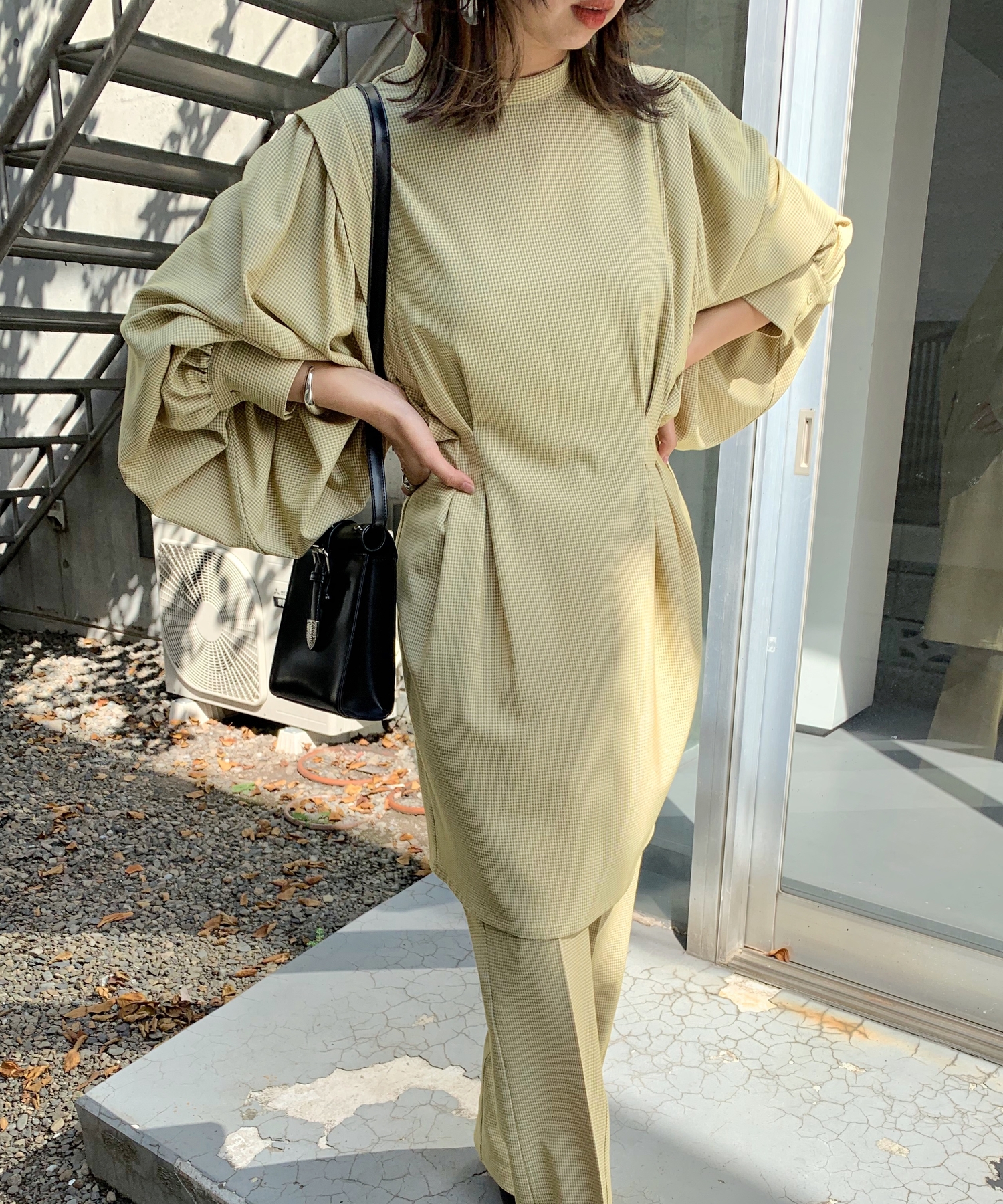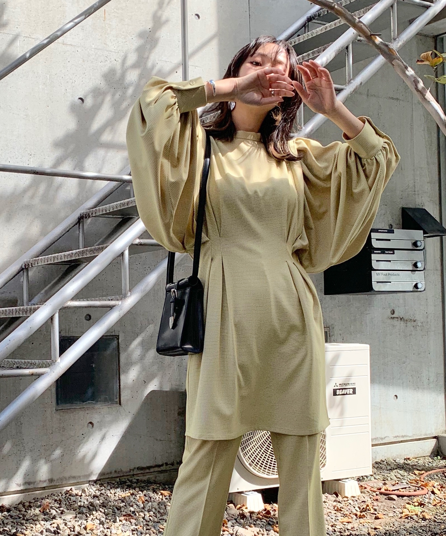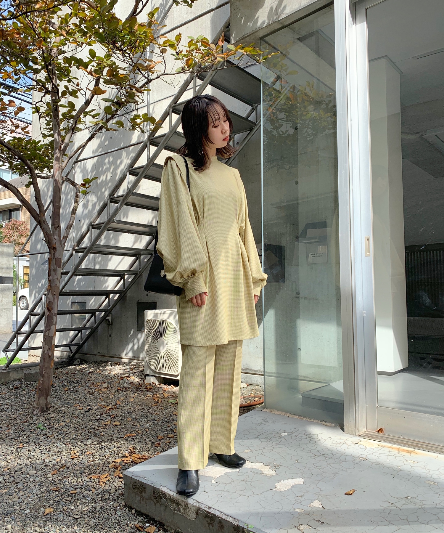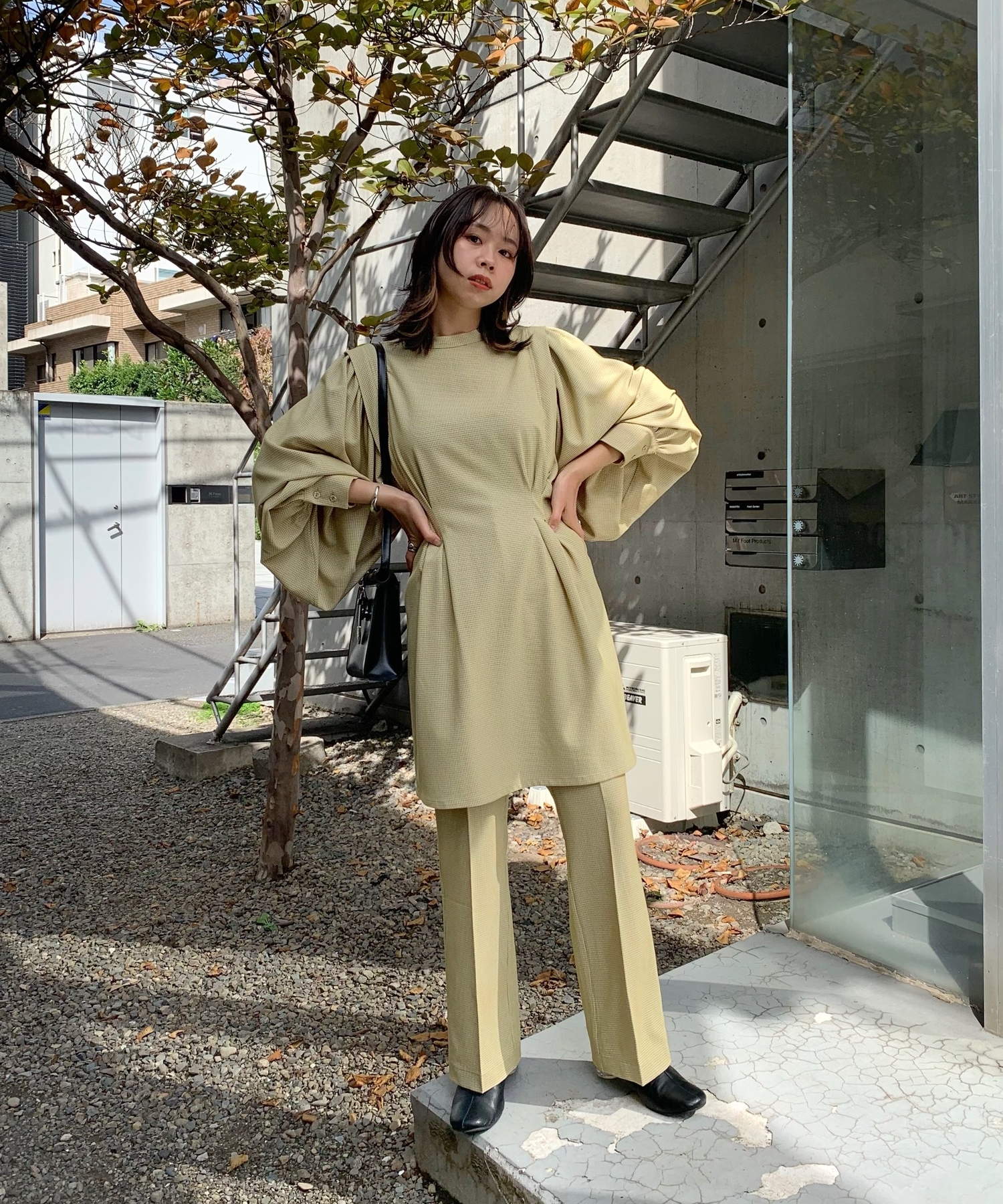 ・ウエストにもギャザーが入っていて、メリハリのあるスタイリングになります。
