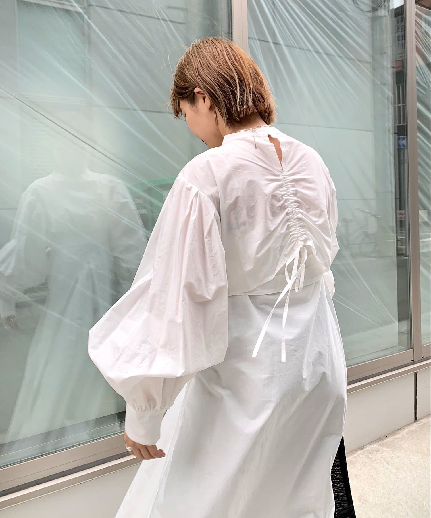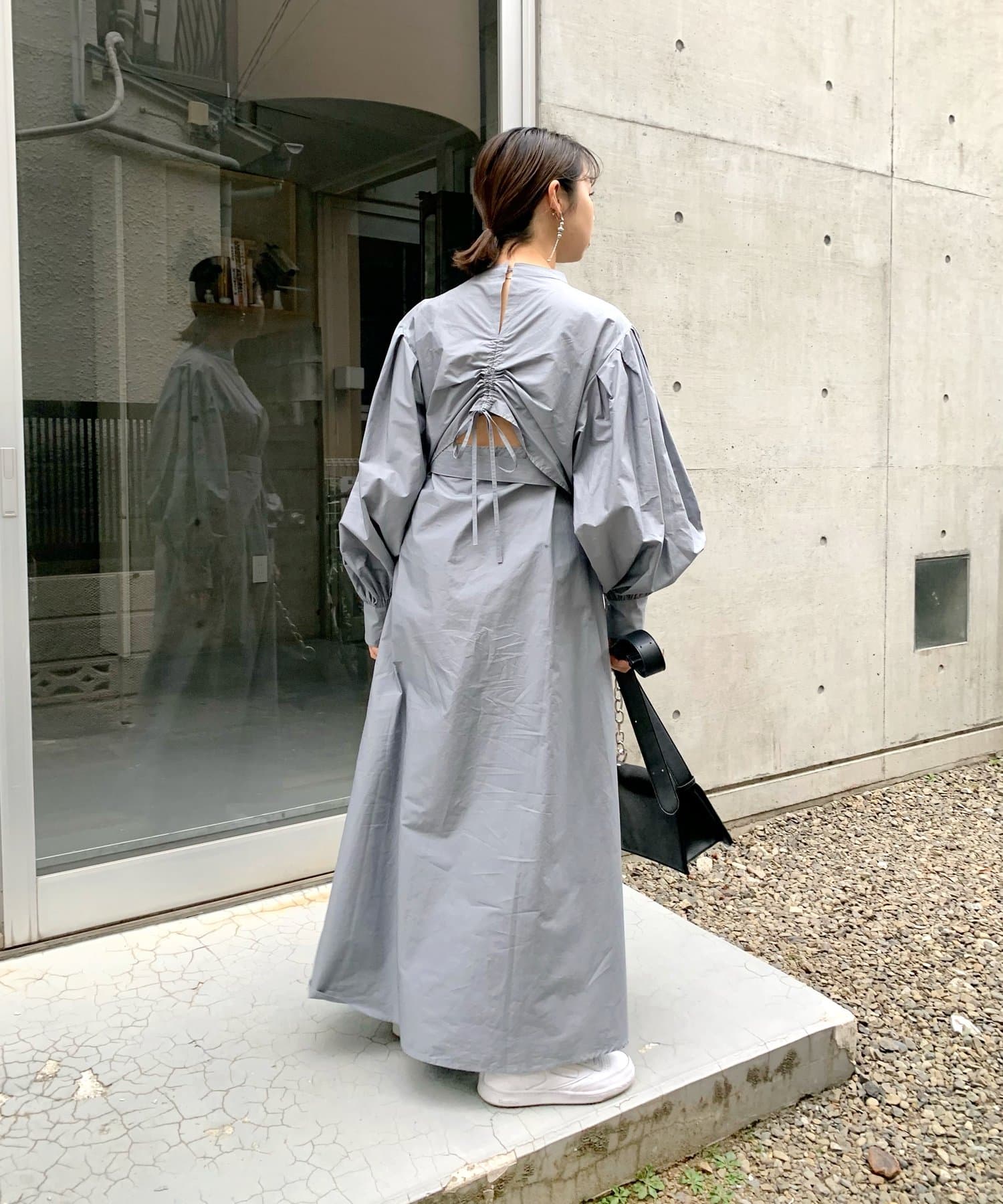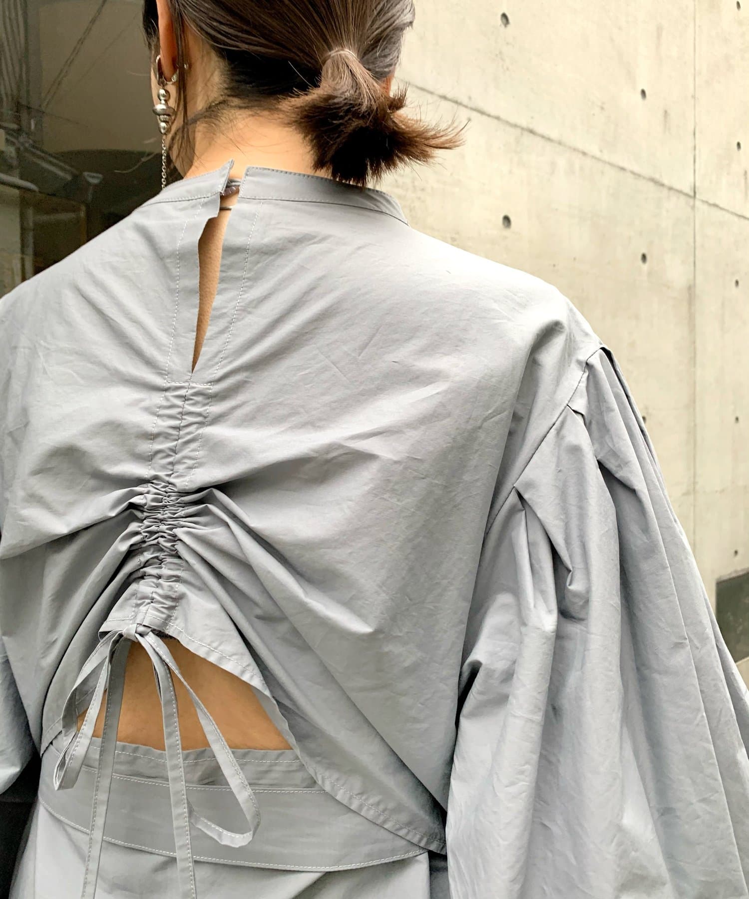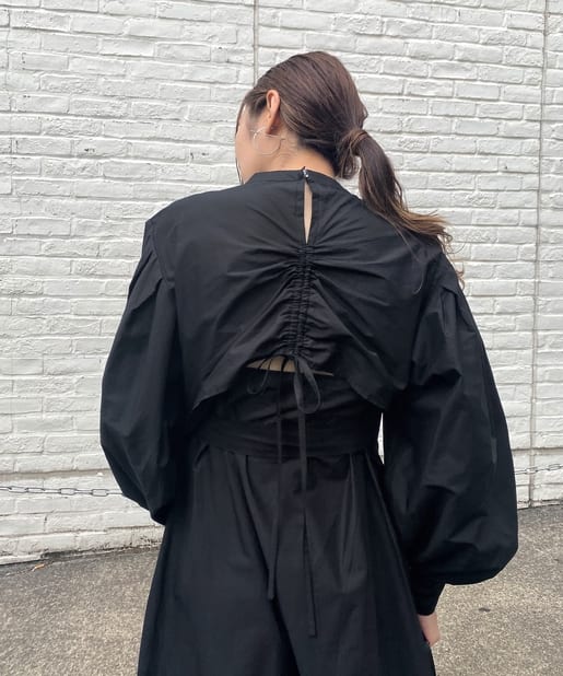 ・上品な印象のボリュームスリーブ×パンチの効いたバックデザインで、可愛さとかっこよさの欲張りコーデが可能。