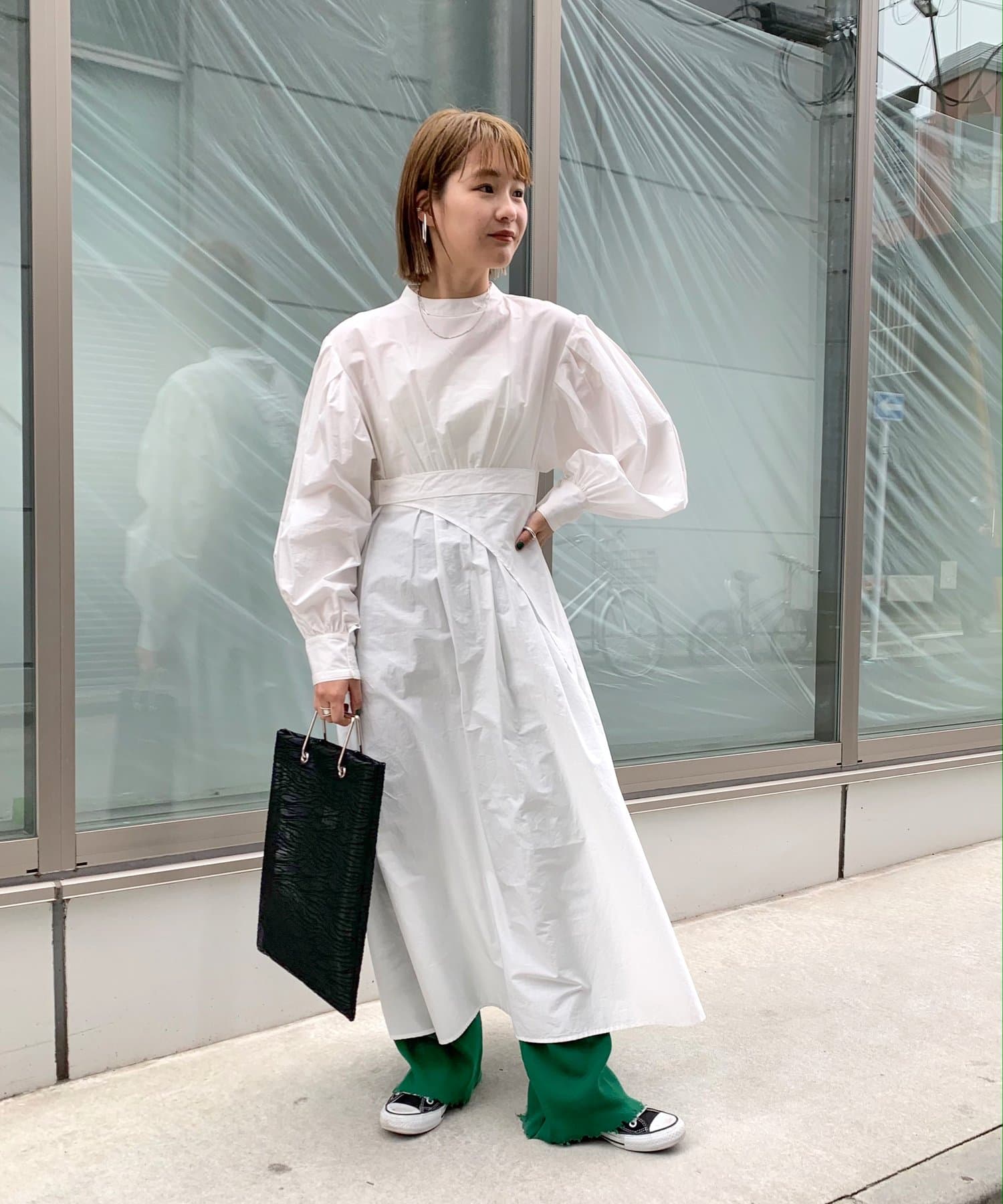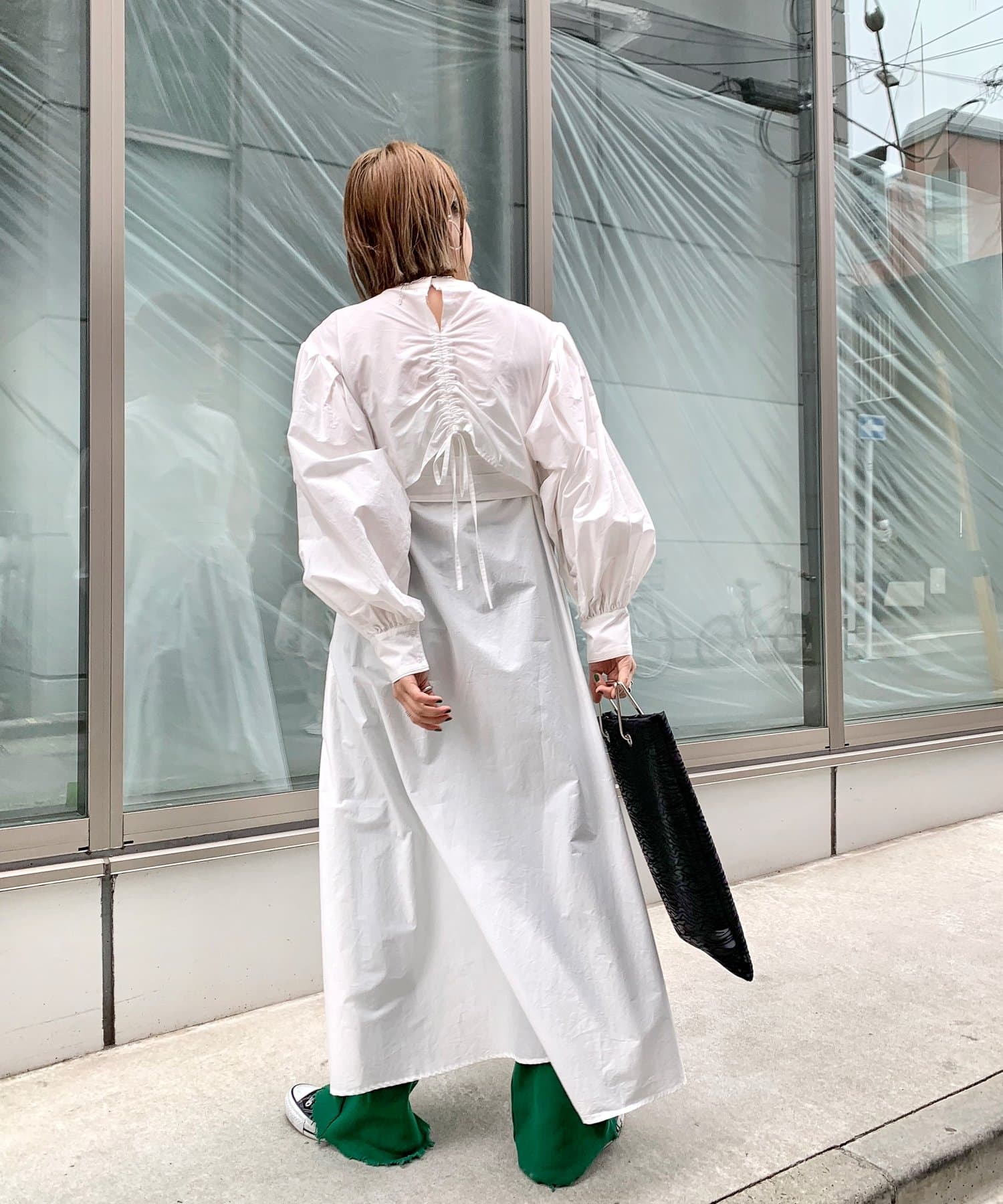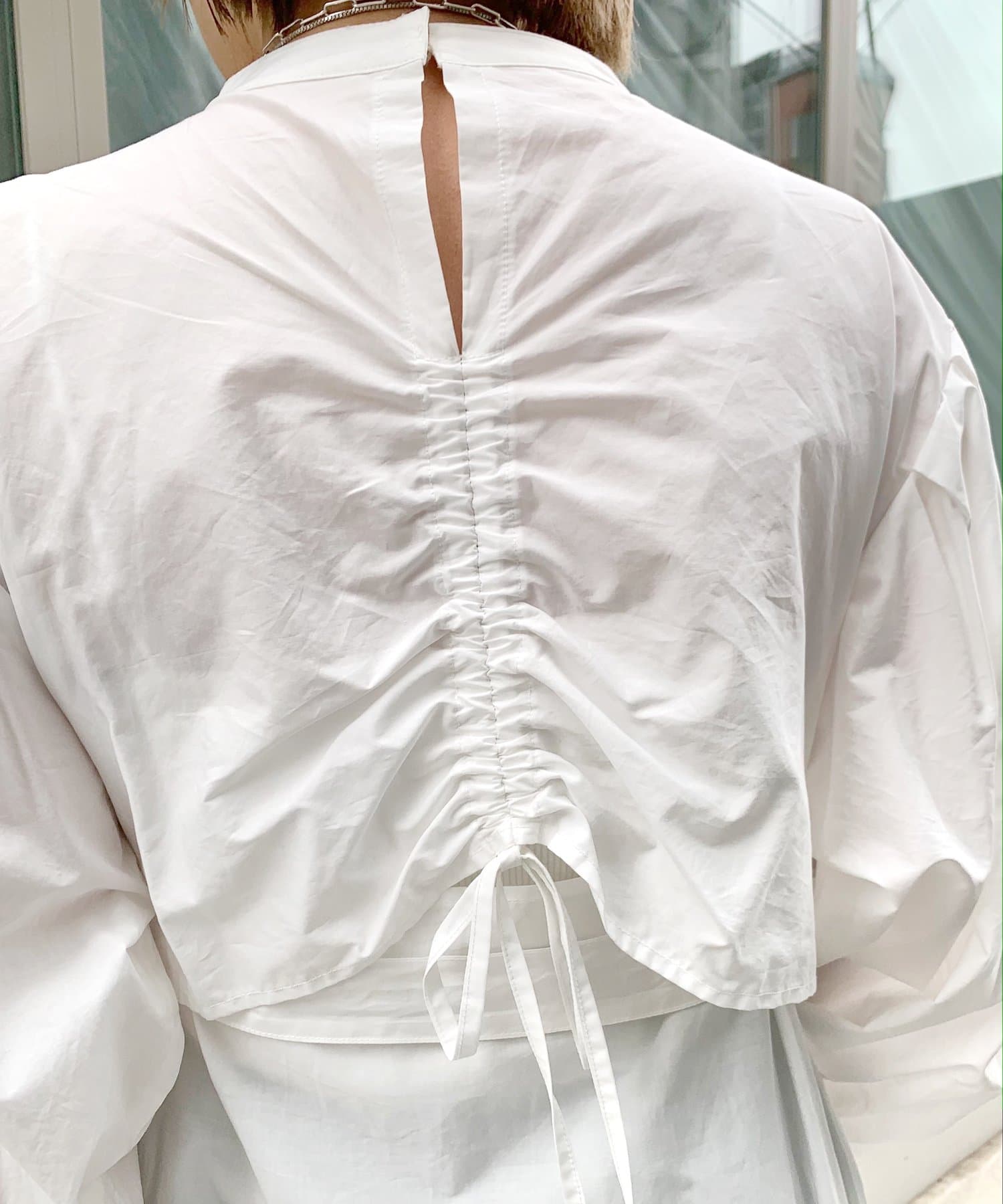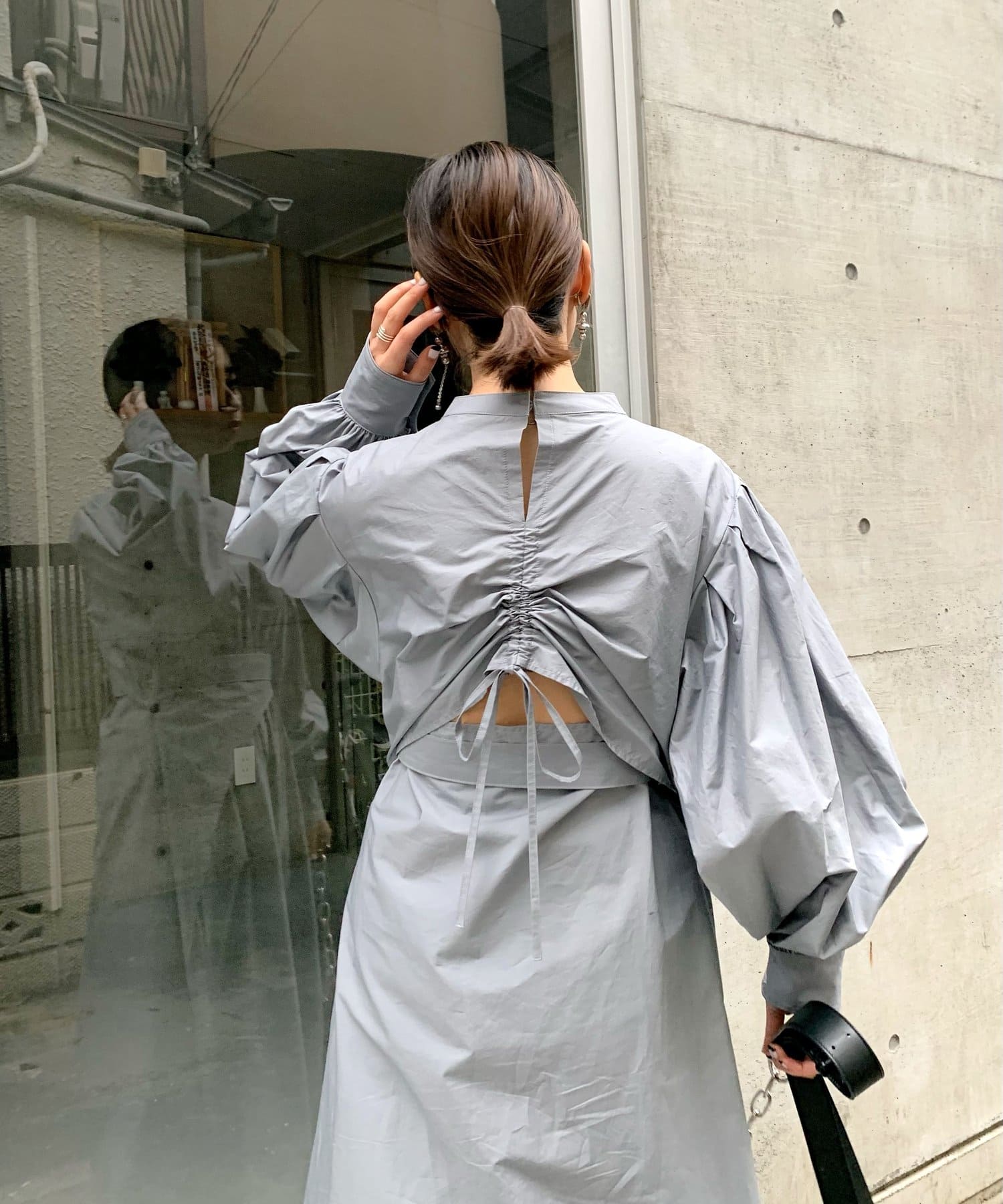 ・上品な印象のボリュームスリーブ×パンチの効いたバックデザインで、可愛さとかっこよさの欲張りコーデが可能。