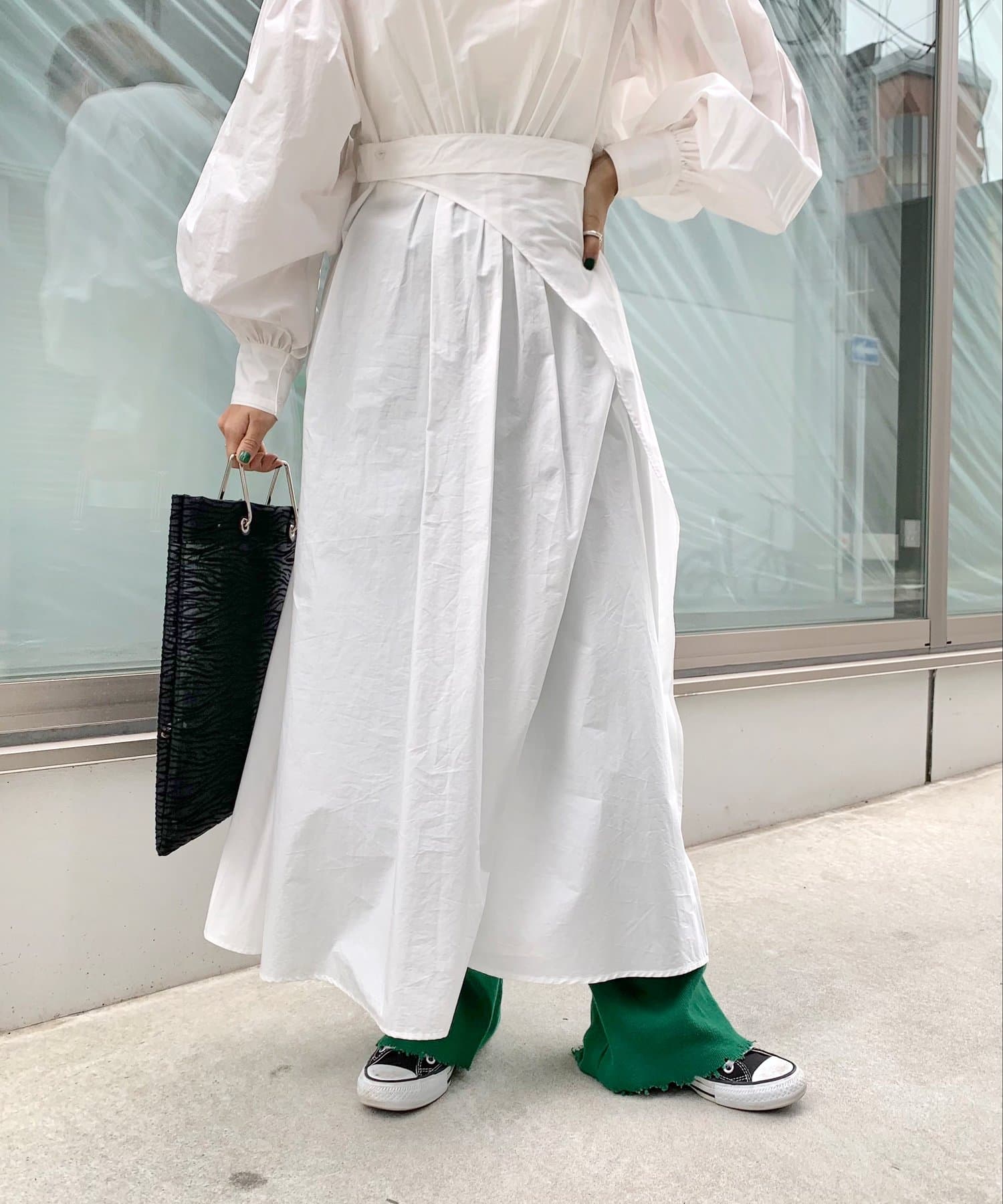 ・ウエスト部分のベルトによって、メリハリのあるスタイルに。