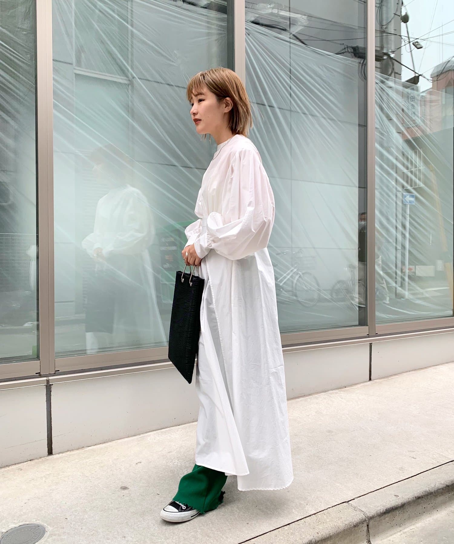 ・ボリュームのある袖ですが、アウターと合わせても心配無用!締め付け感なく着用できます。