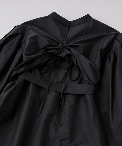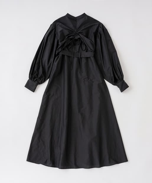 ・バックデザインは程よい肌見せが出来るよう、紐を絞ったり、垂らしたり、調節可。