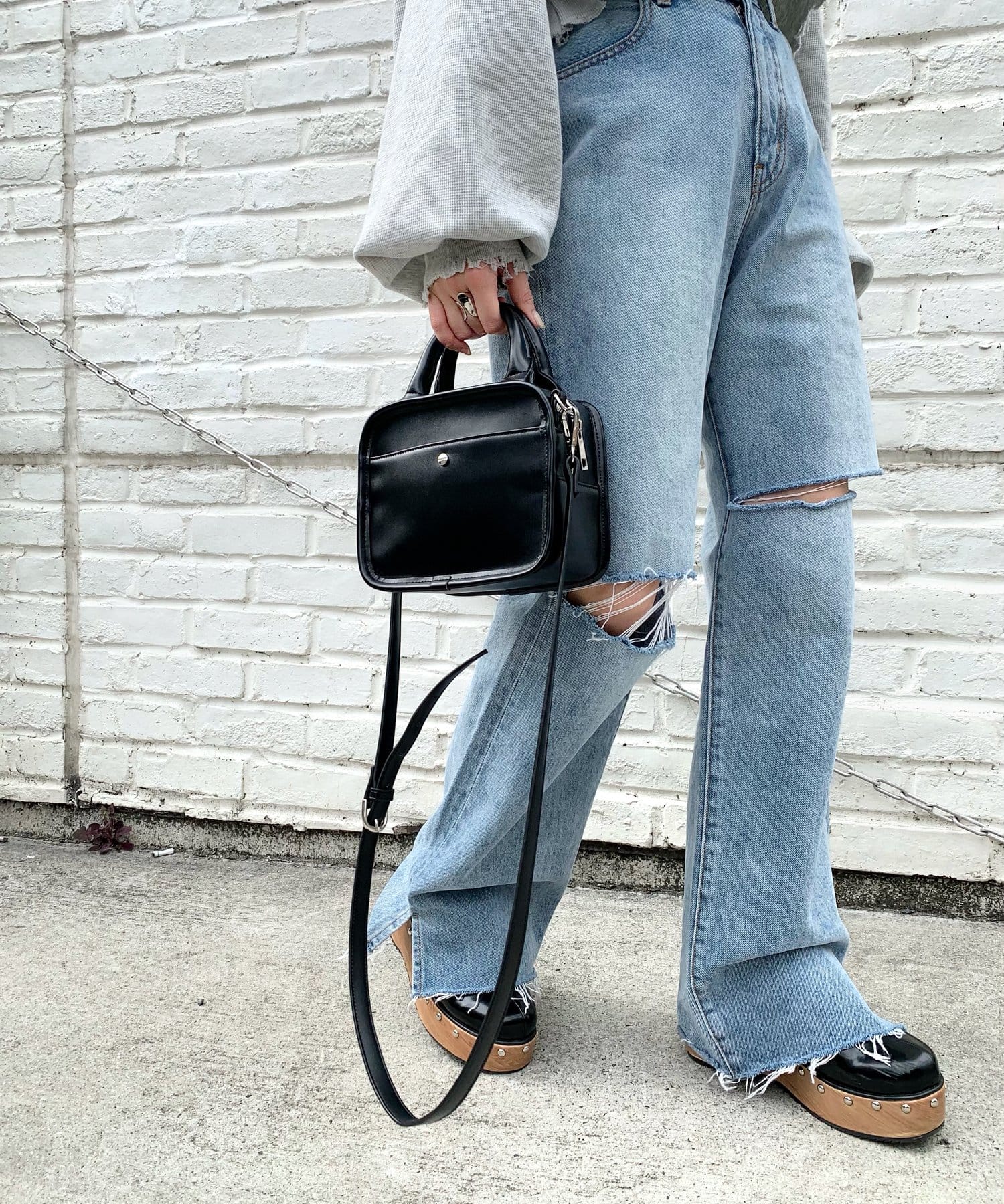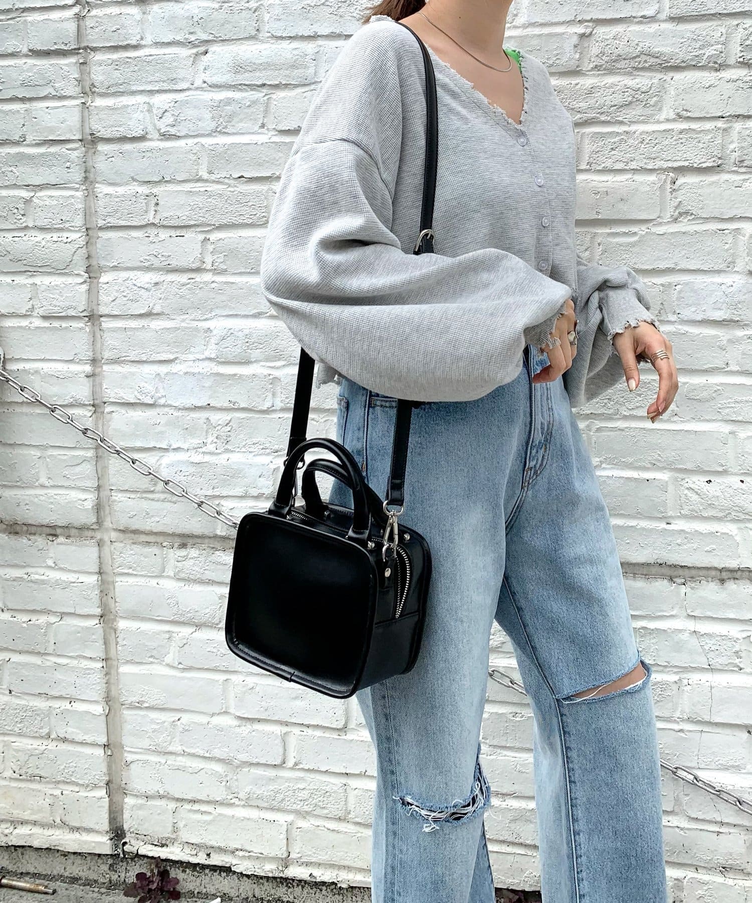 コロンとした見た目以上に収納力◎!スクエア型のミニショルダートートバッグ