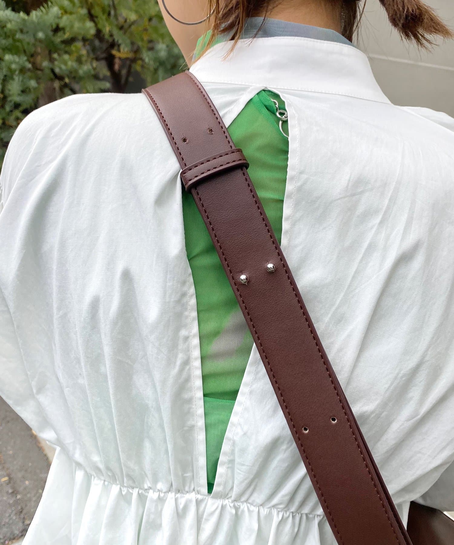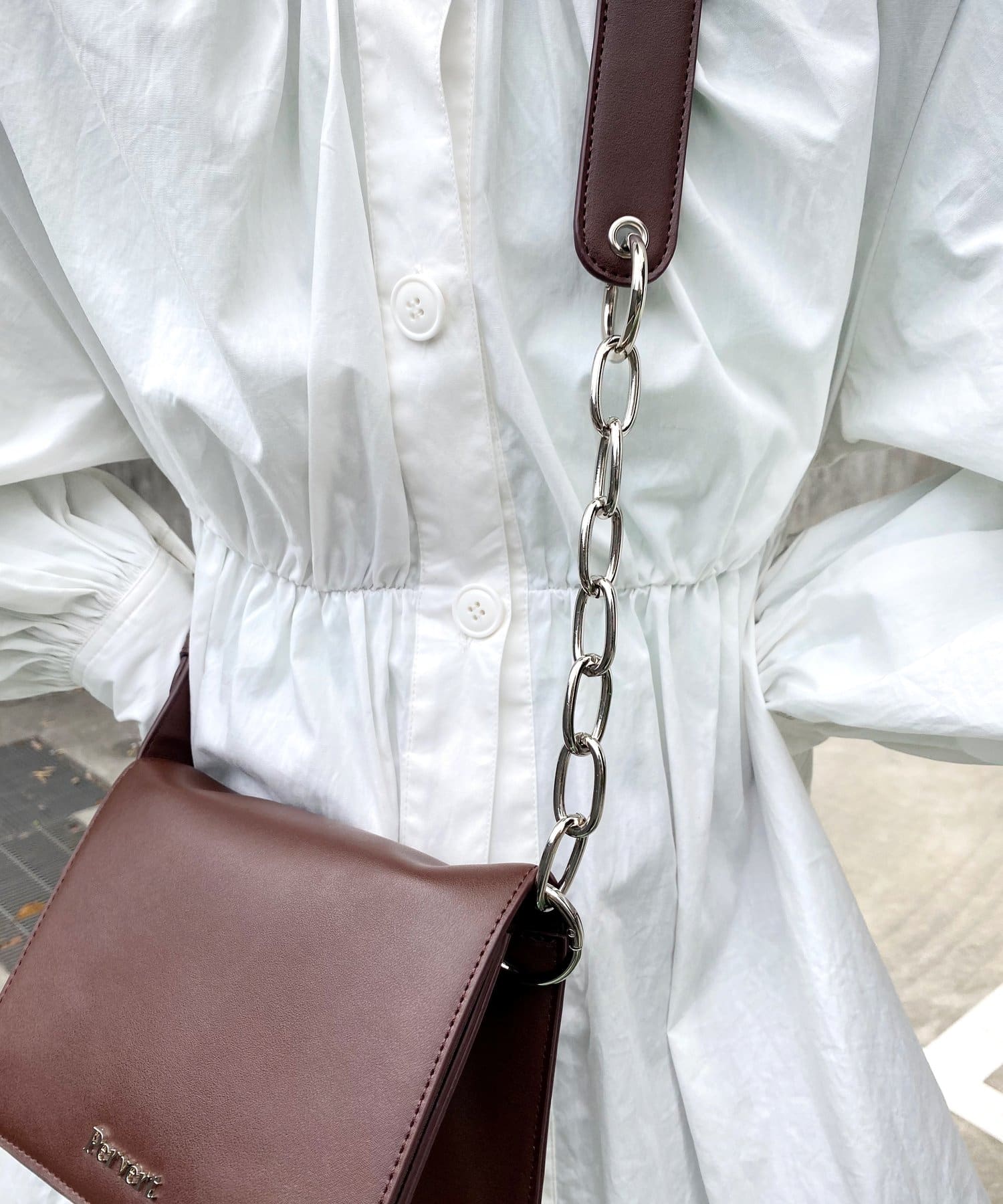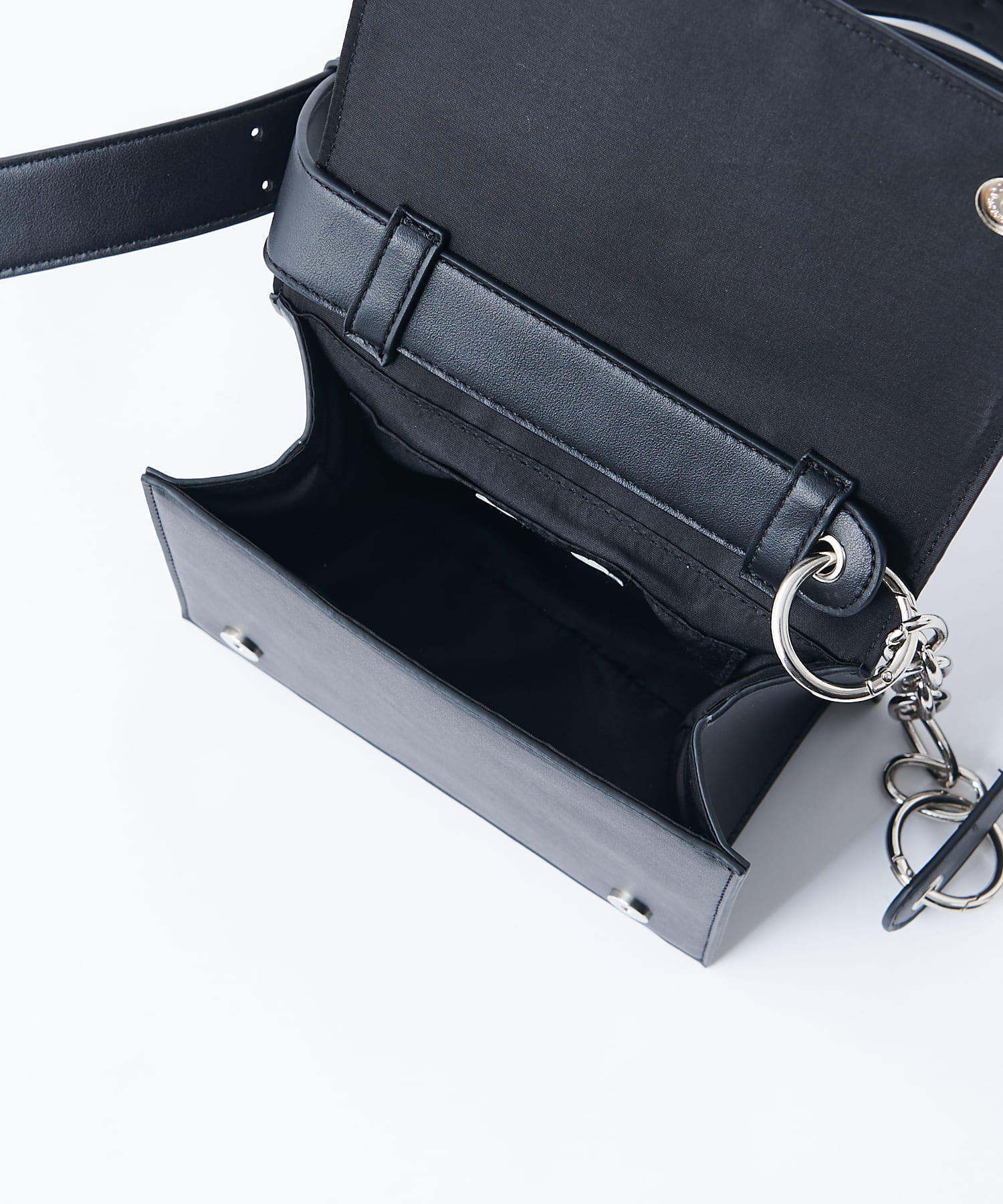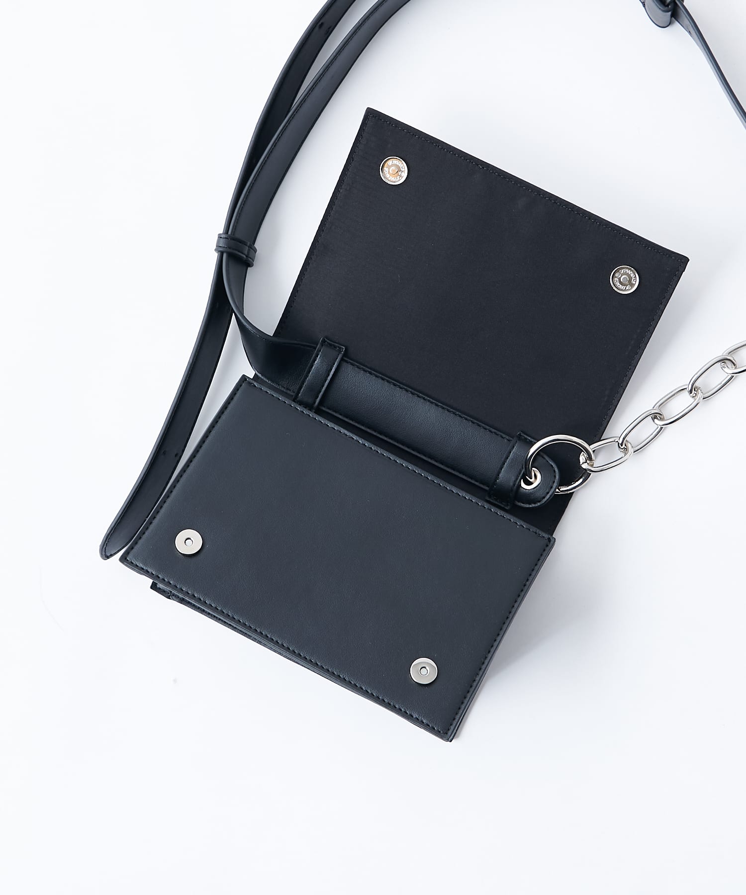・バッグベルトは合皮とチェーンの組み合わせ。左右によって変わる雰囲気なので、その日の気分で楽しめます。