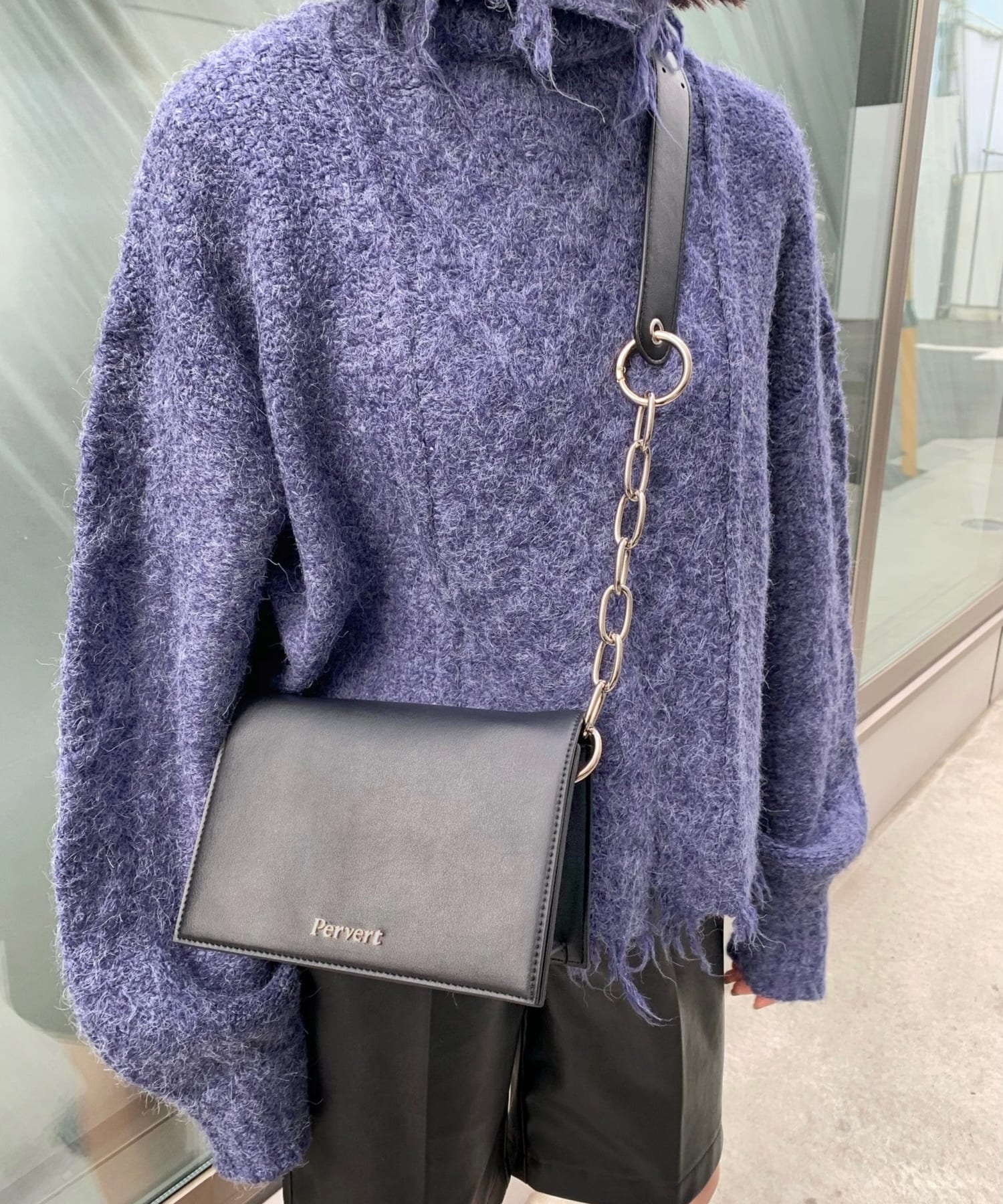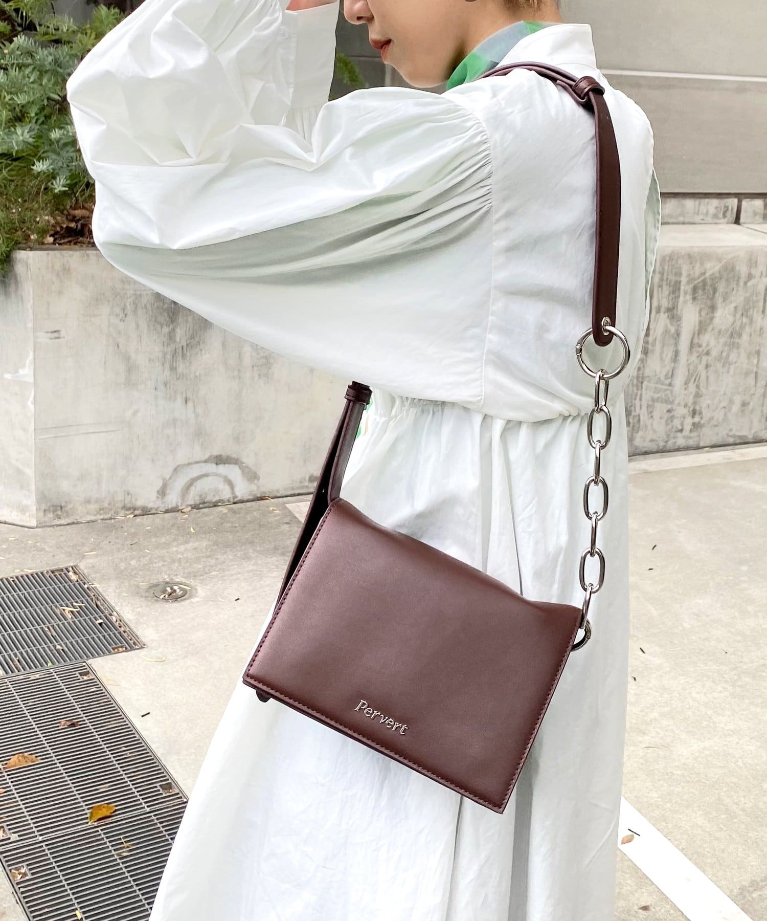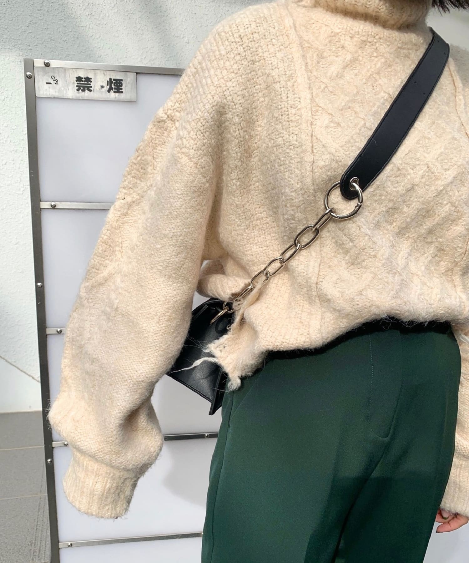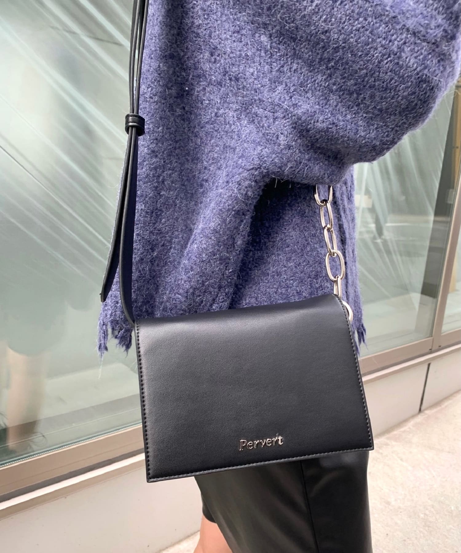 ・バッグベルトは合皮とチェーンの組み合わせ。左右によって変わる雰囲気なので、その日の気分で楽しめます。