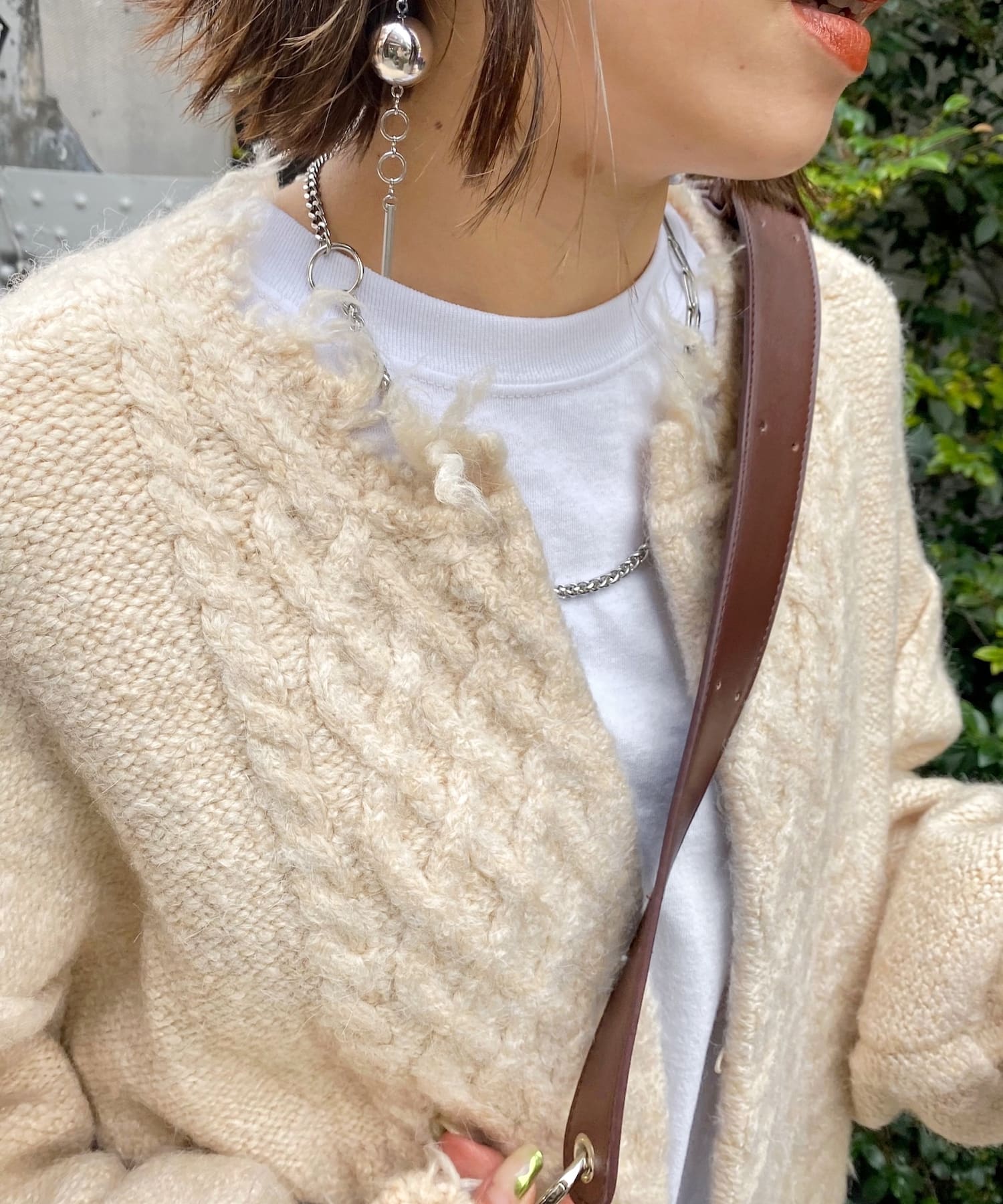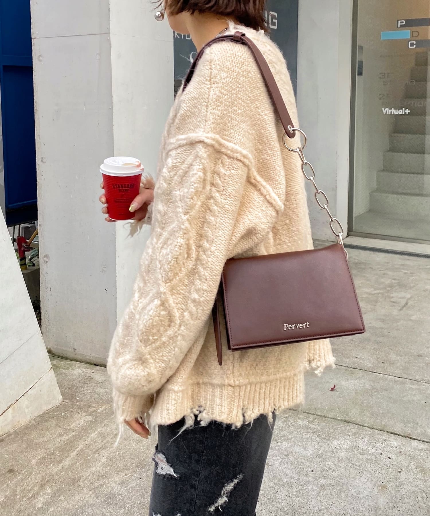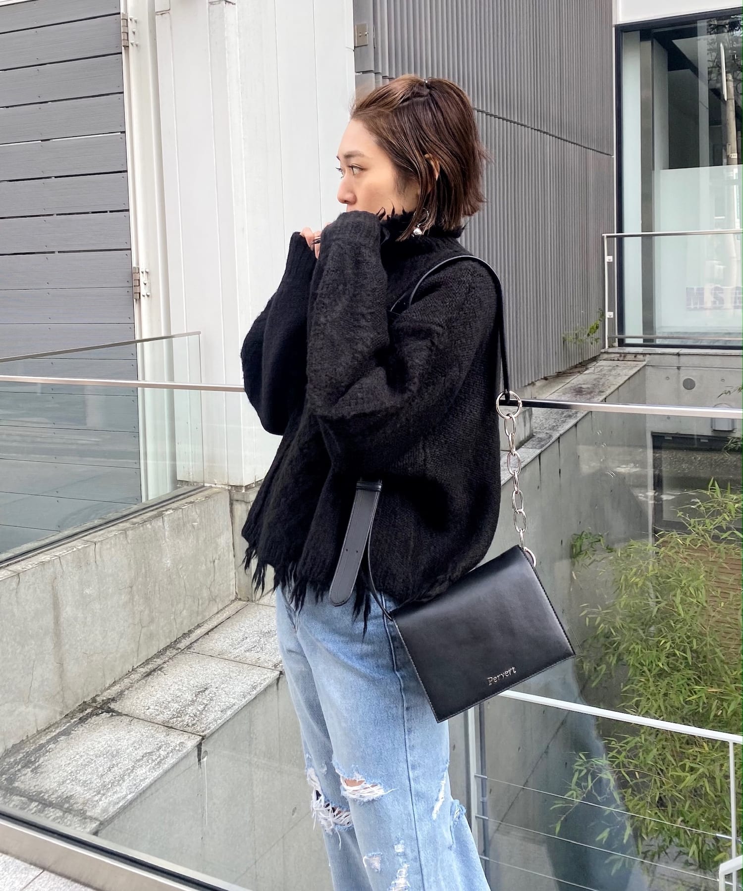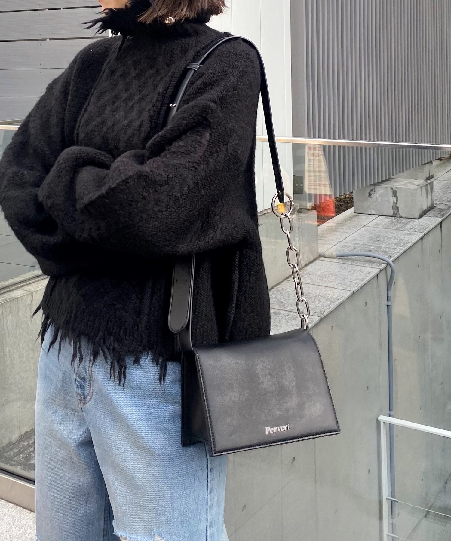 ・バッグベルトは合皮とチェーンの組み合わせ。左右によって変わる雰囲気なので、その日の気分で楽しめます。