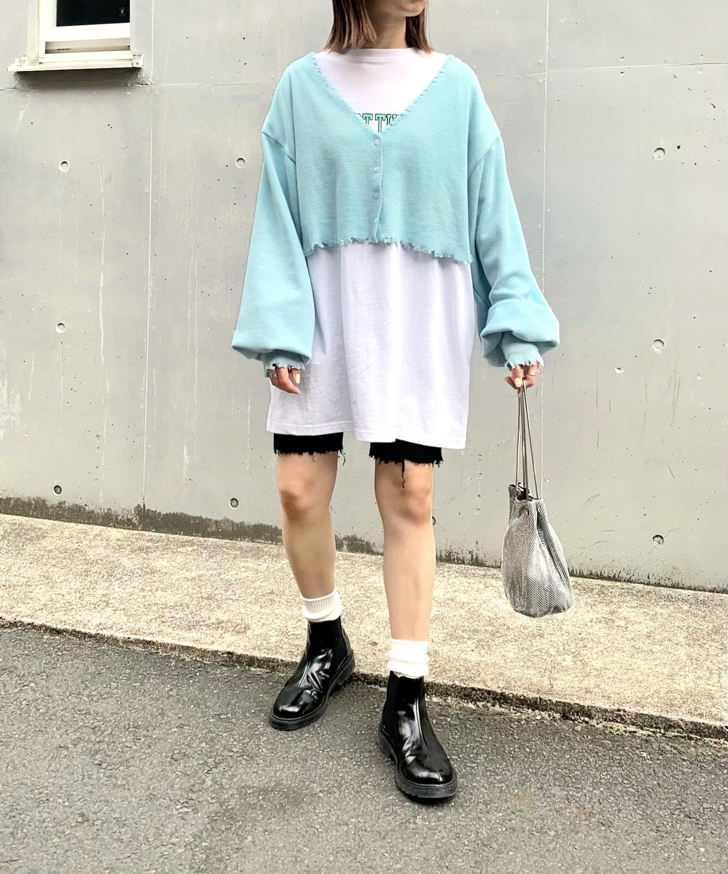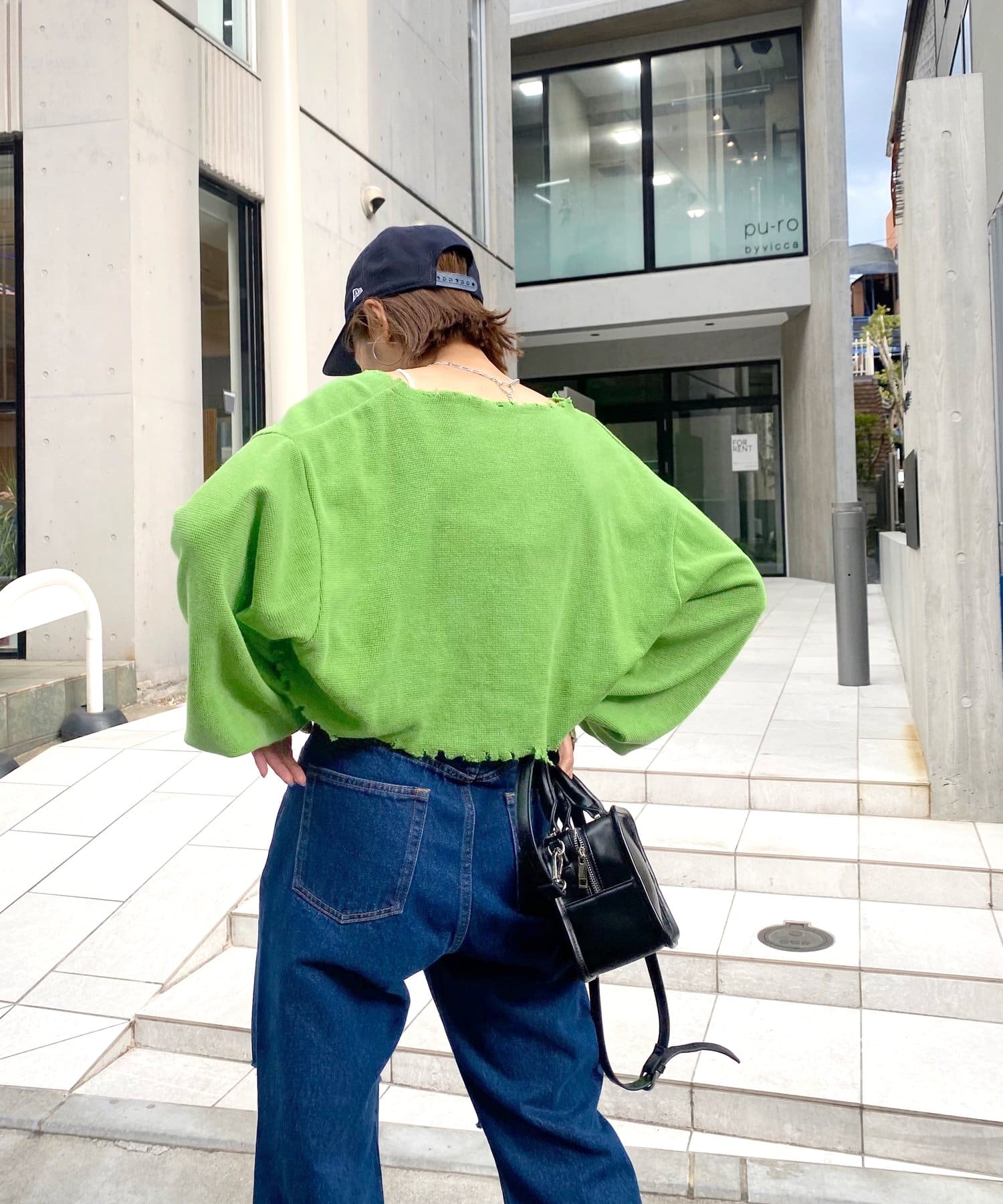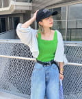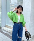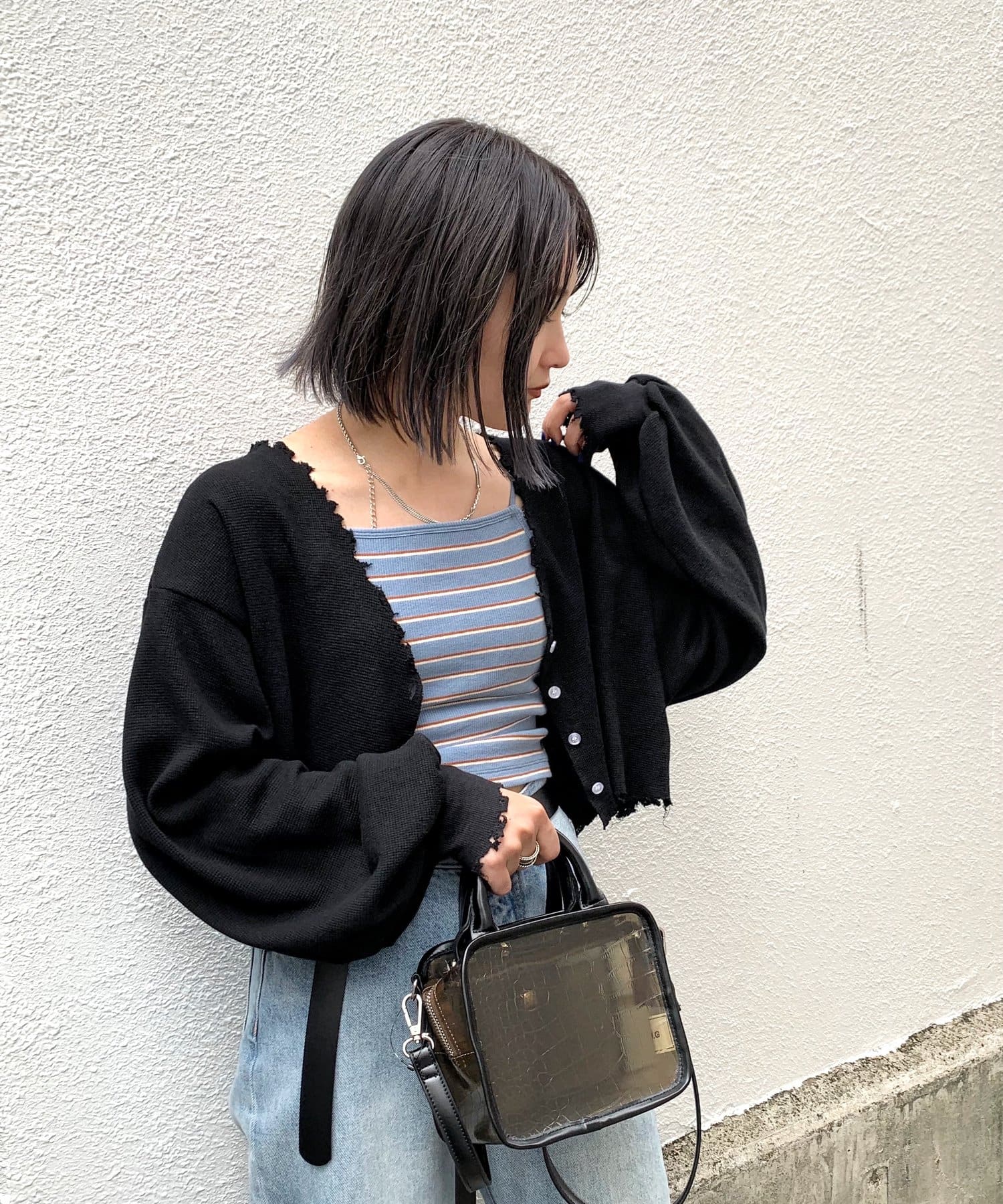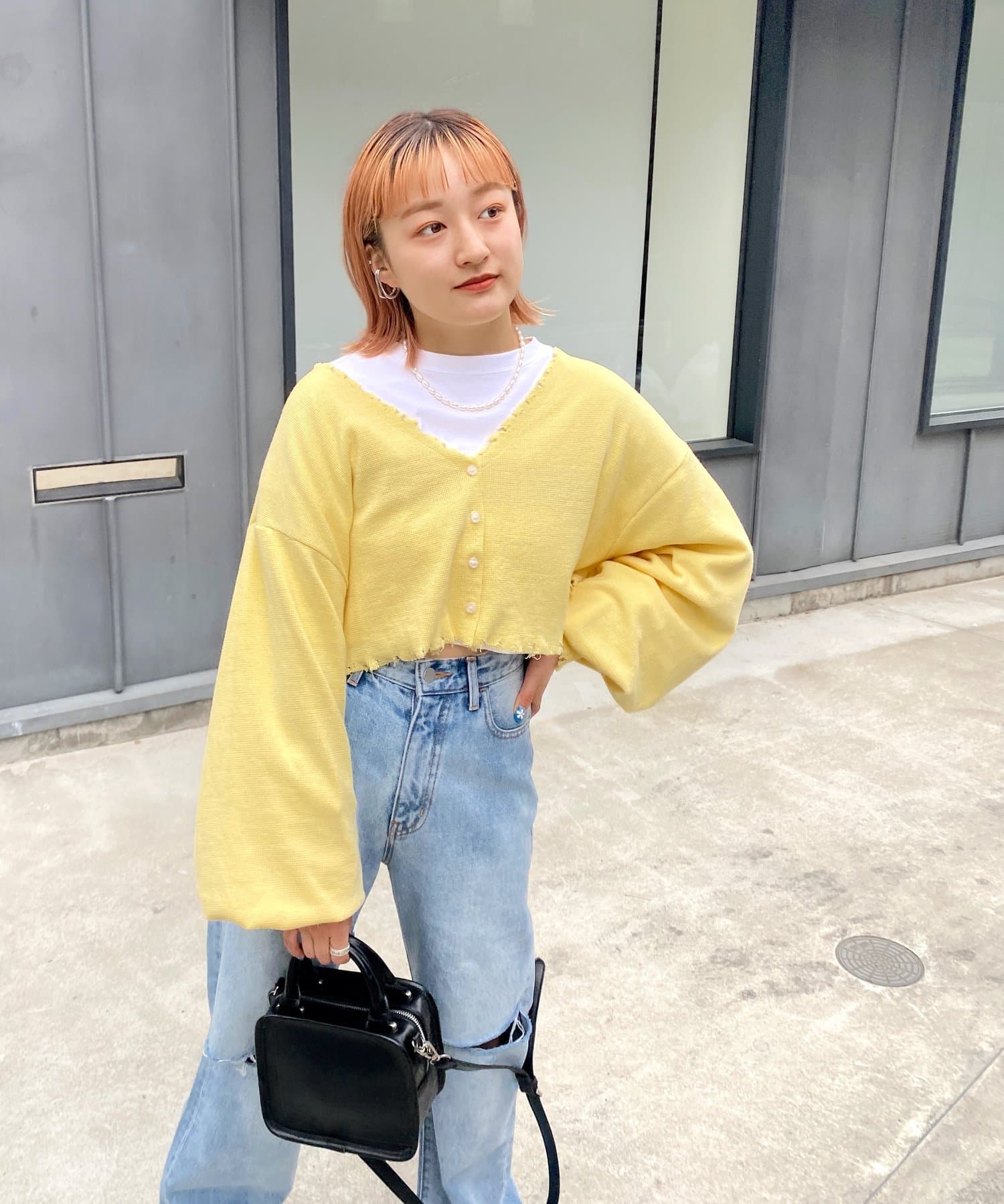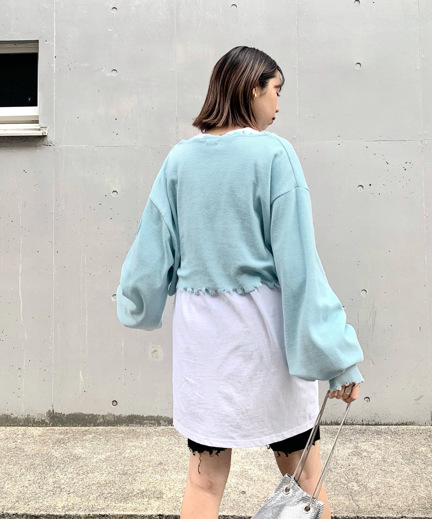 ・短丈の為、レイヤードスタイルも◎。キャミソールやタンクトップは勿論、袖のボリュームによってロンTや半袖Tシャツとの相性もGOOD!