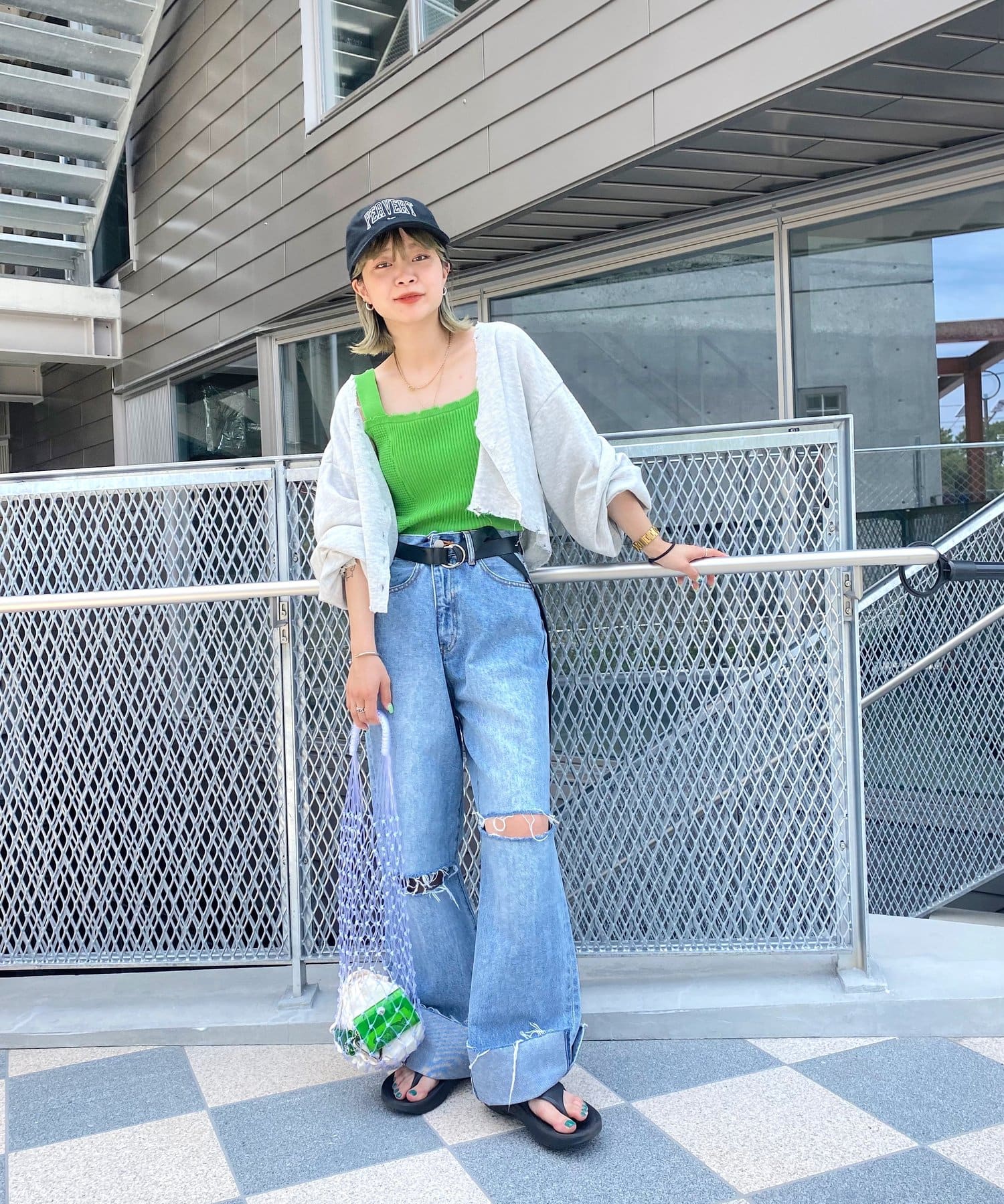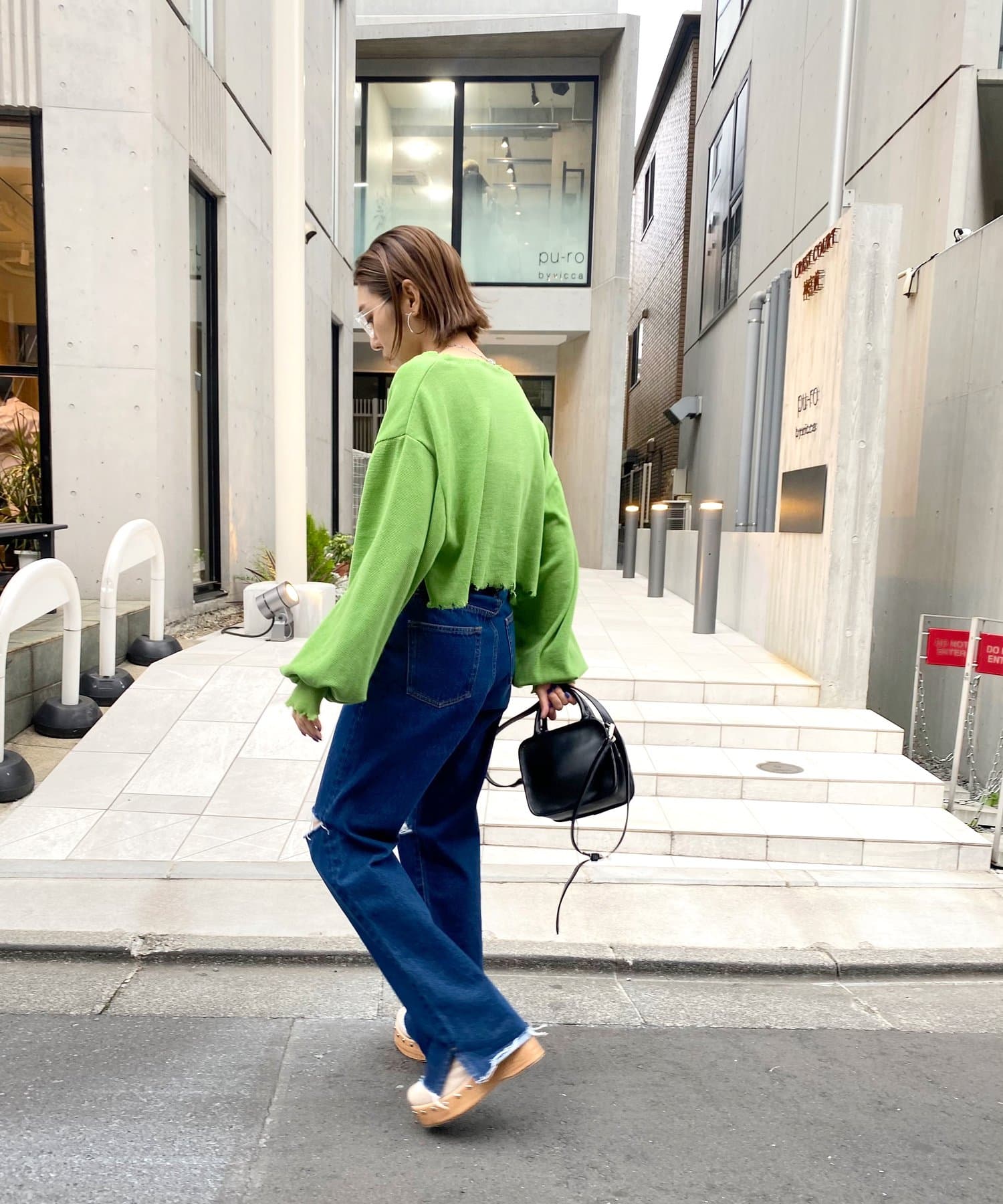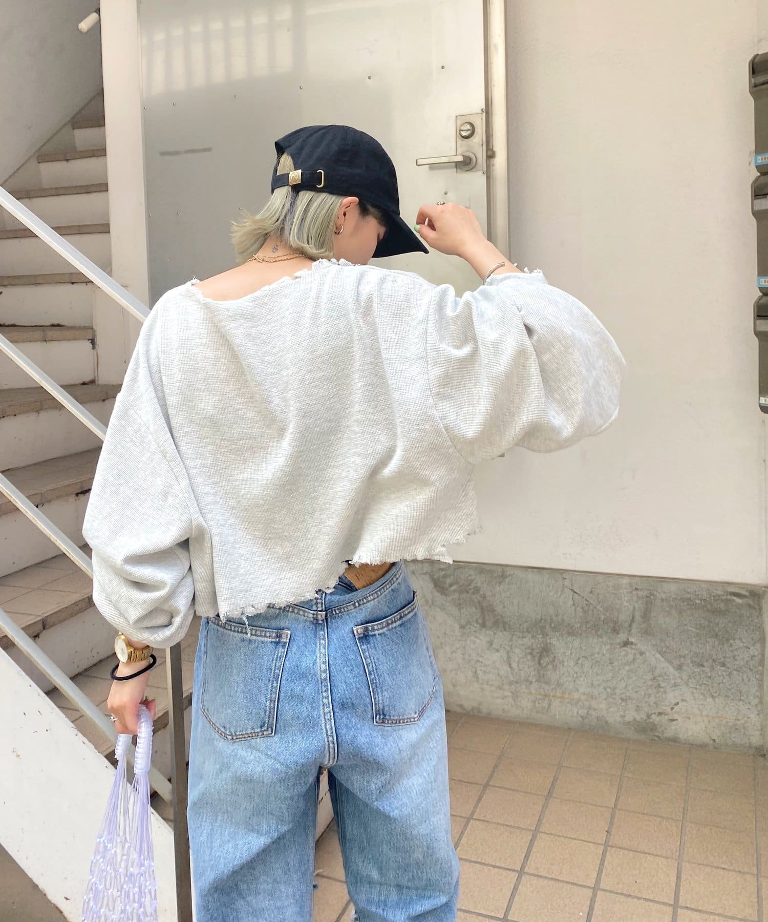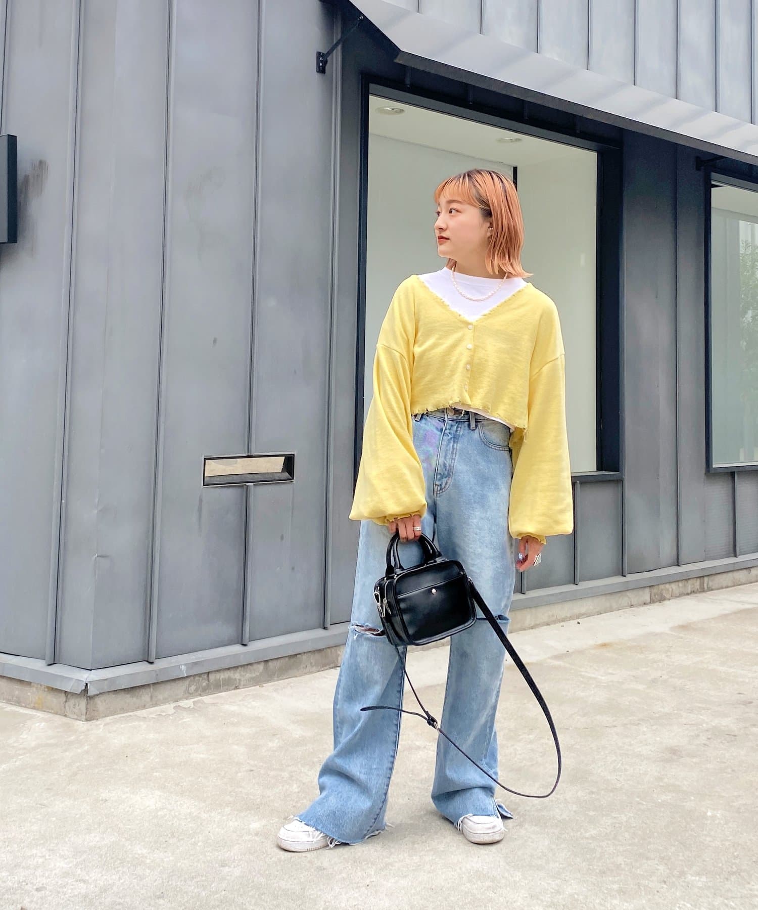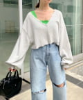 ・短丈の為、レイヤードスタイルも◎。キャミソールやタンクトップは勿論、袖のボリュームによってロンTや半袖Tシャツとの相性もGOOD!
