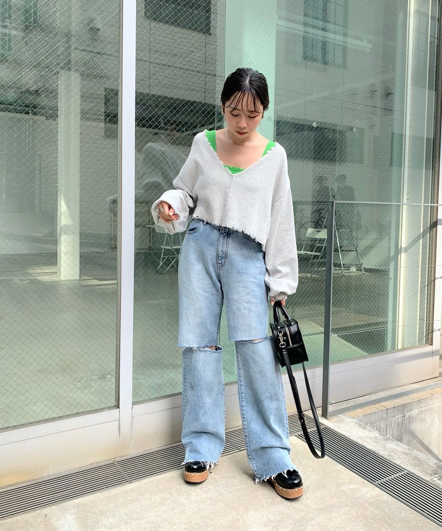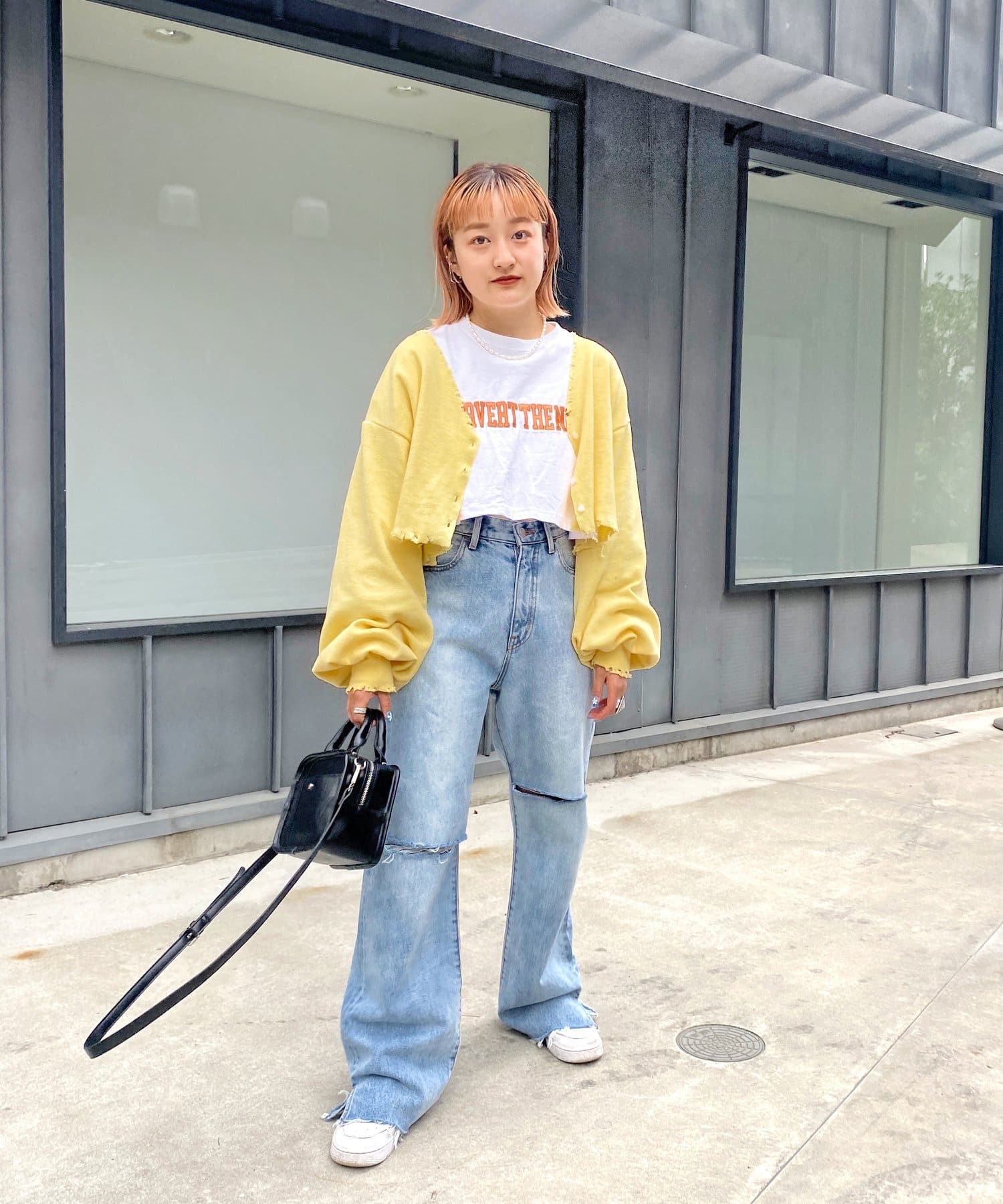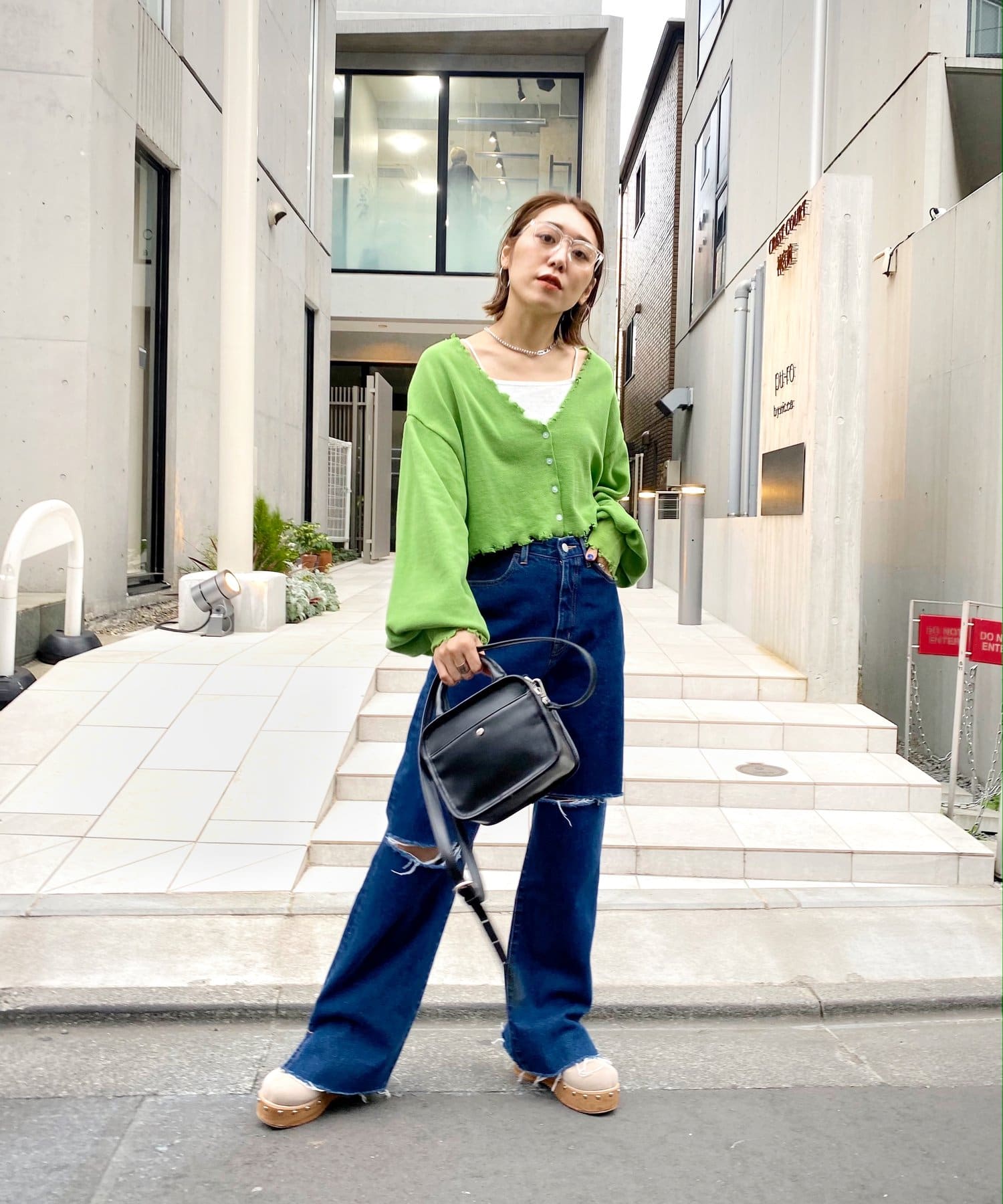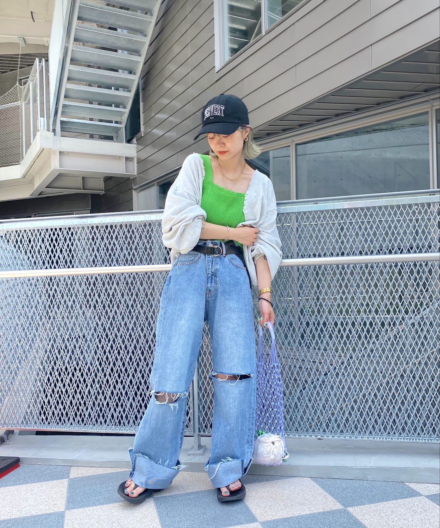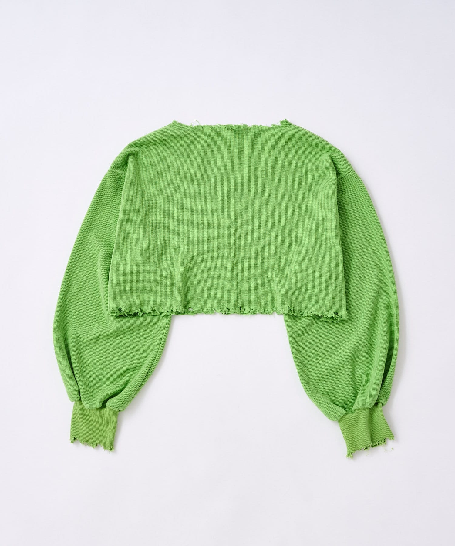 ・短丈の為、レイヤードスタイルも◎。キャミソールやタンクトップは勿論、袖のボリュームによってロンTや半袖Tシャツとの相性もGOOD!
