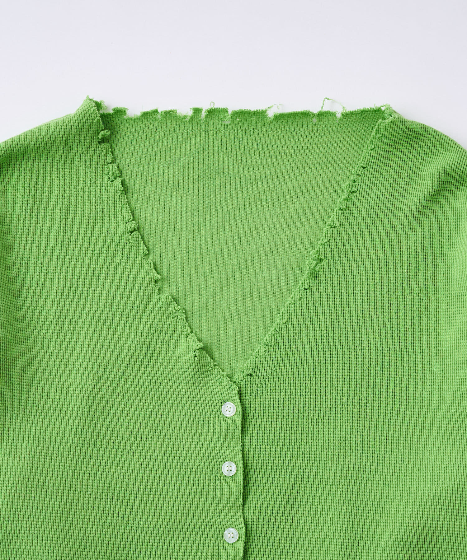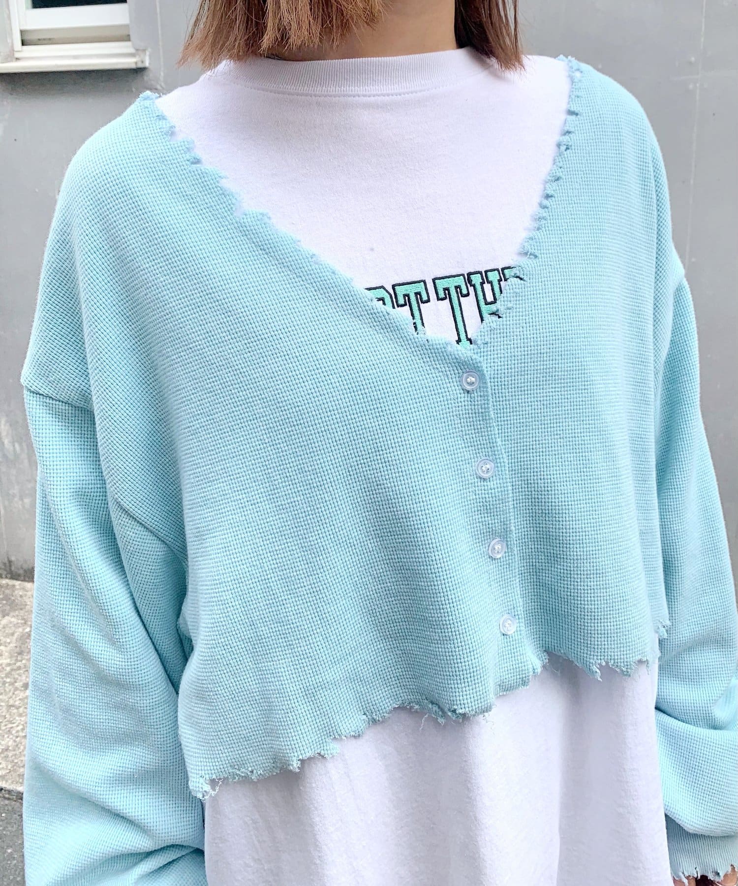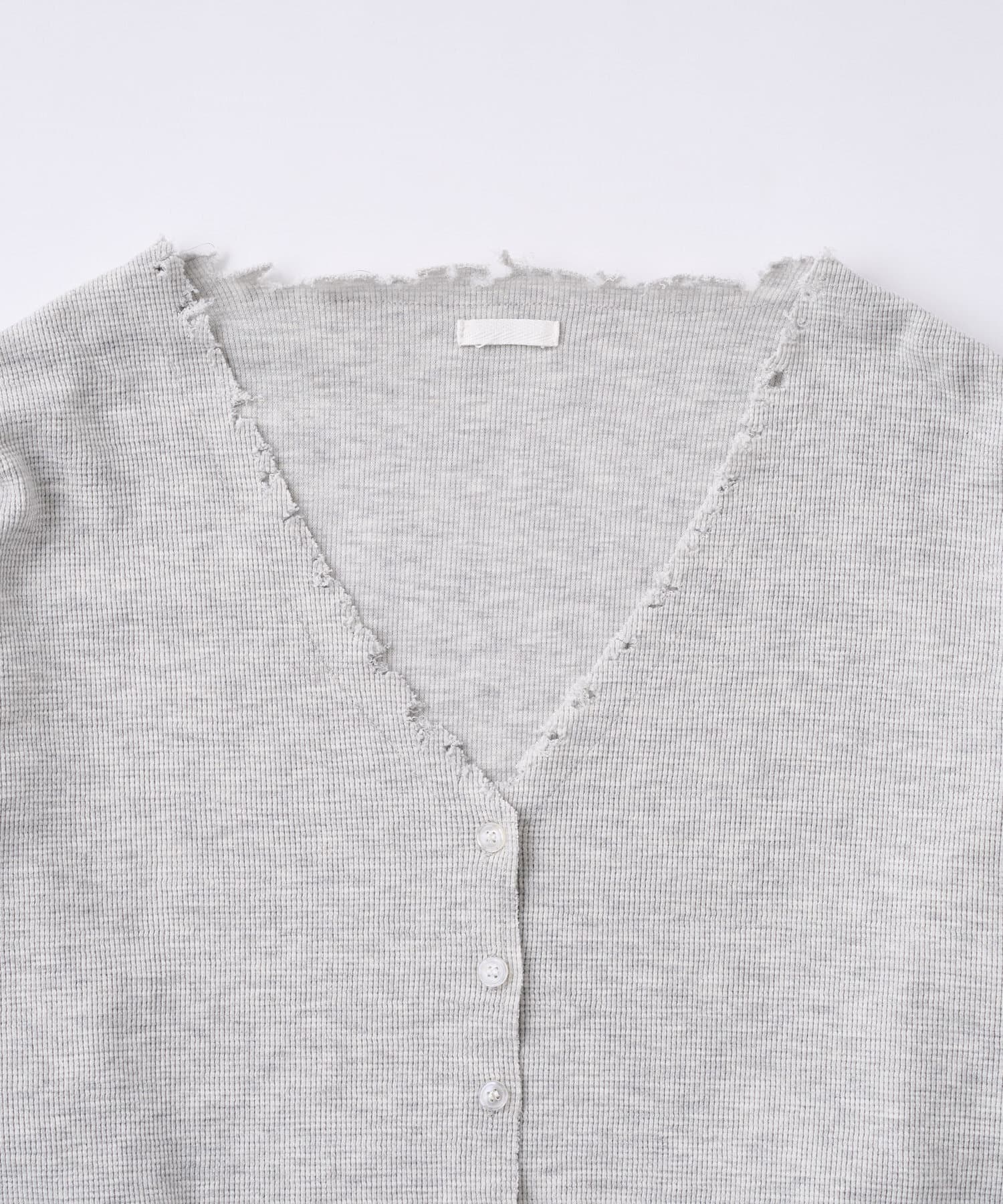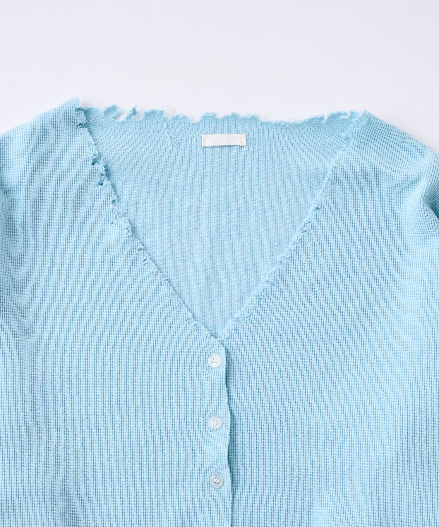 ワッフル素材・袖のボリューム・ダメージ加工、可愛さ3点がギュギュっと詰まった薄手カーディガン
