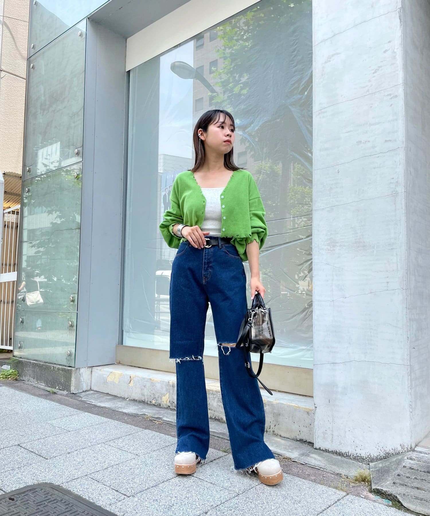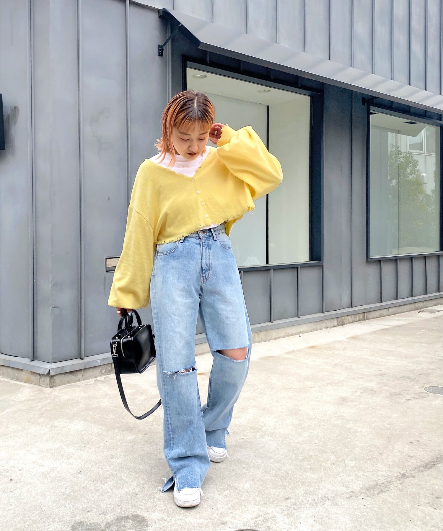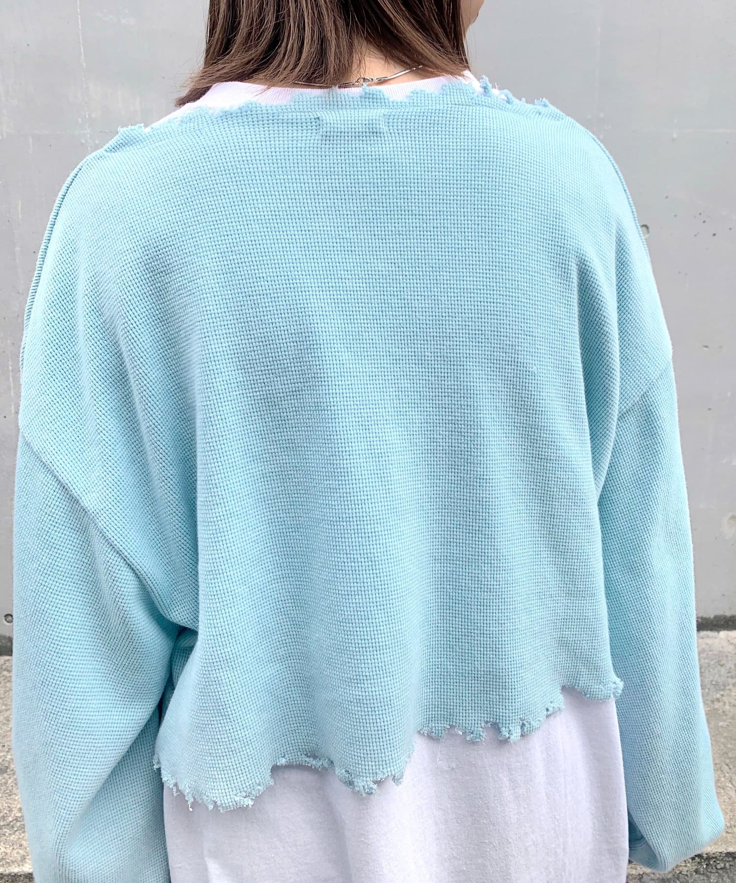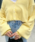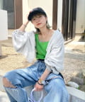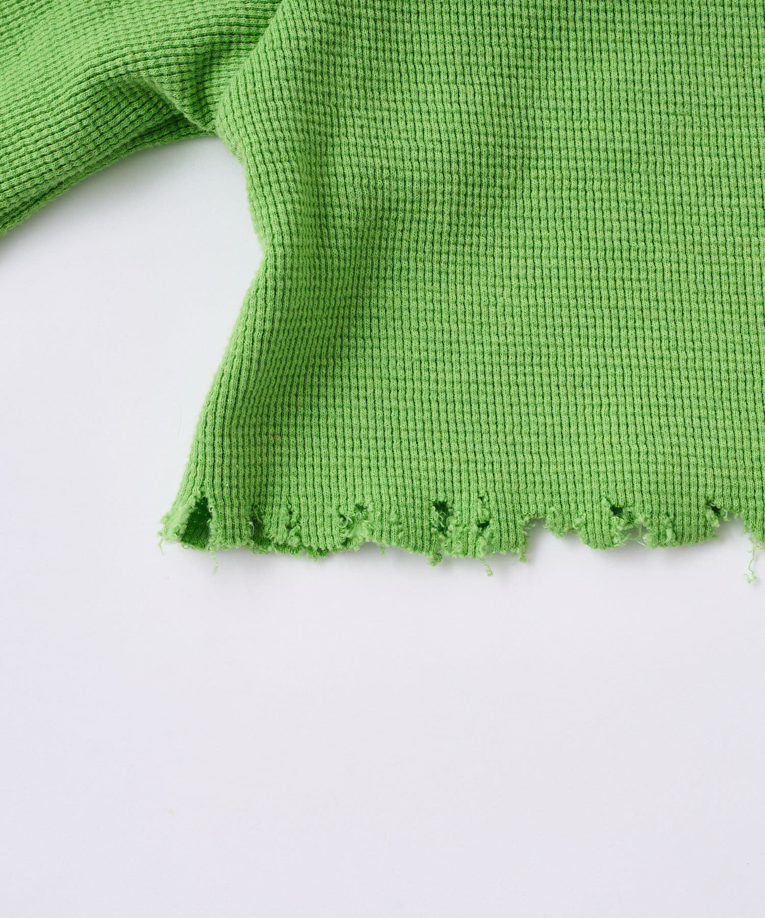 ワッフル素材・袖のボリューム・ダメージ加工、可愛さ3点がギュギュっと詰まった薄手カーディガン