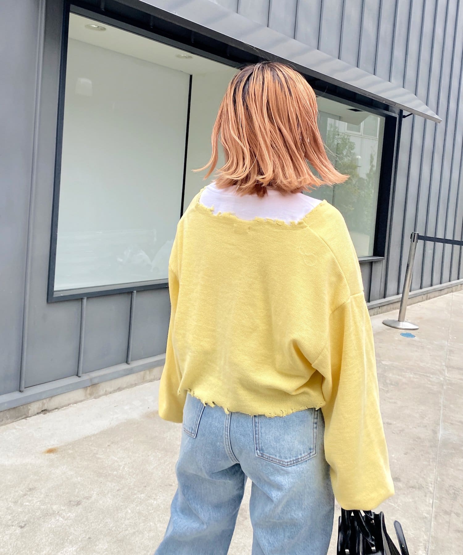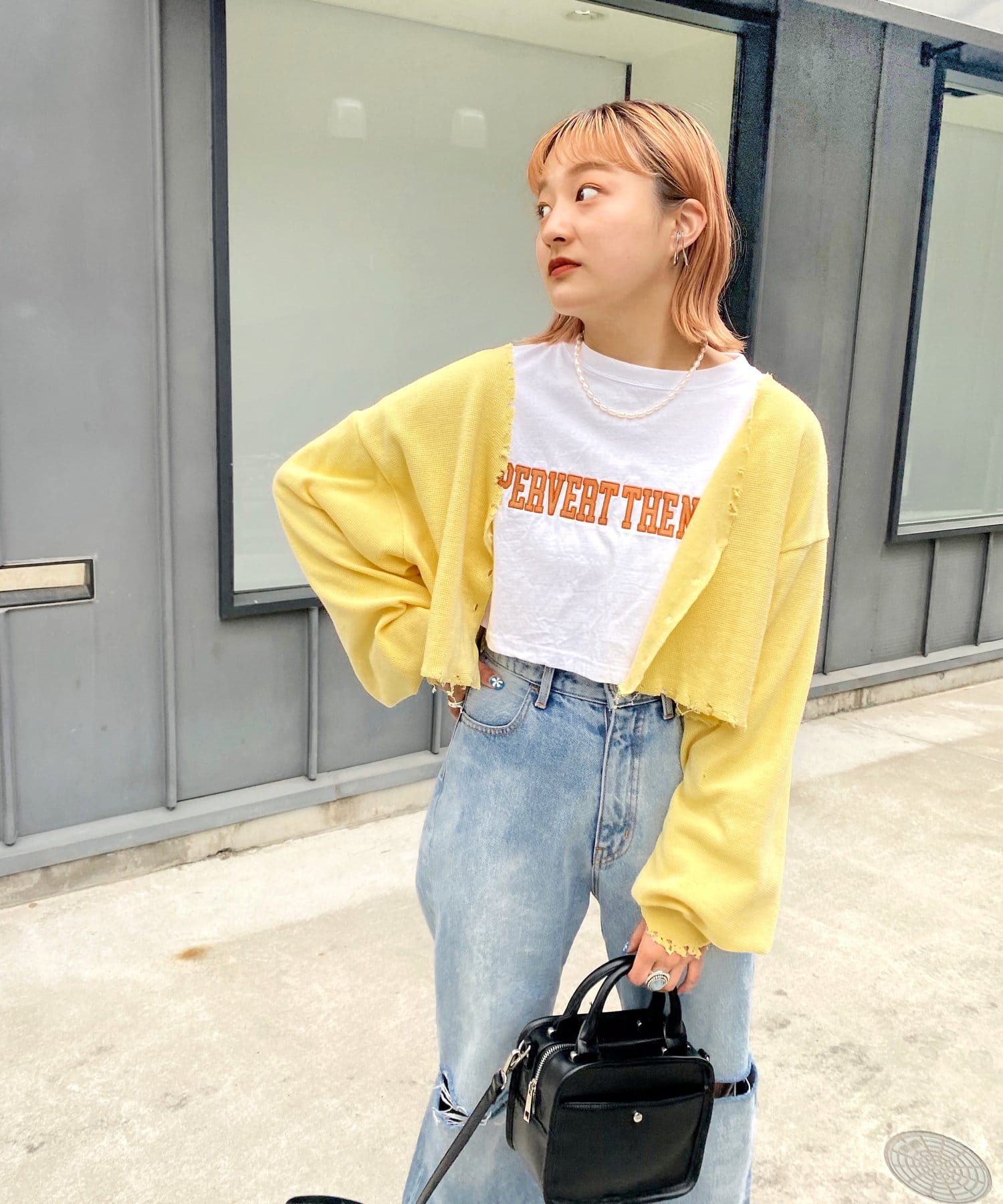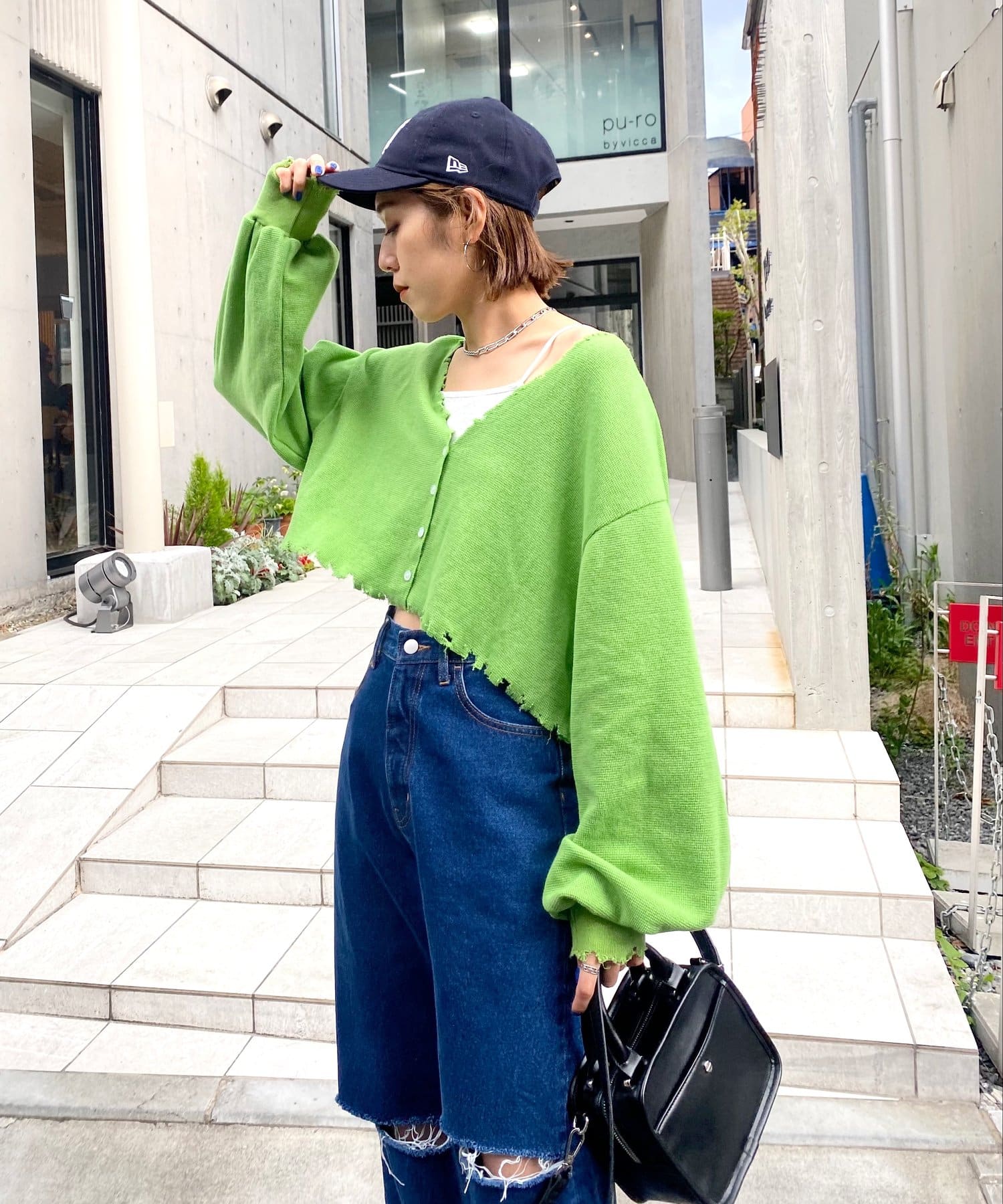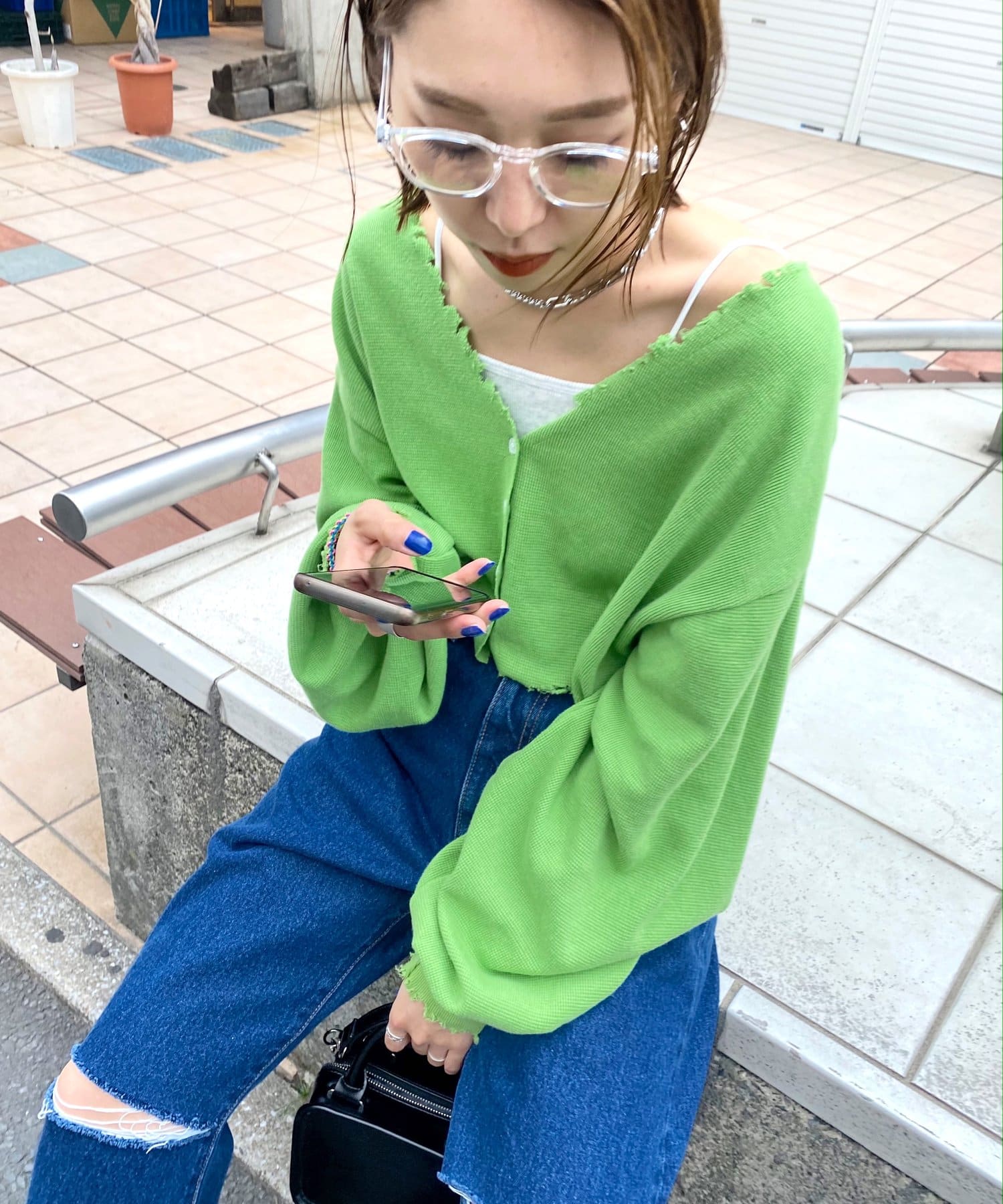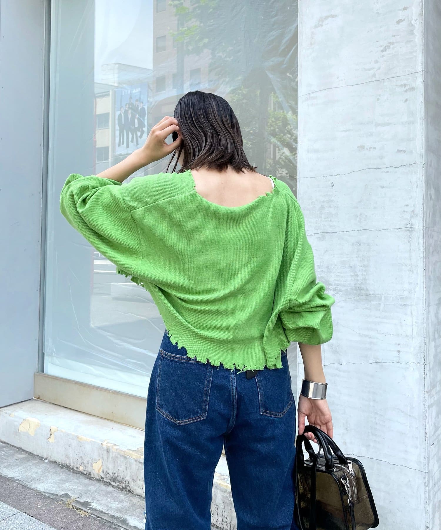 ・一見シンプルに見えますが、首元・裾・袖のダメージ加工によってWWGらしい一癖あるカーディガンに。