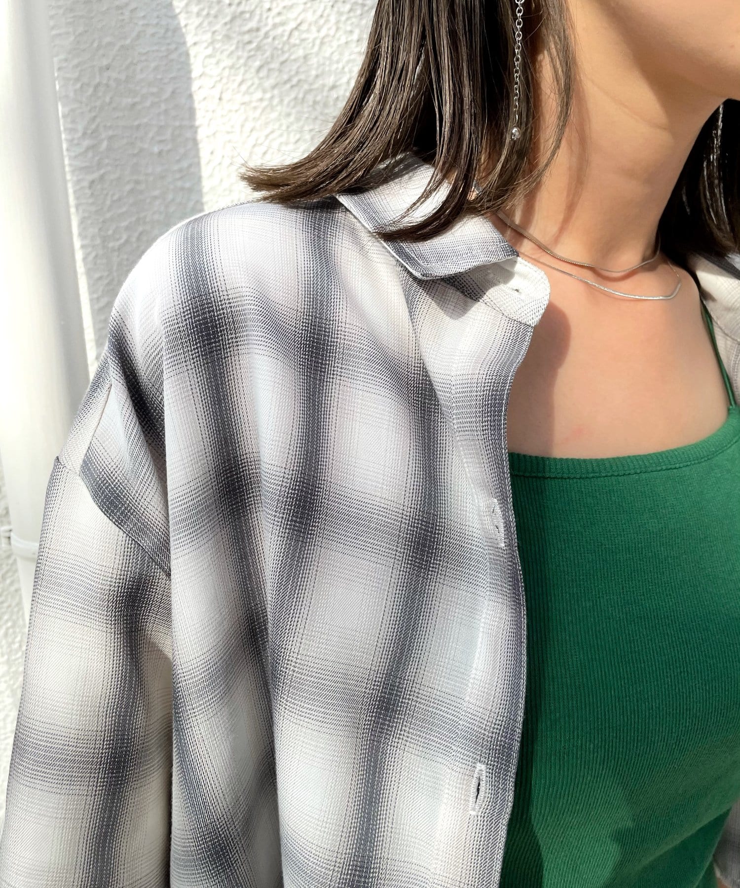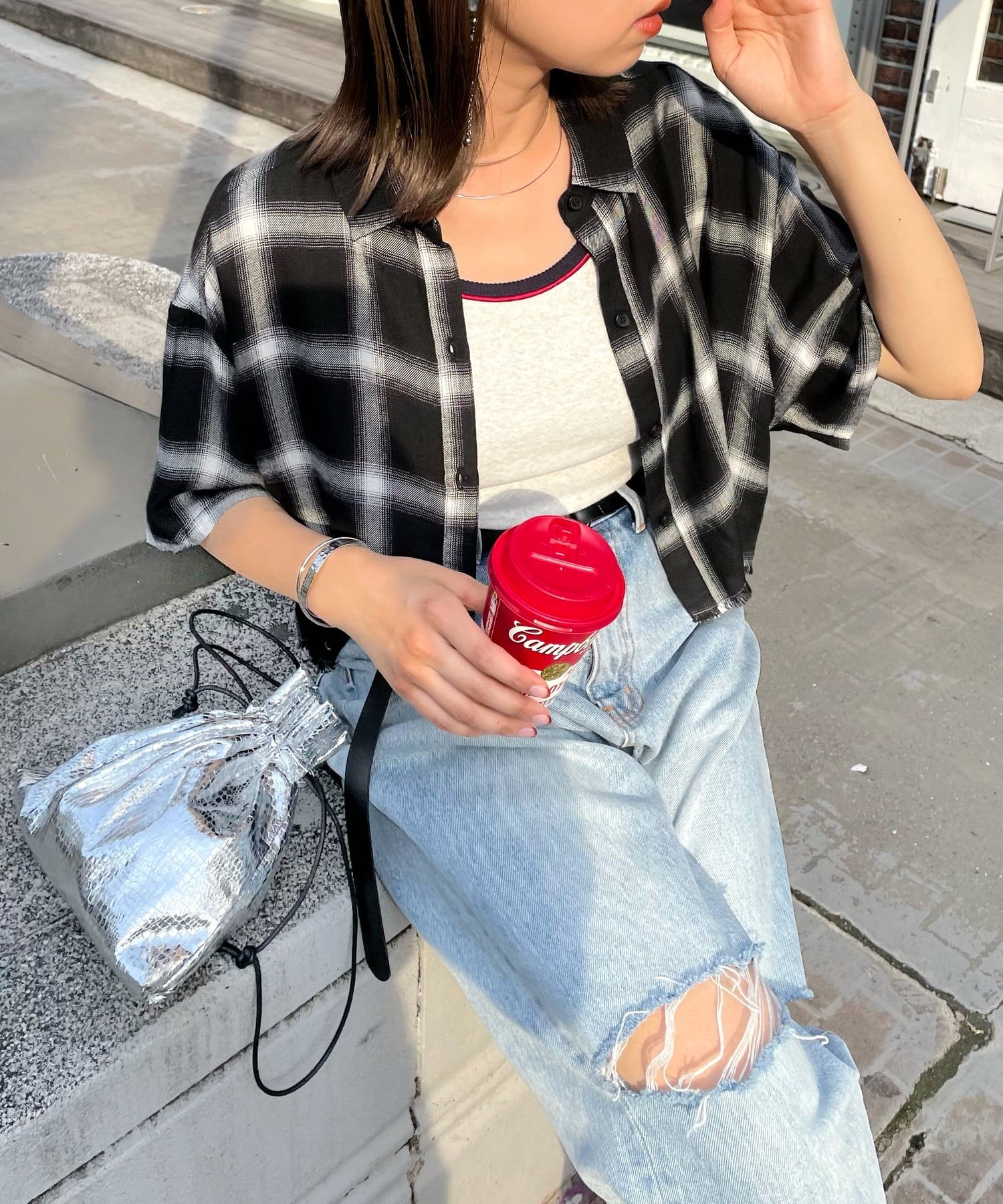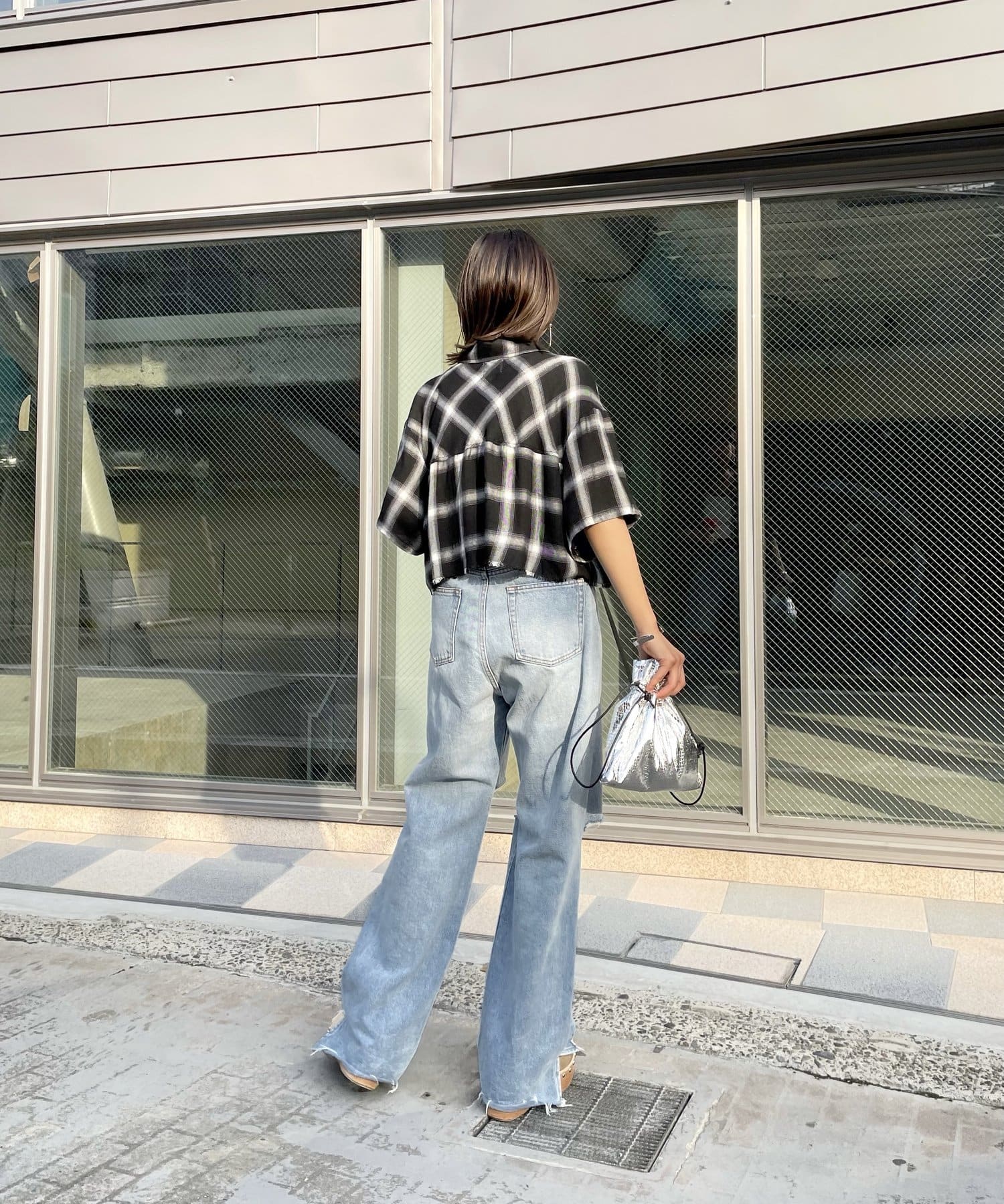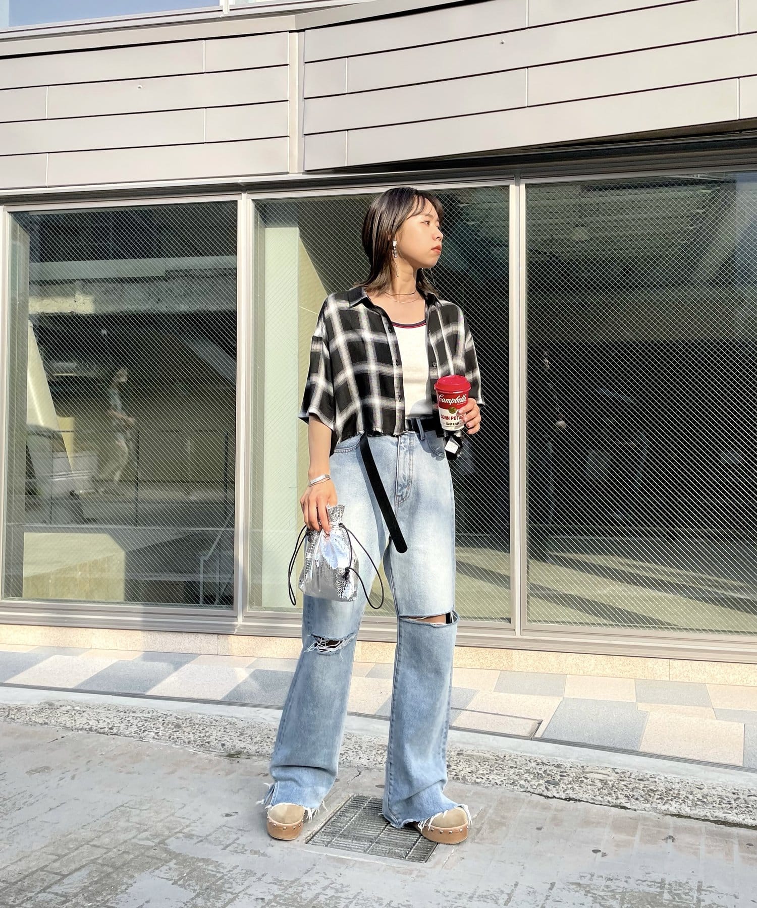 ・裾はざくっと切った加工感。シャツのキレイめなイメージを、程よくハズしたスタイリングに◎