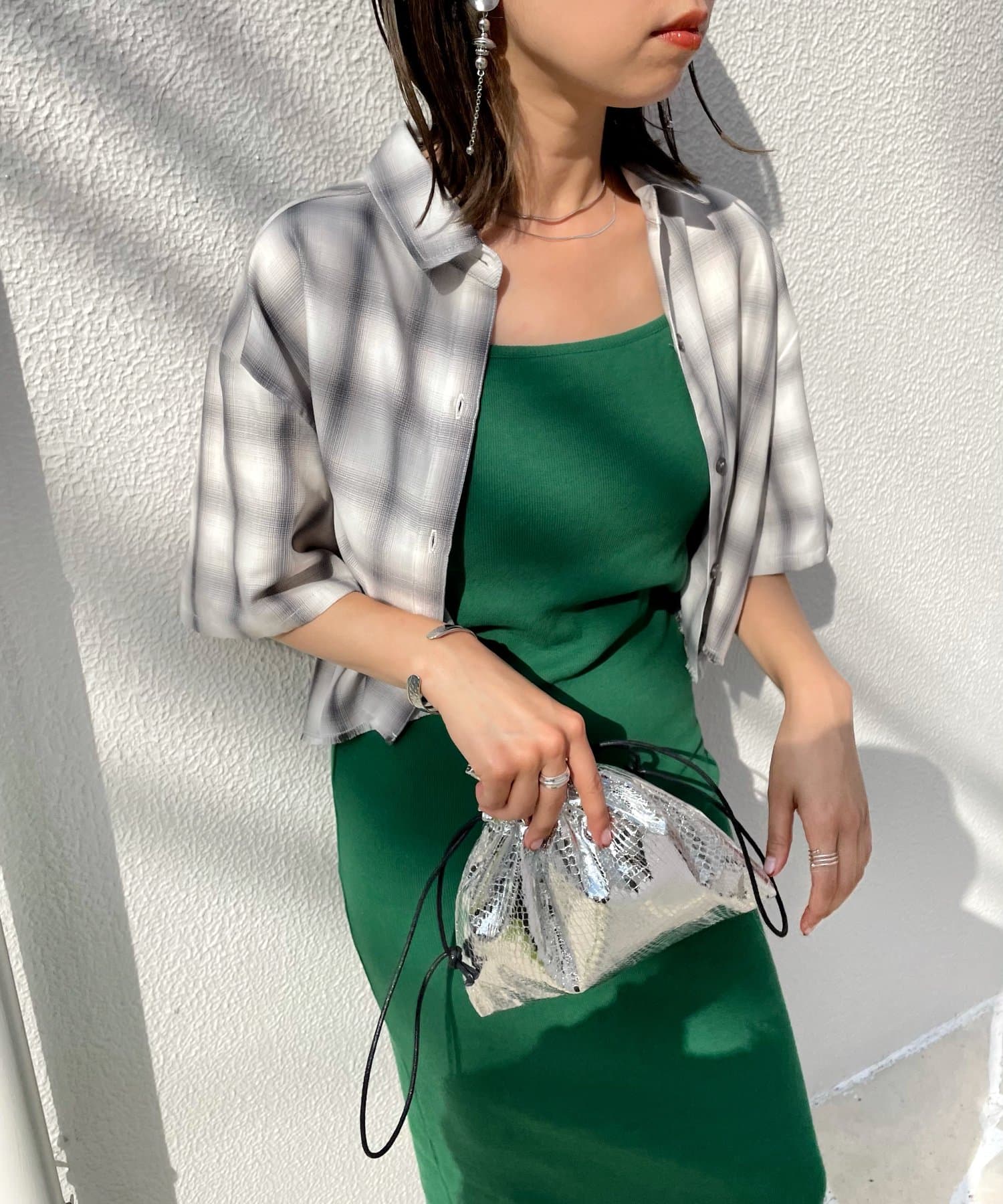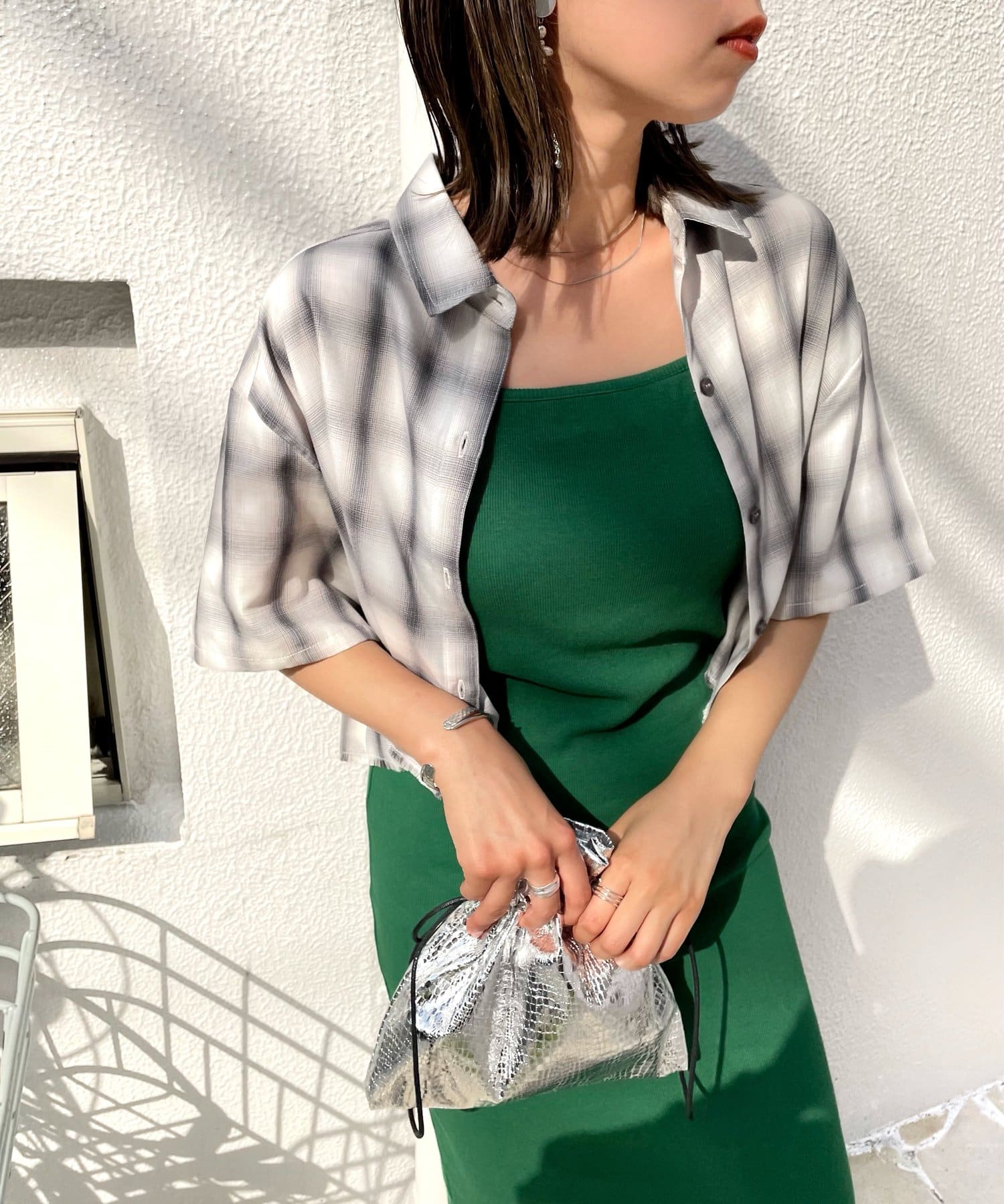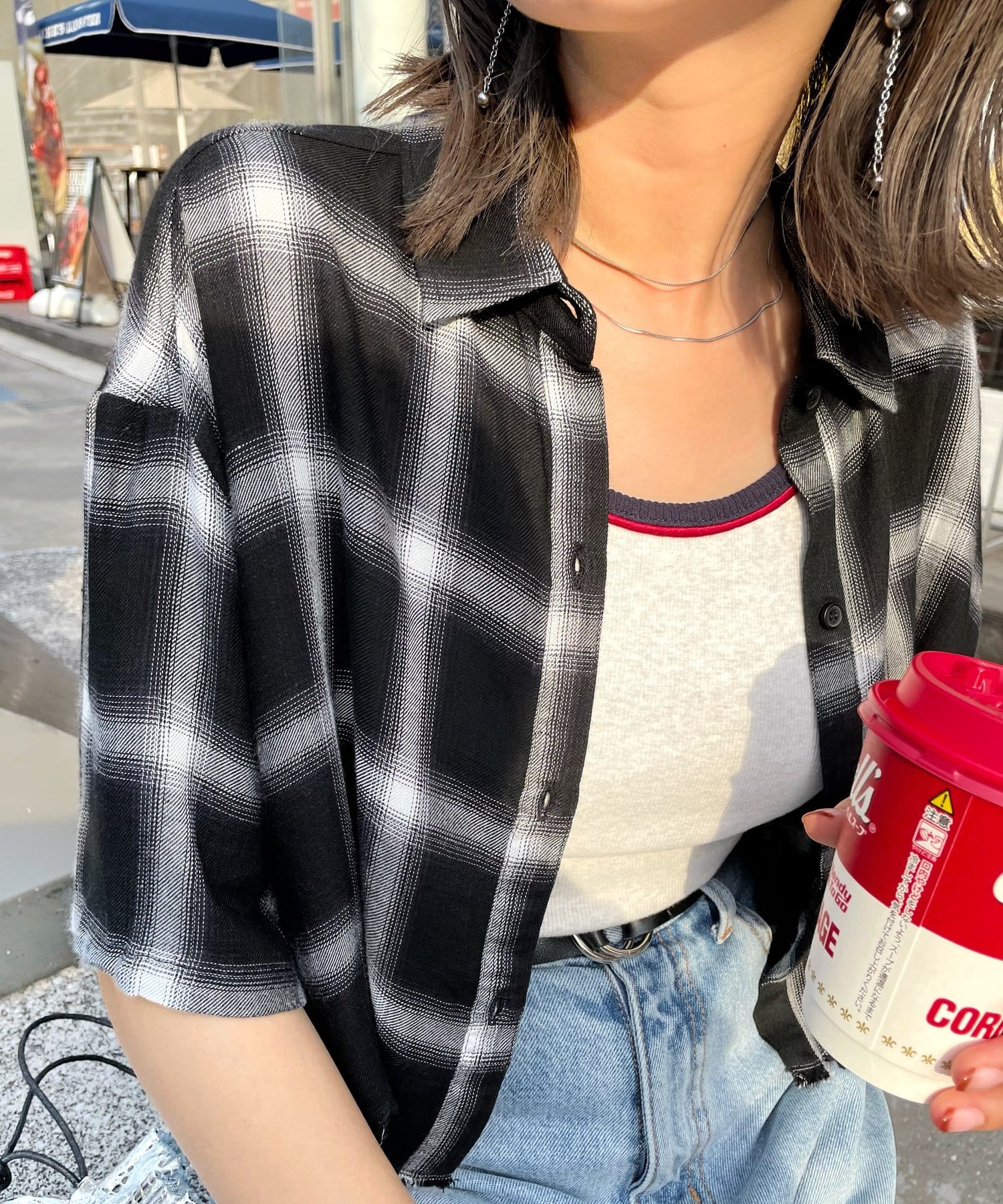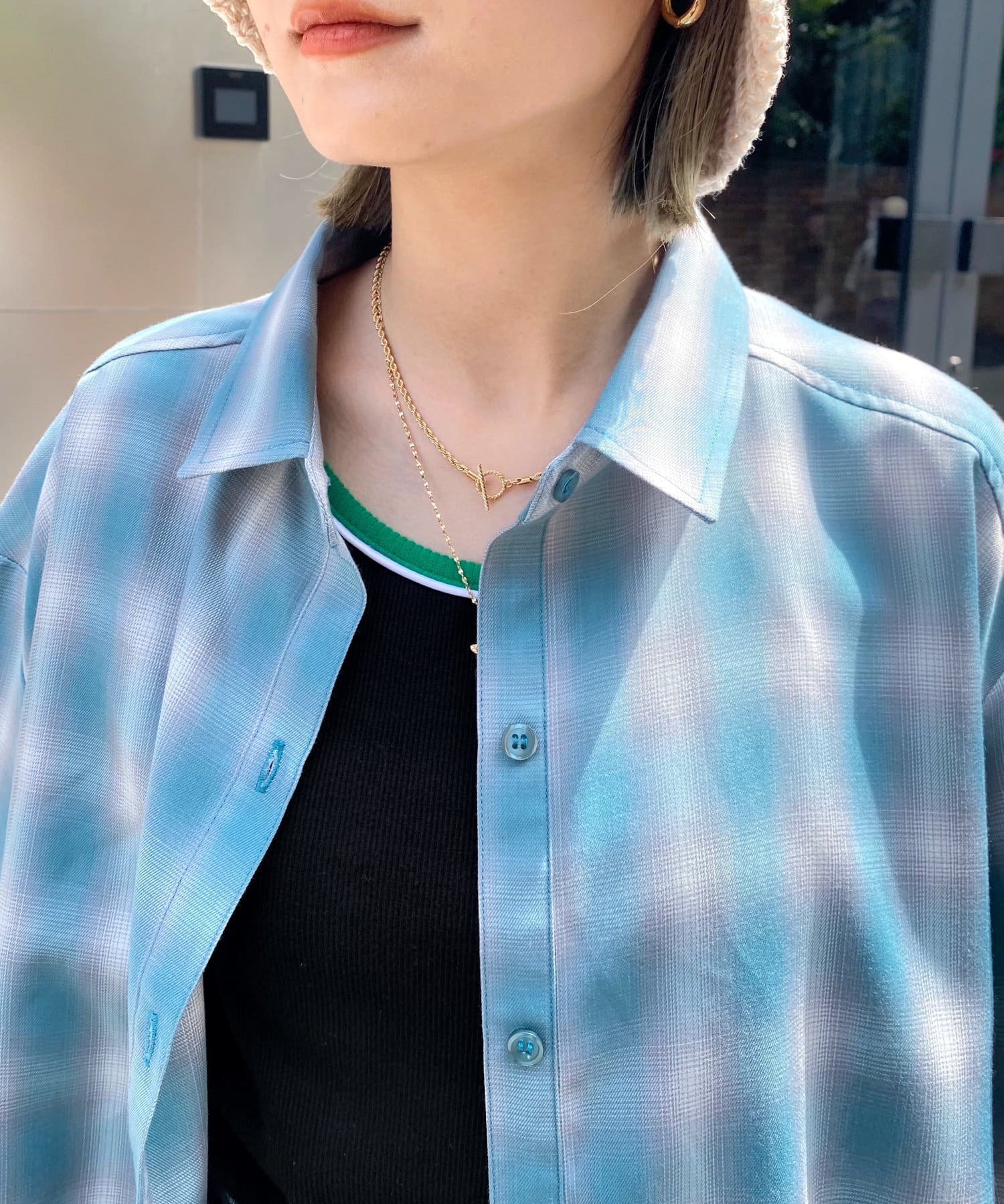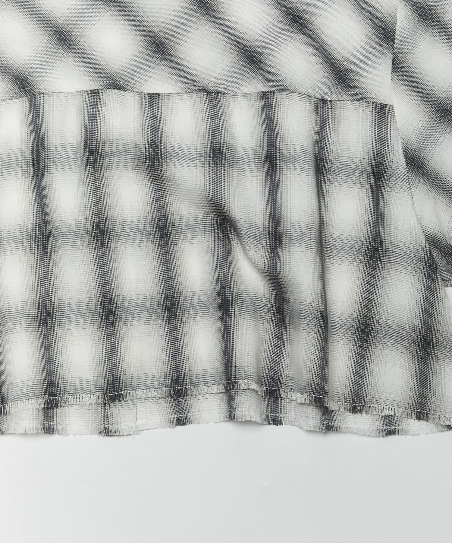 ・裾はざくっと切った加工感。シャツのキレイめなイメージを、程よくハズしたスタイリングに◎