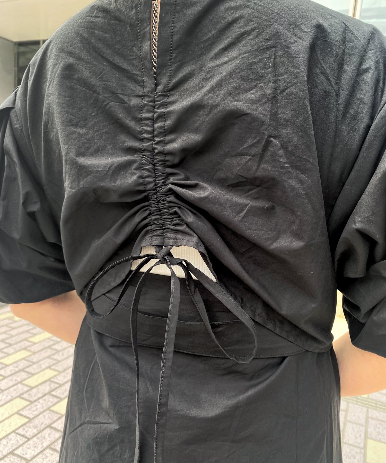 ・バックデザインは程よい肌見せが出来るよう、紐を絞ったり、垂らしたり、調節可。