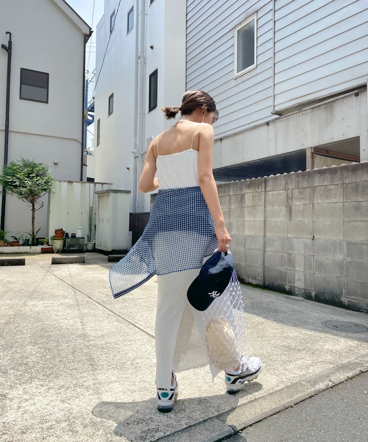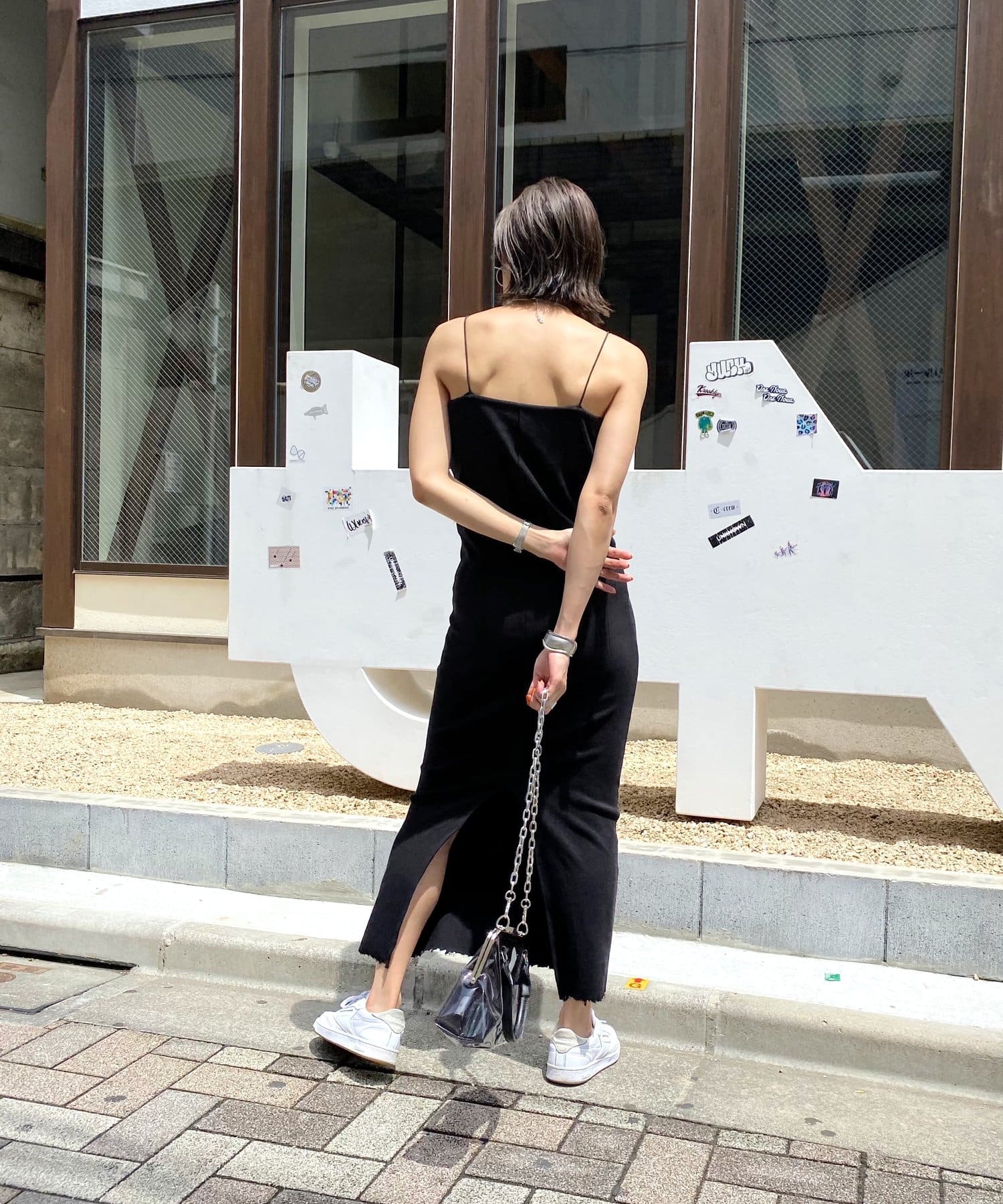 ・Iラインを強調する丈感が細身に魅せます。また、後ろのスリットによる肌見せで、抜け感をプラス。