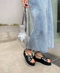 ・無地の光沢感の中にさりげないパイソン風の肌触り。シンプルなコーデに合わせても表情が生まれます。
