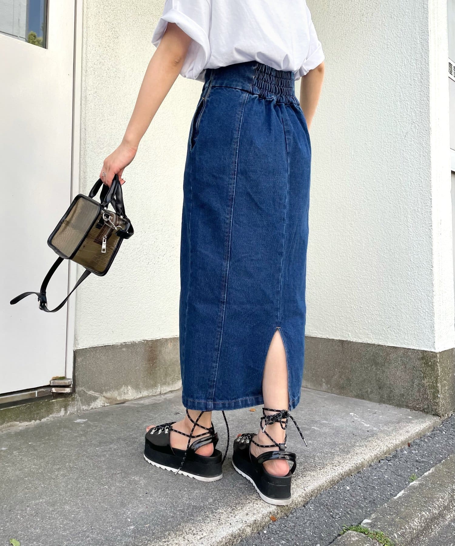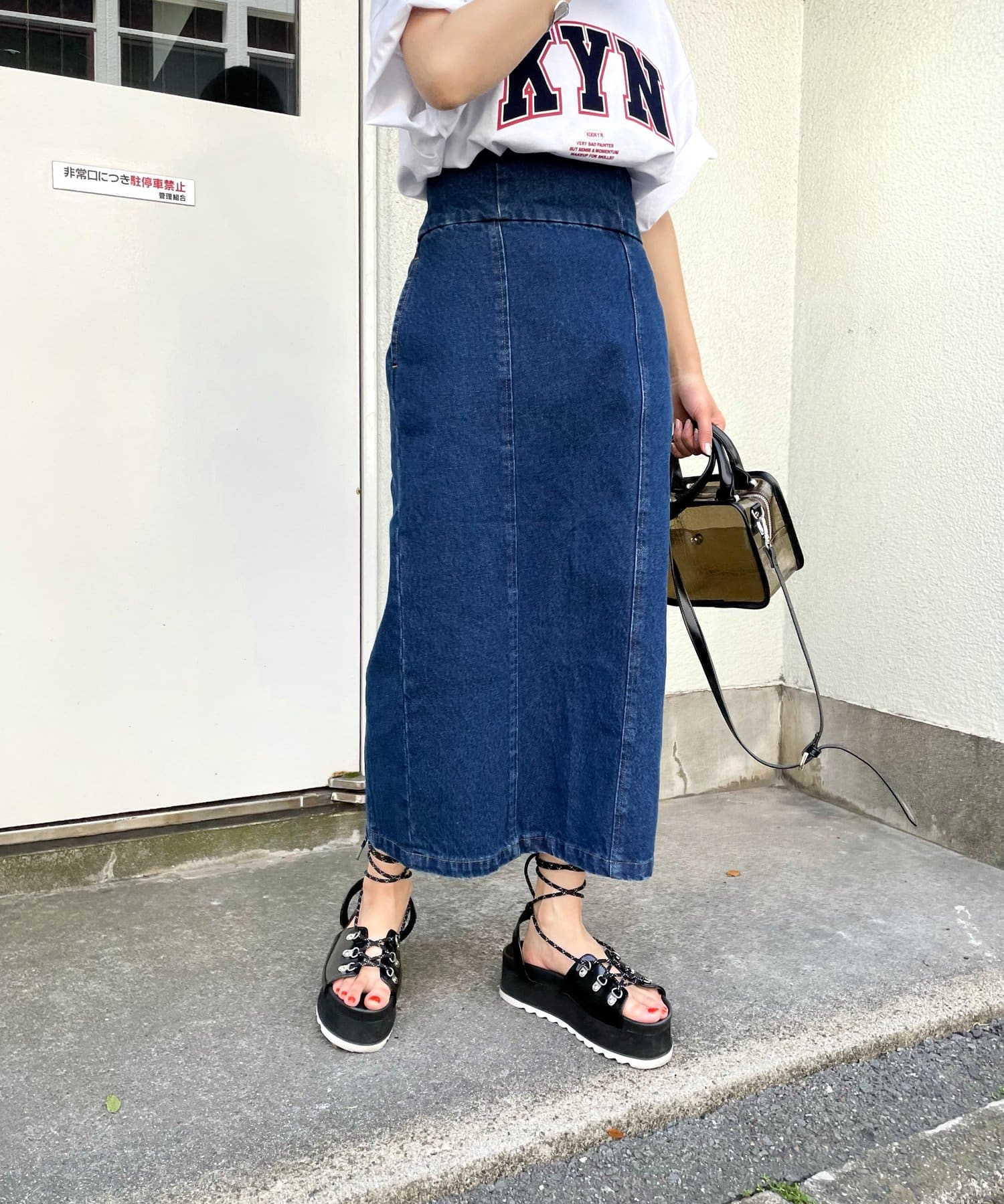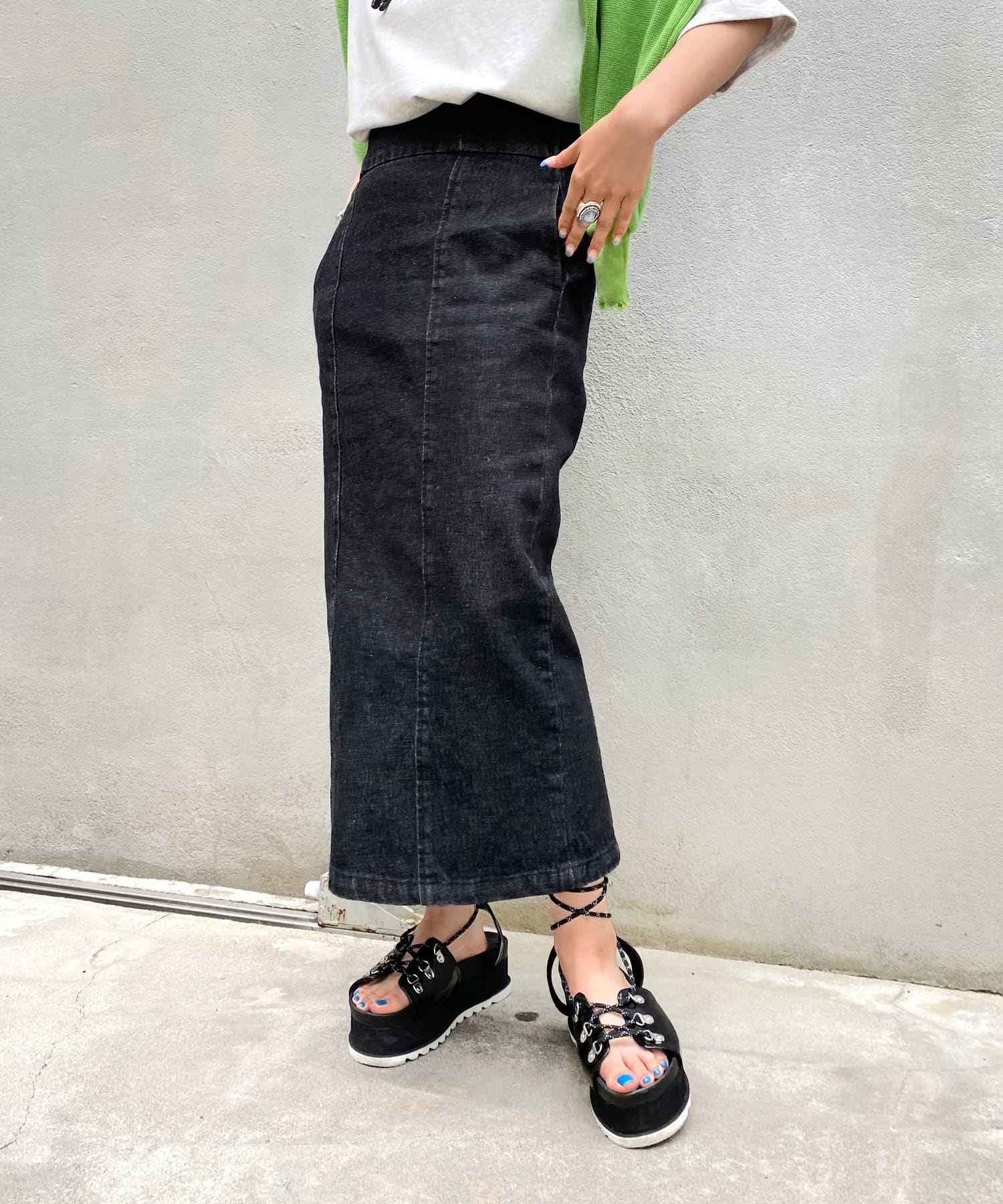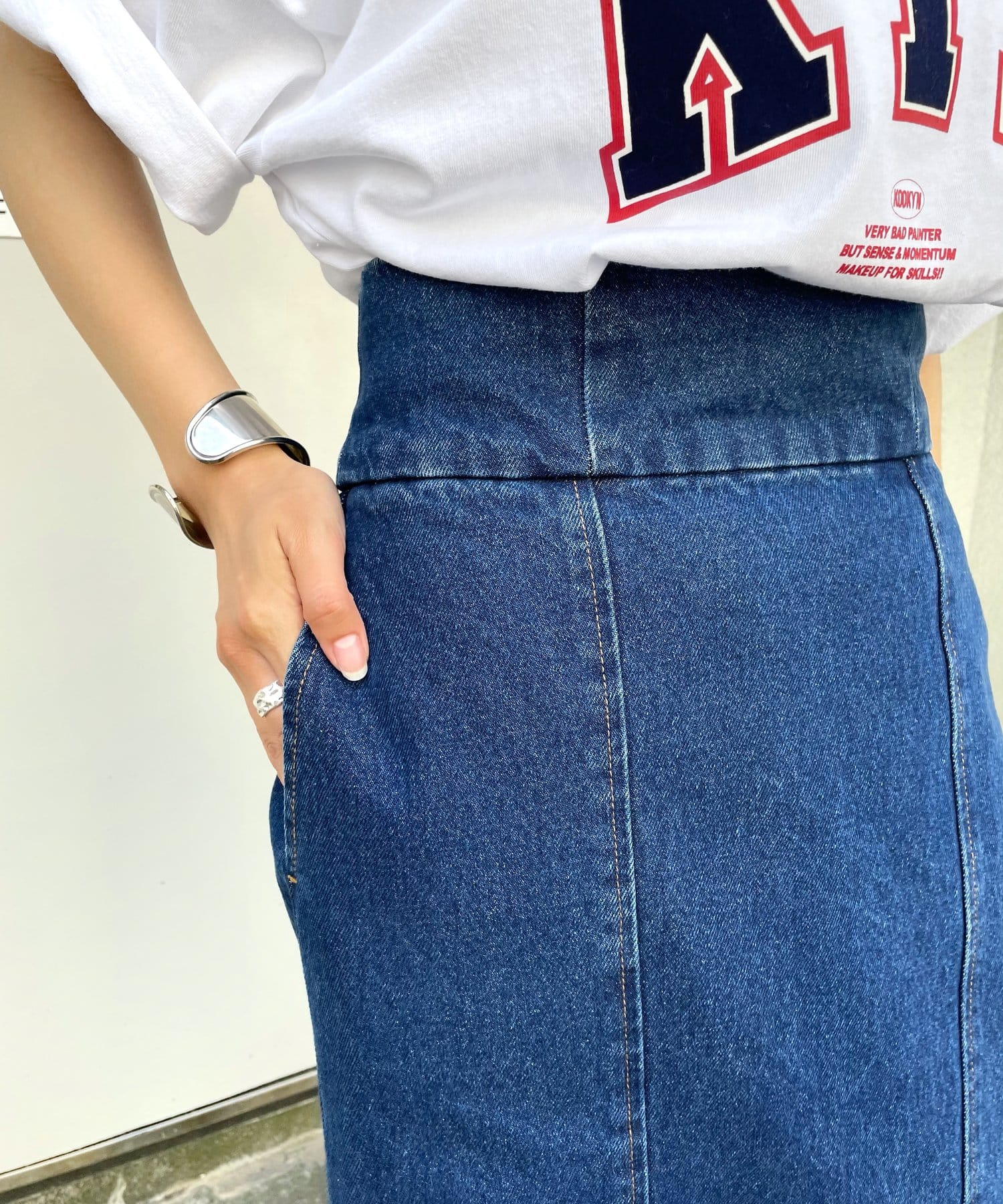 スタイリングにメリハリ効果◎!大人気“カマーバンドナロースカート”デニムver.登場!