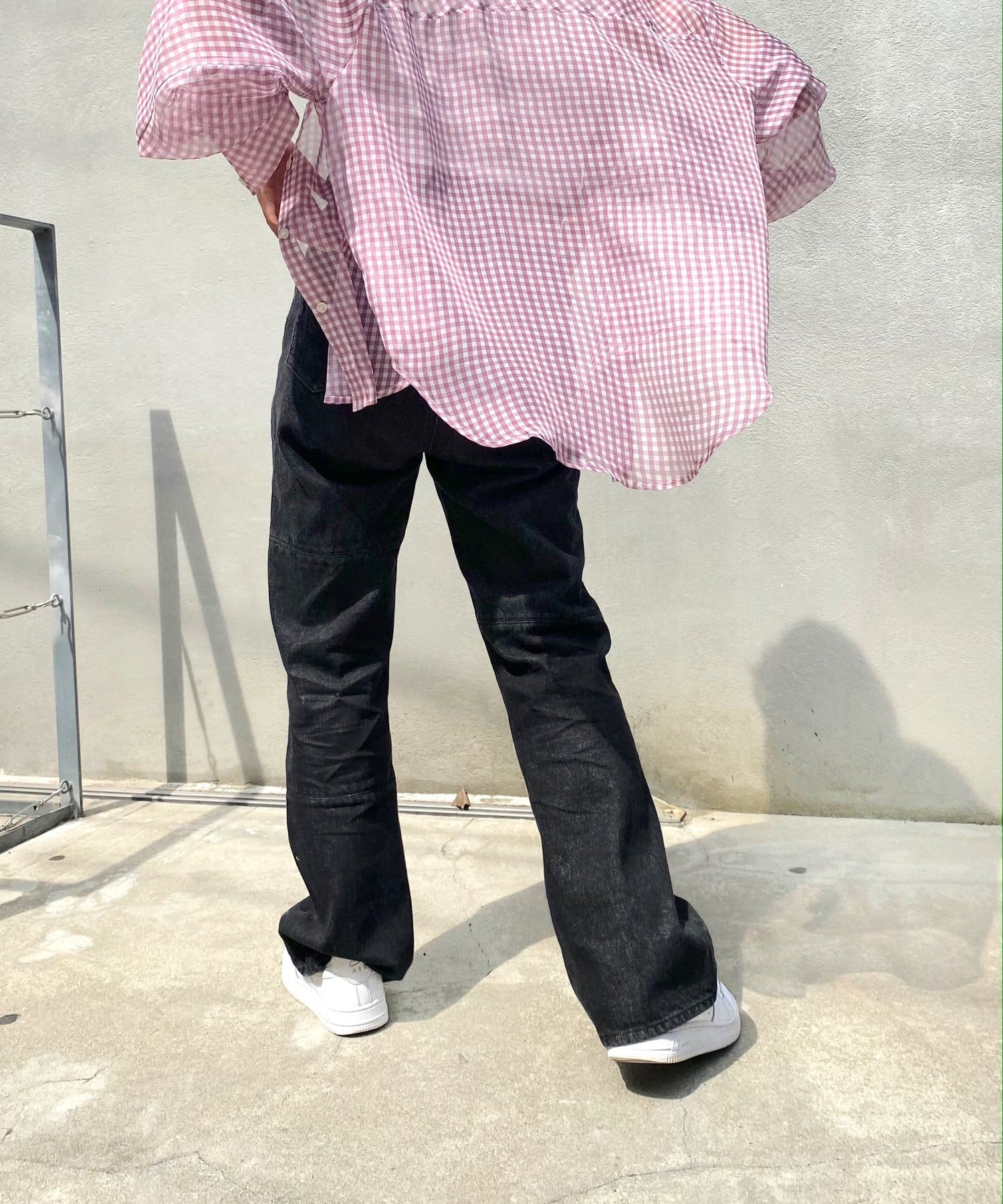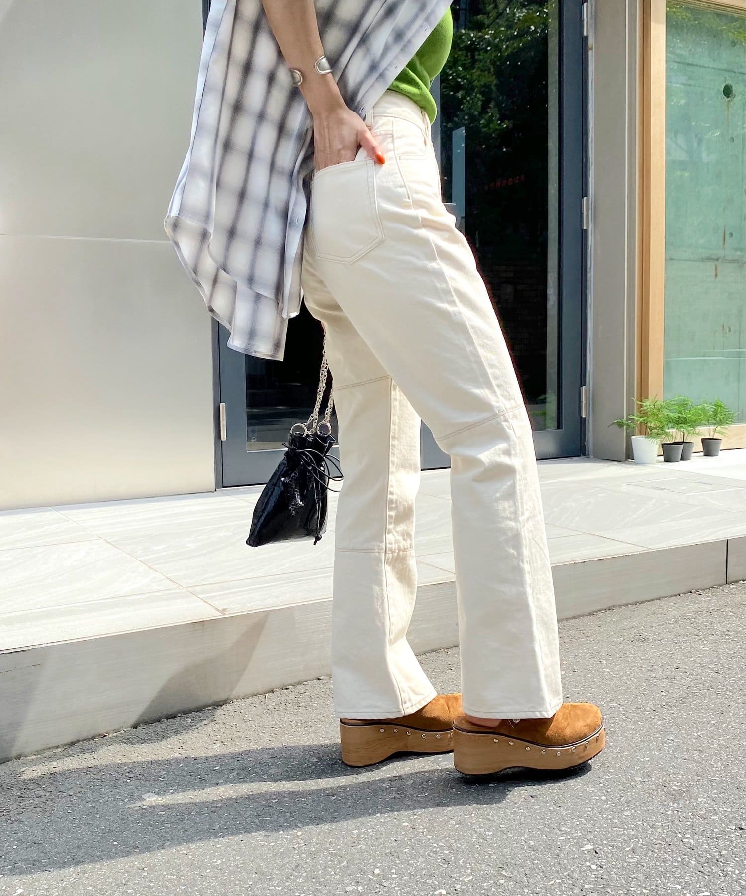 ・脚のラインを強調せず、ウエストはスッキリ仕上げた美シルエット。ロールアップしてもシルエットは維持されるので、身長問わず楽しめます。