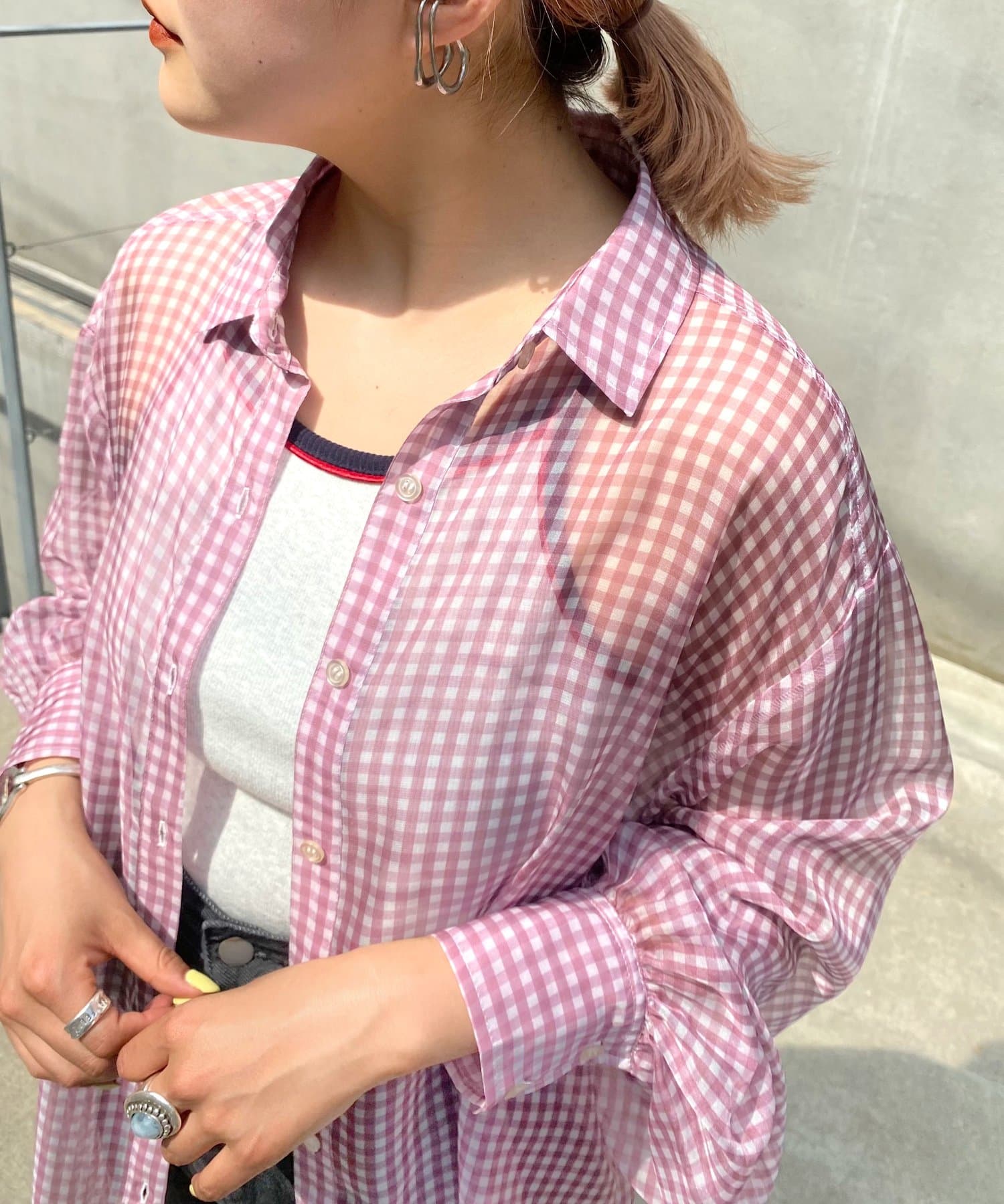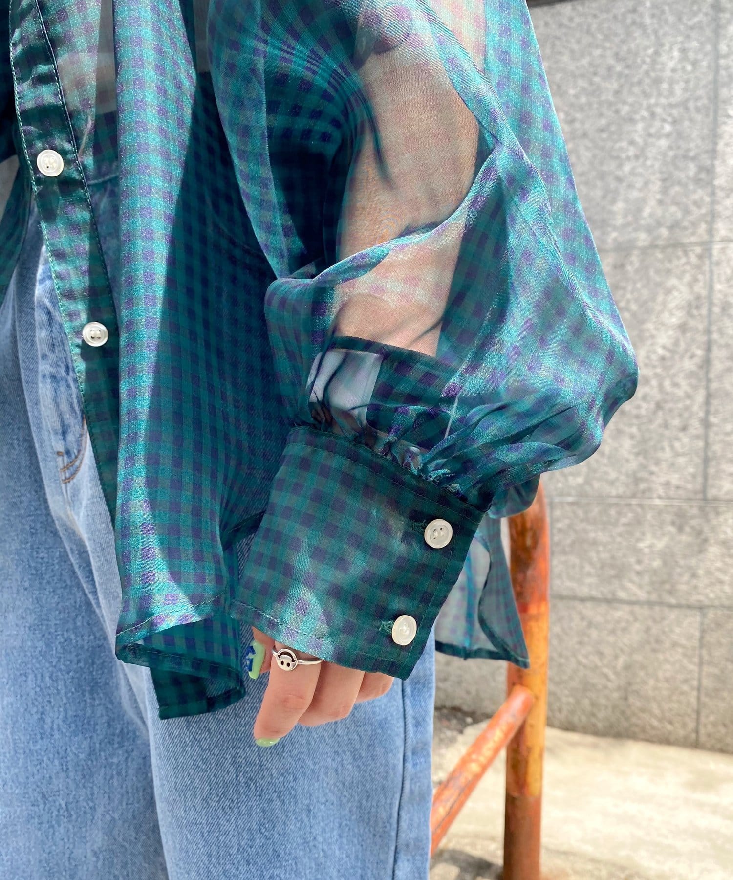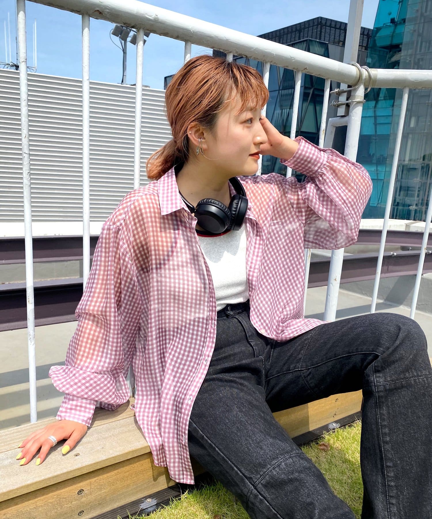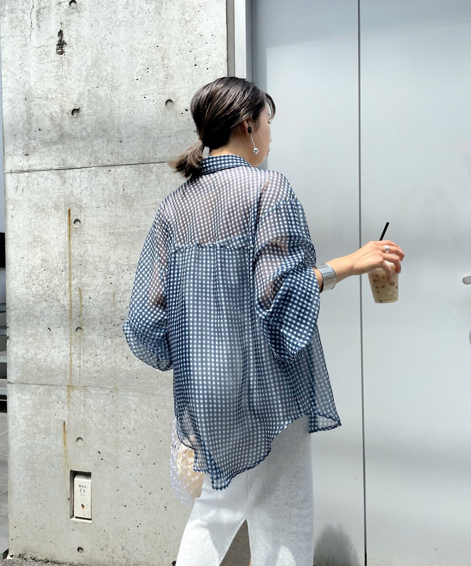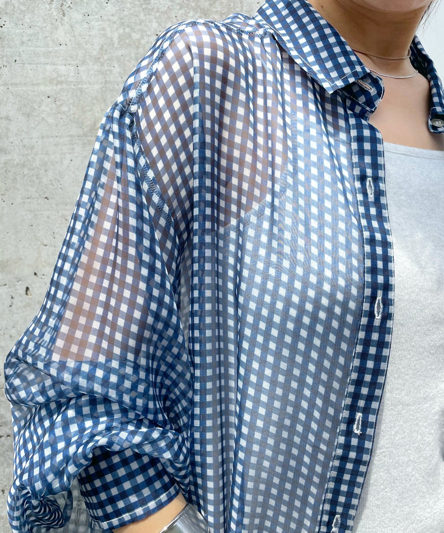 透け感×ギンガムチェックの無限大なかわいさ!袖のボリュームもオススメなブラウス