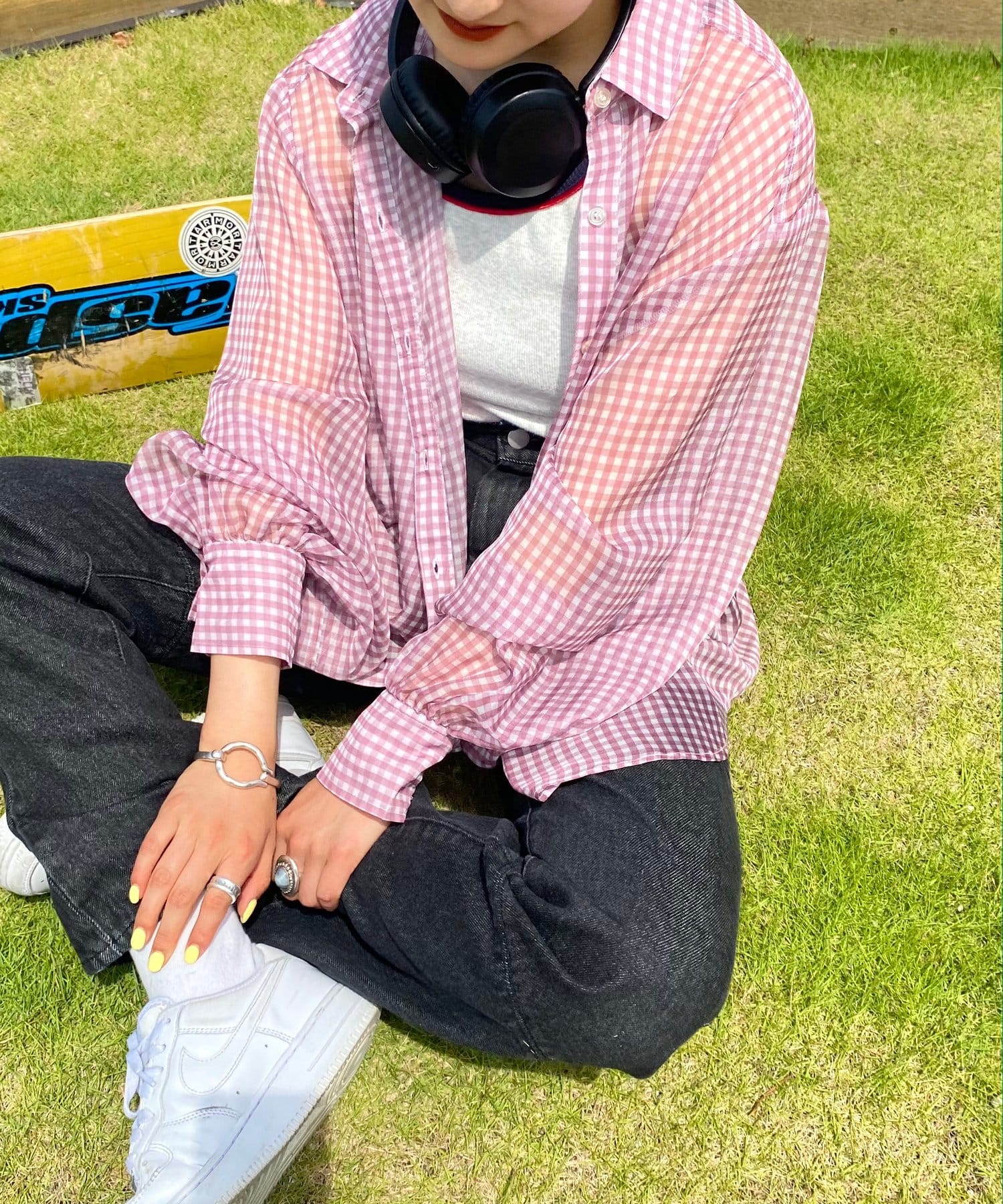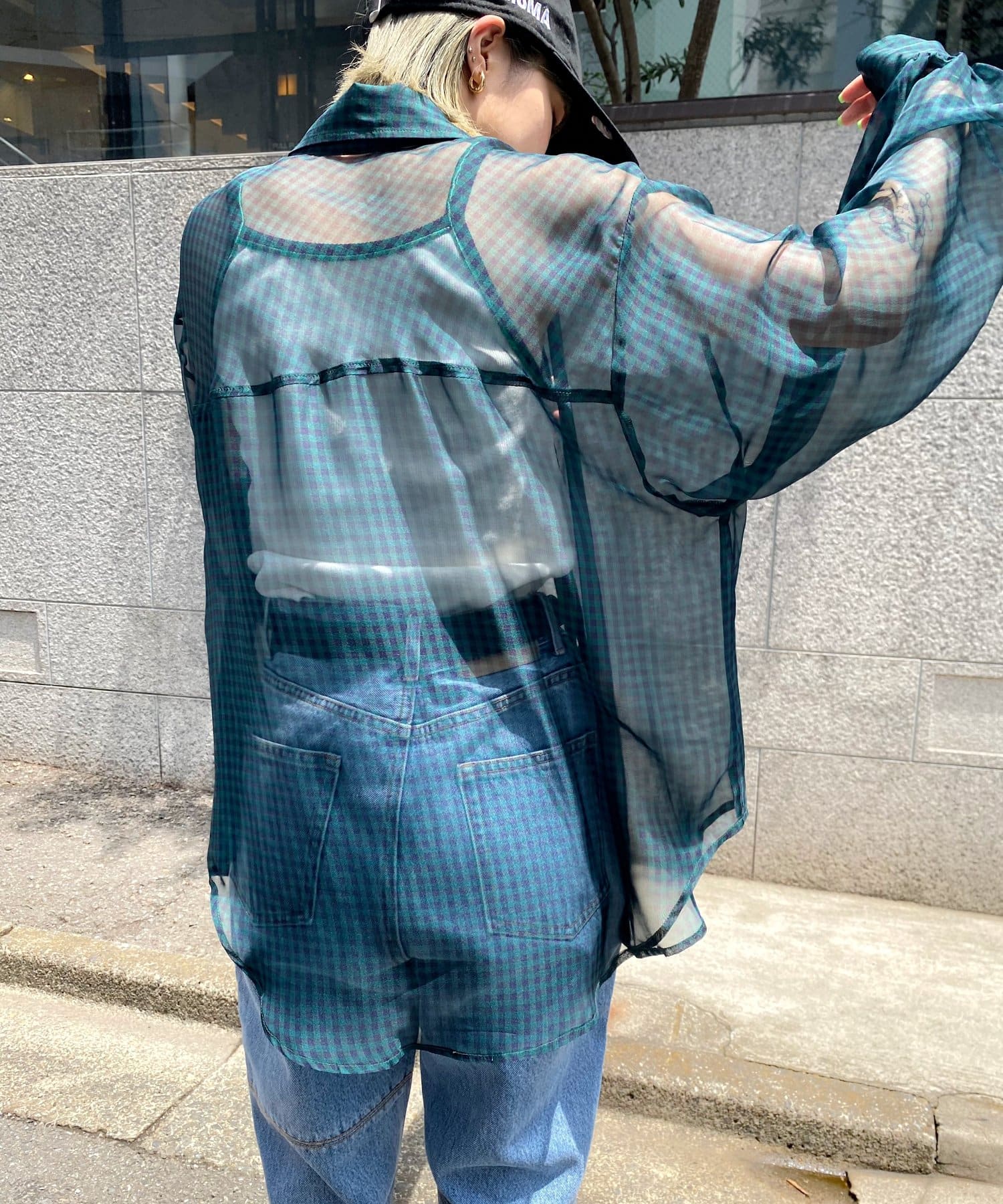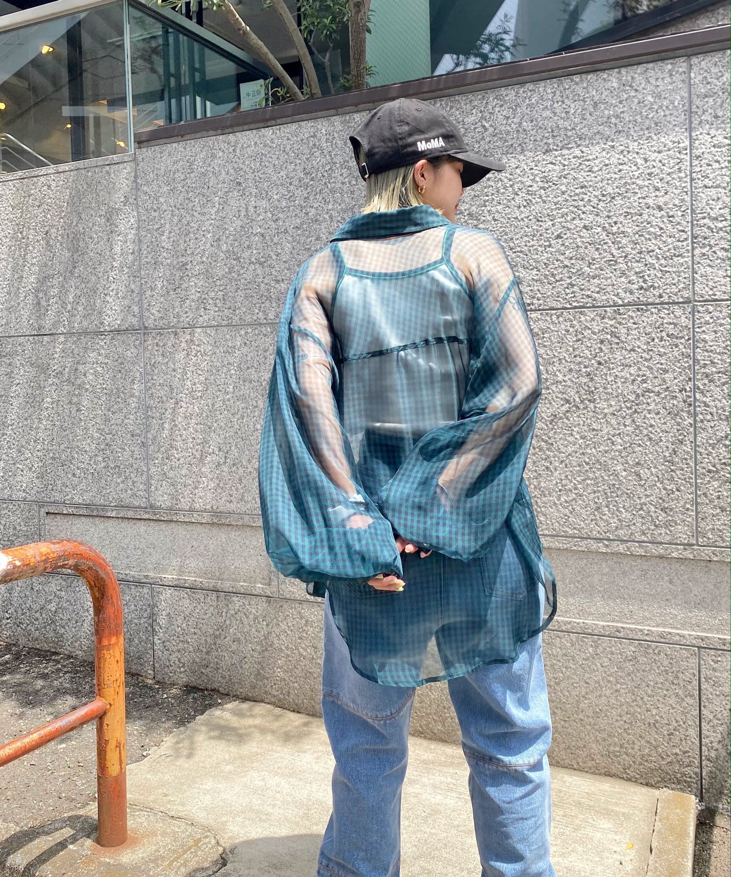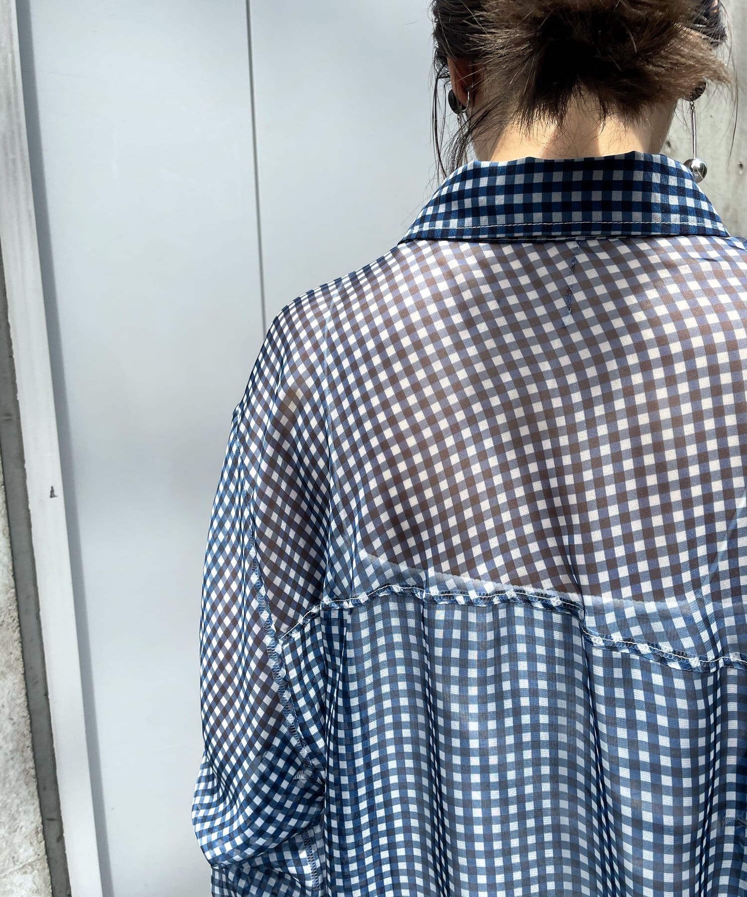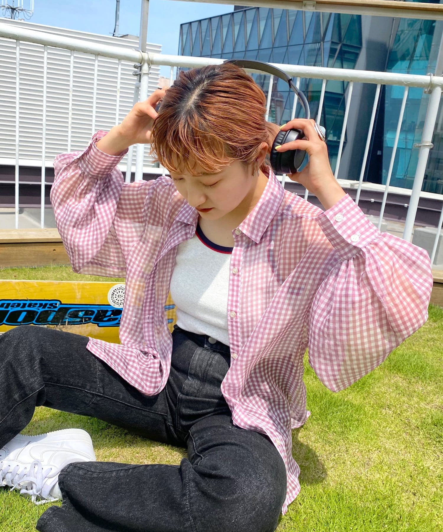 透け感×ギンガムチェックの無限大なかわいさ!袖のボリュームもオススメなブラウス