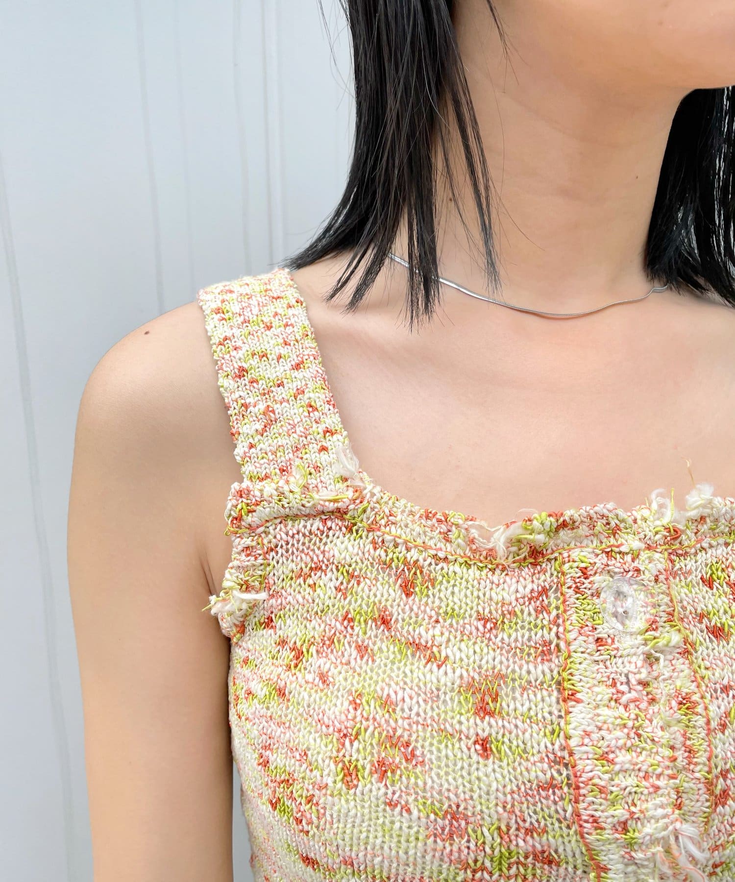まばらなカラーと風合いを楽しもう!前後2WAYで着られるファンシーヤーンニットキャミ
