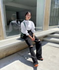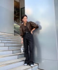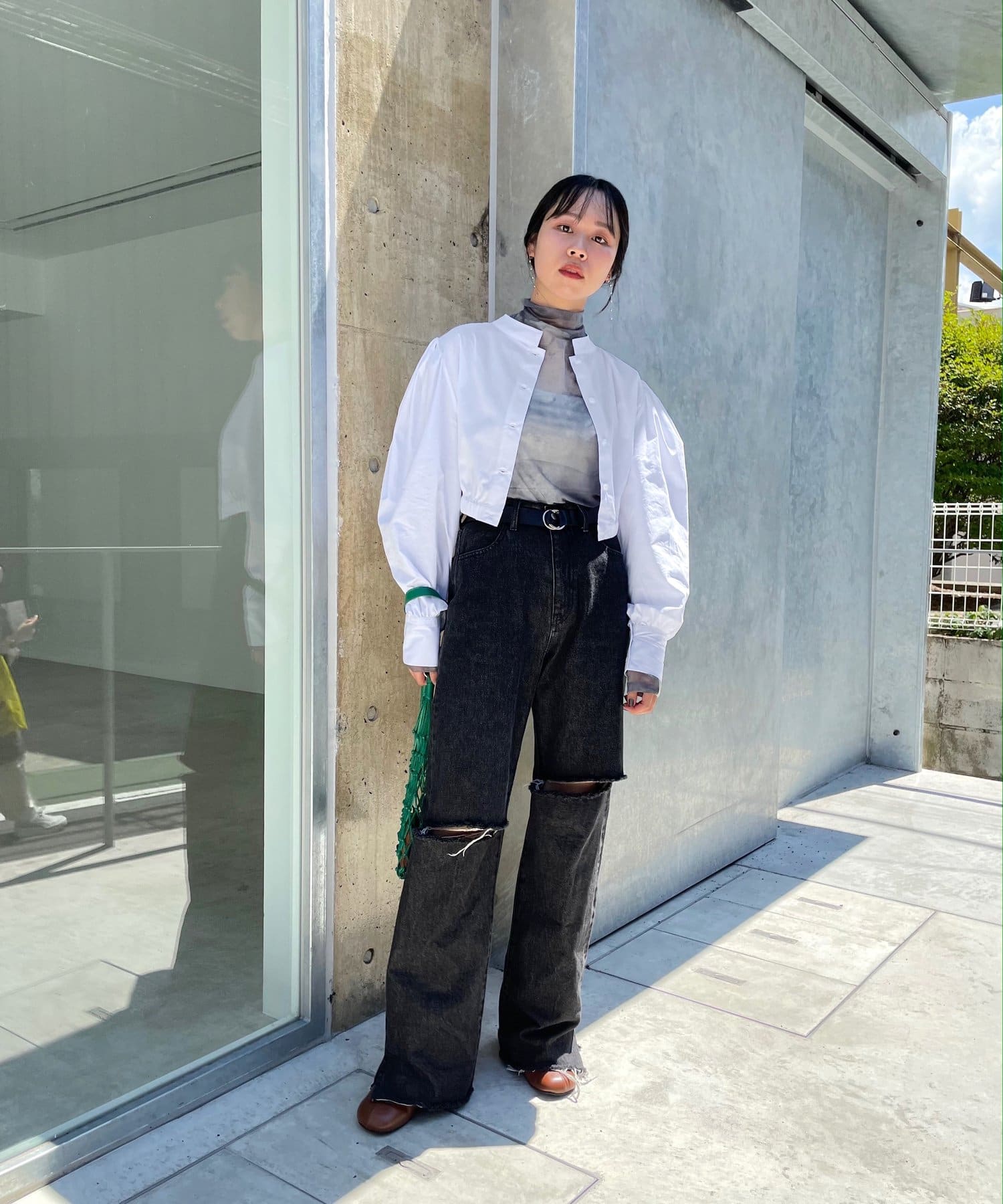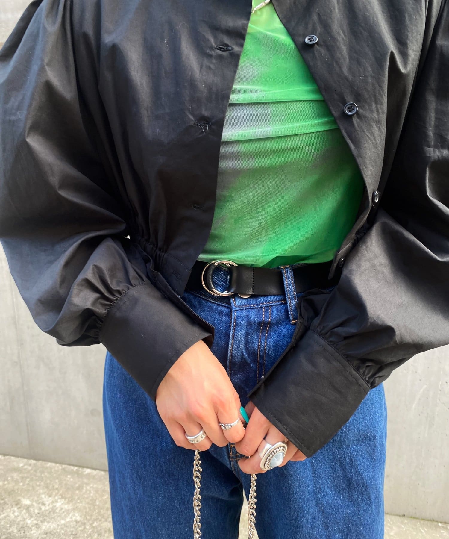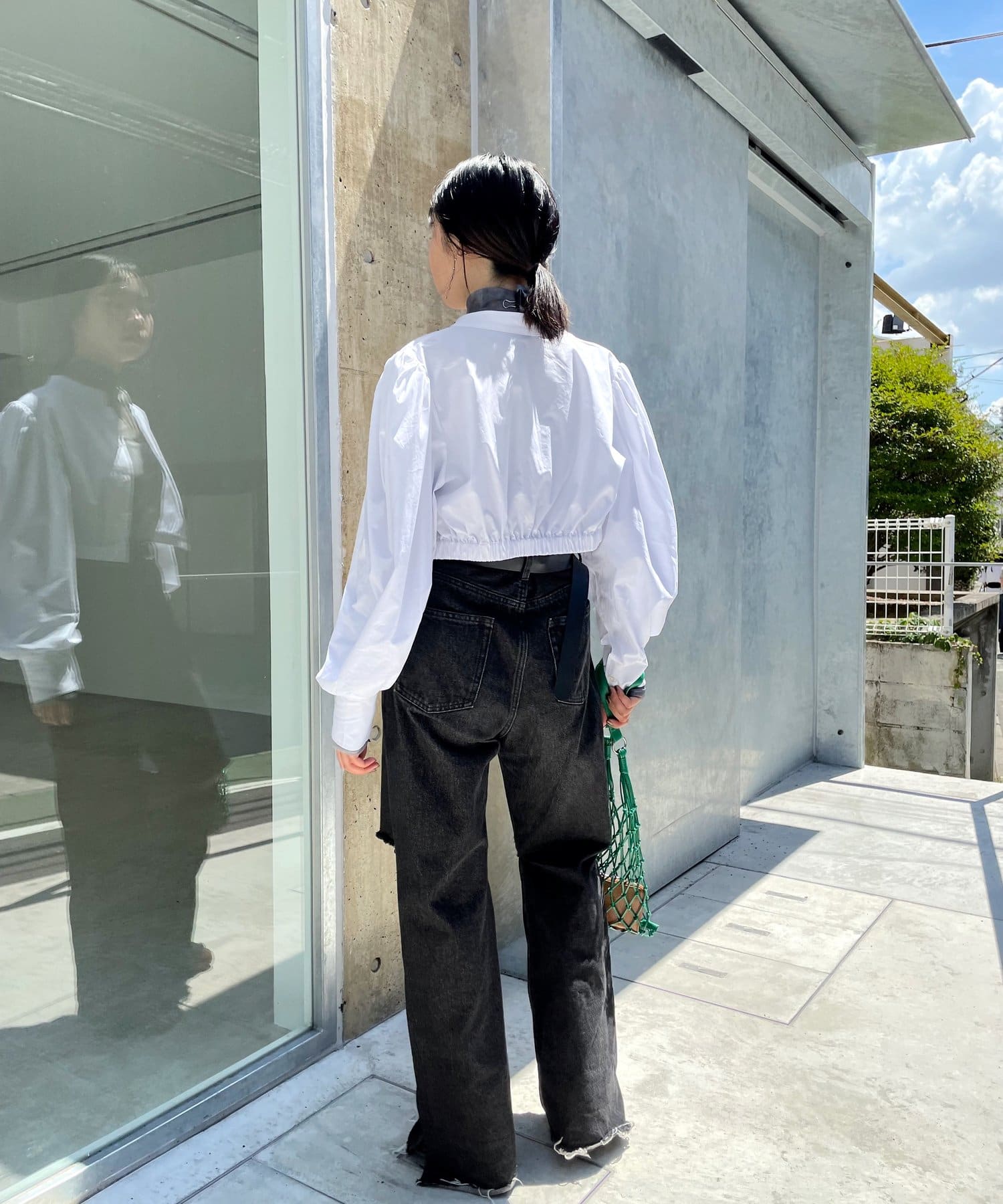 ・ショート丈による、脚長効果も狙えます。ボトムによってはヘルシーにへそ出しlookしたり、またはハイウエストボトムに合わせてもgood!